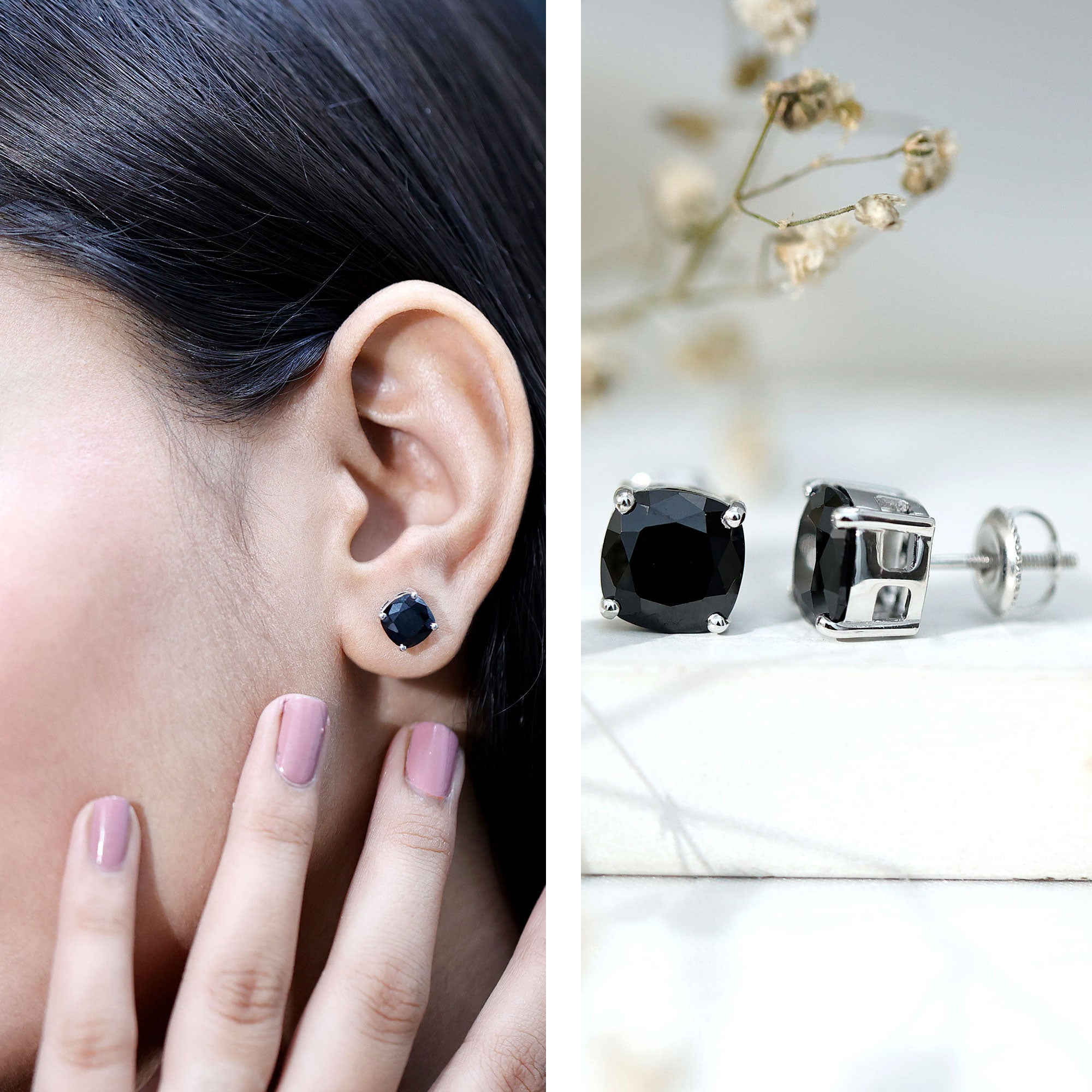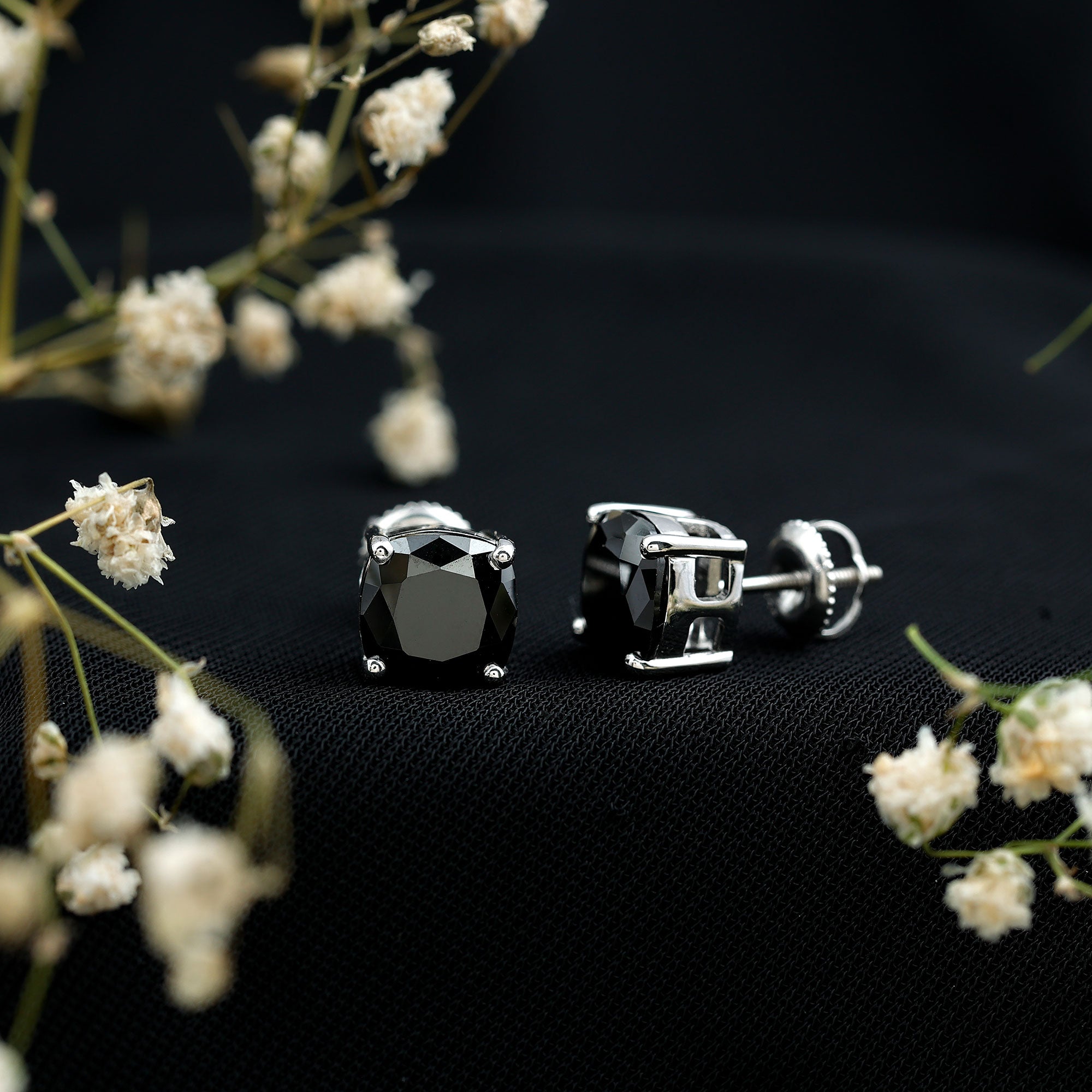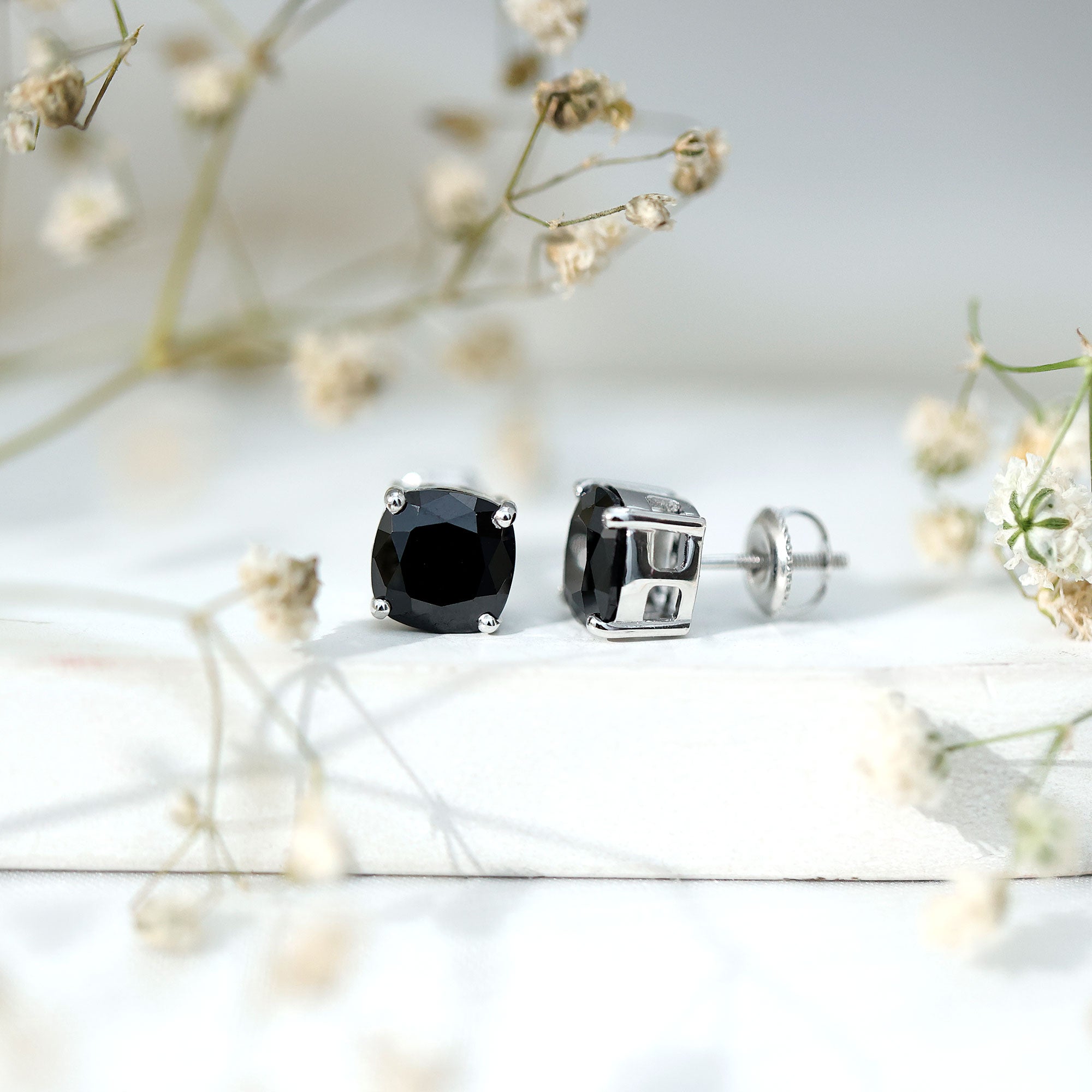 Indulge her with the enchanting allure of these Lab Created Black Diamond Earrings. Adorned with a captivating 8 MM Cushion Cut Created Black Diamond in secure 4-prong setting, these Solitaire Earrings are a true expression of love. These Black Diamond Stud Earrings are an exquisite symbol of affection. The elegant design showcases the allure and strength of black diamonds, making them a perfect option for women who value subtle luxury with a distinctive touch. Made with AAAA quality lab created black diamonds and secure screw back closures, the Black Stone Earrings are designed for comfort and durability. Their adaptable style makes them appropriate for any event, whether it is a formal gathering, a casual outing, or a special evening celebration. They come beautifully packaged in a stylish jewelry box, ready for gifting or safe storage. Seamlessly combining classic design with modern style, the Cushion Cut Earrings bring effortless elegance to your jewelry collection. Surprise your beloved with this perfect gift, sure to make her fall in love all over again.