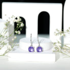 8MM Cushion Cut Lab Created Tanzanite Solitaire Drop Earrings