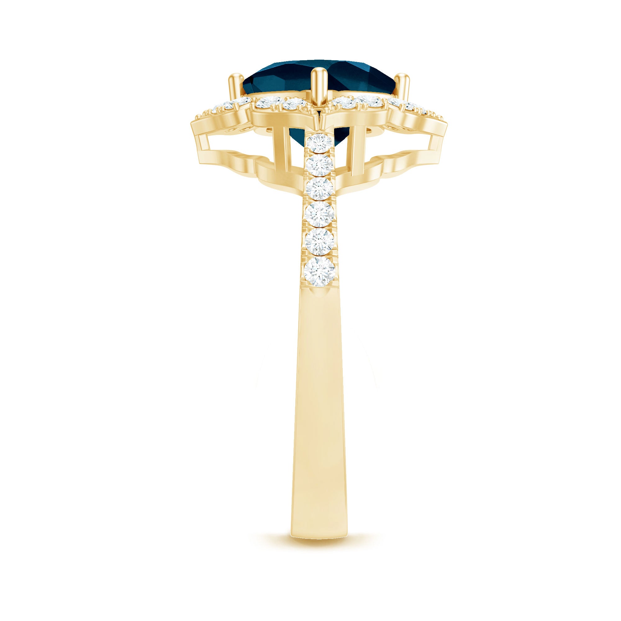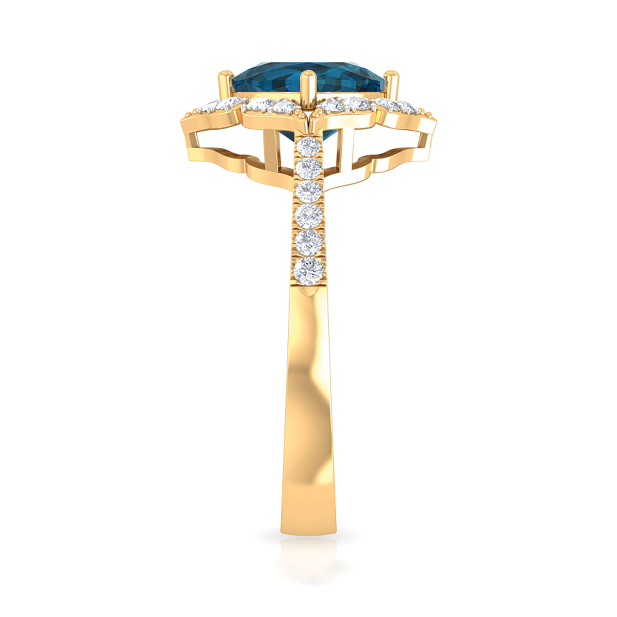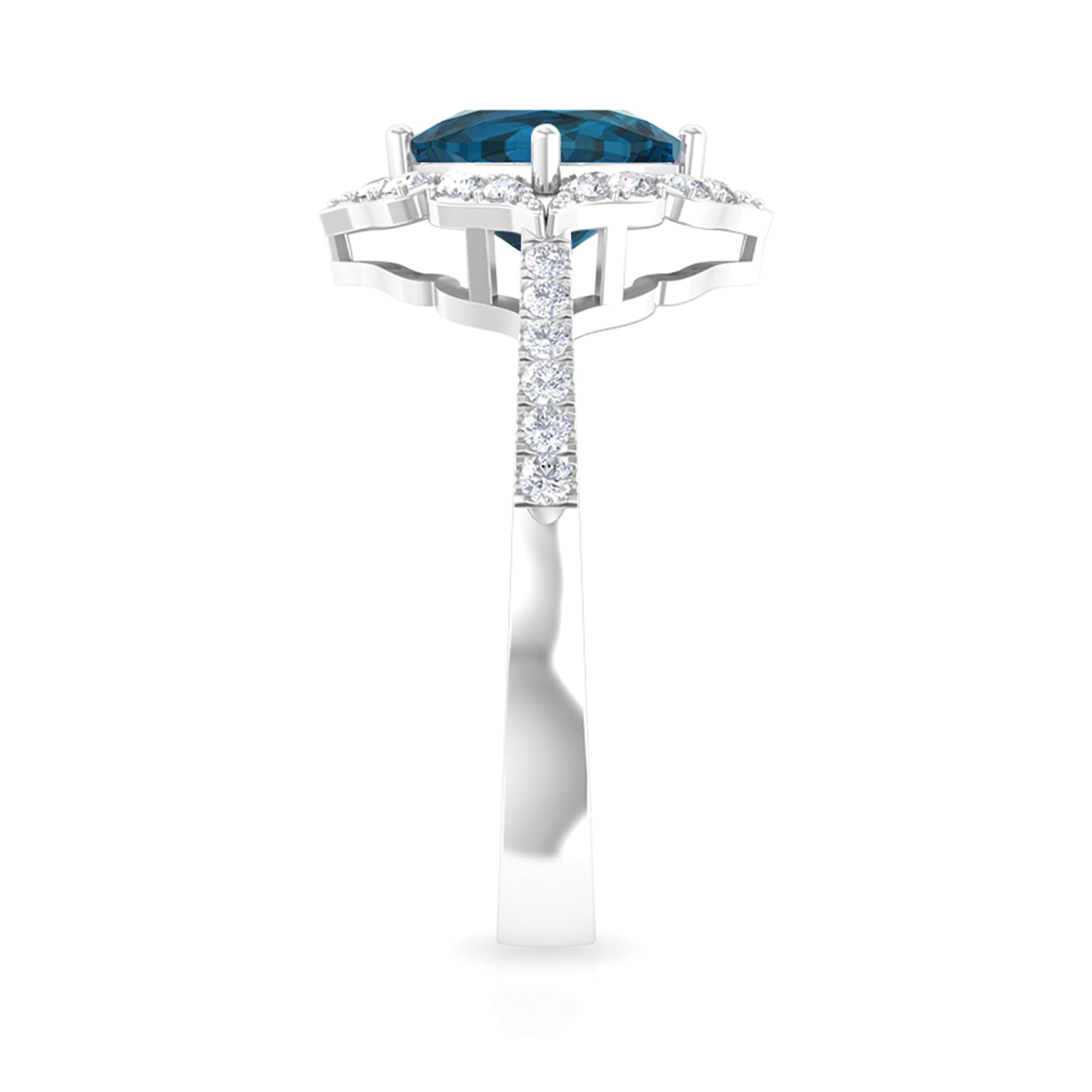 8mm Cushion Cut London Blue Topaz Nature Engagement Ring with Diamond Halo