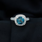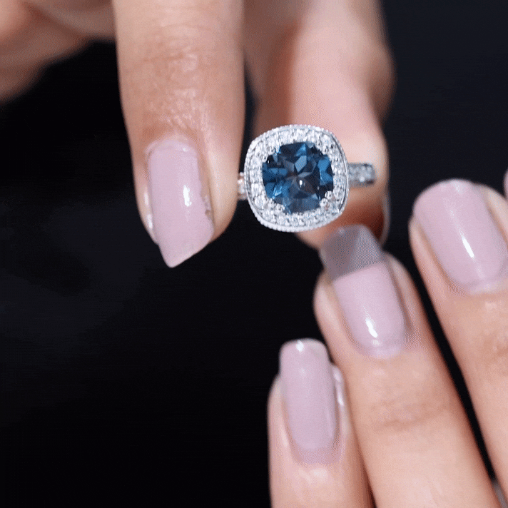 Capture unforgettable moments with this London Blue Topaz Ring, crafted to sparkle like the azure sky. The exquisite Art Deco Engagement Ring showcases an 8 mm Cushion Cut London Blue Topaz in a Double Prong Setting, encircled by a Diamond Halo. The side stones on the shank and the intricate beaded details contribute a distinctive charm, rendering it an ideal selection as a Cushion Cut Engagement Ring for women. This ring, which features the birthstone of December, emanates AAA Quality London Blue Topaz, amplifying its brilliance and versatility. Its enchanting design makes it a genuinely stunning piece of jewelry, perfect for conveying your heartfelt sentiments to your beloved. This Halo Engagement Ring is an ideal choice for those who appreciate the chic monochrome aesthetic, featuring a striking combination of blue and white, bold and vibrant. The combination of london blue topaz and diamonds imparts an elegant and unforgettable aura. This is a ring that does not merely follow trends; it sets them. Therefore, seize the opportunity to make your moment memorable with this Real Blue Topaz and Diamond Ring, which is as distinctive and powerful as the love you are commemorating.