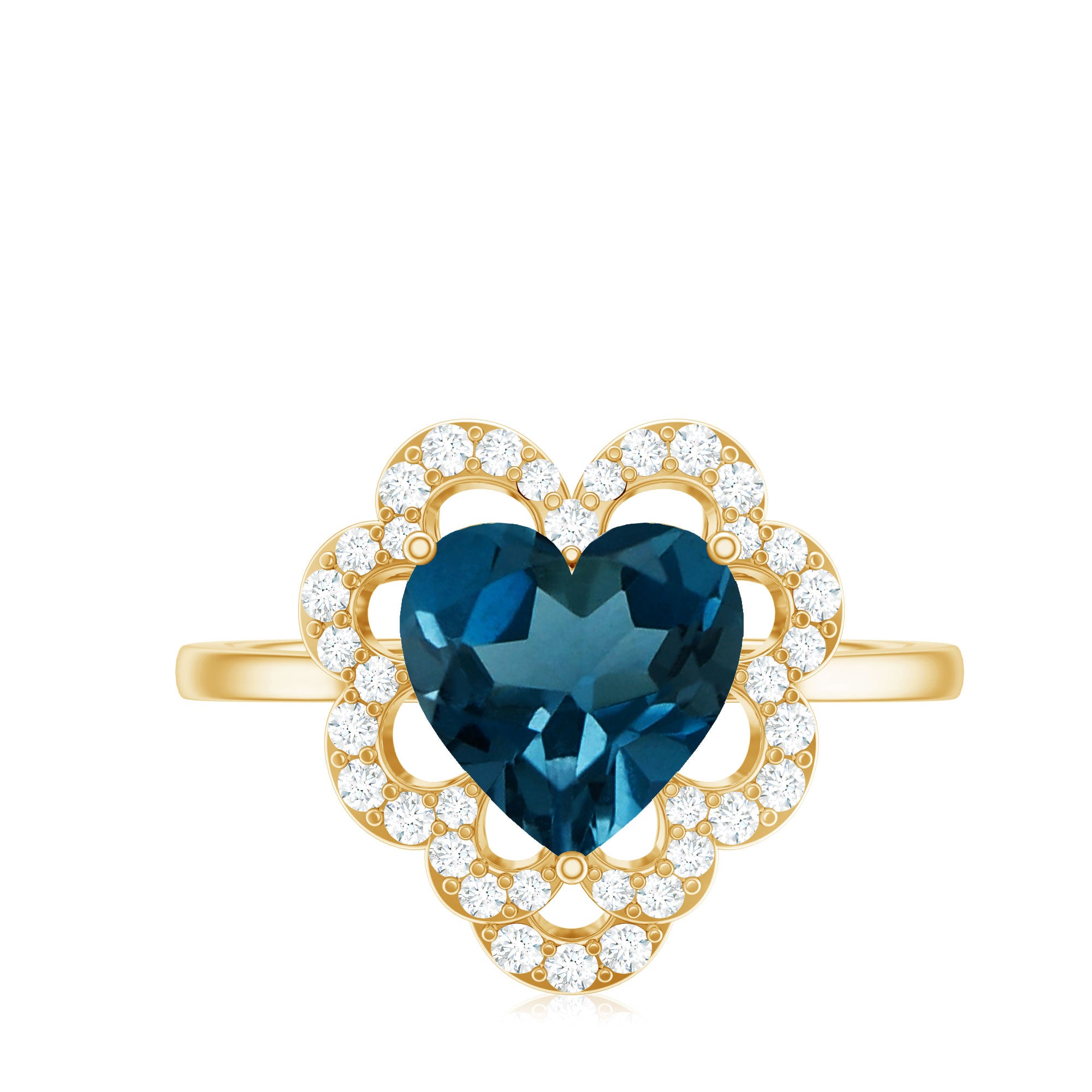 8mm Heart Shape London Blue Topaz Designer Engagement Ring with Diamond Halo