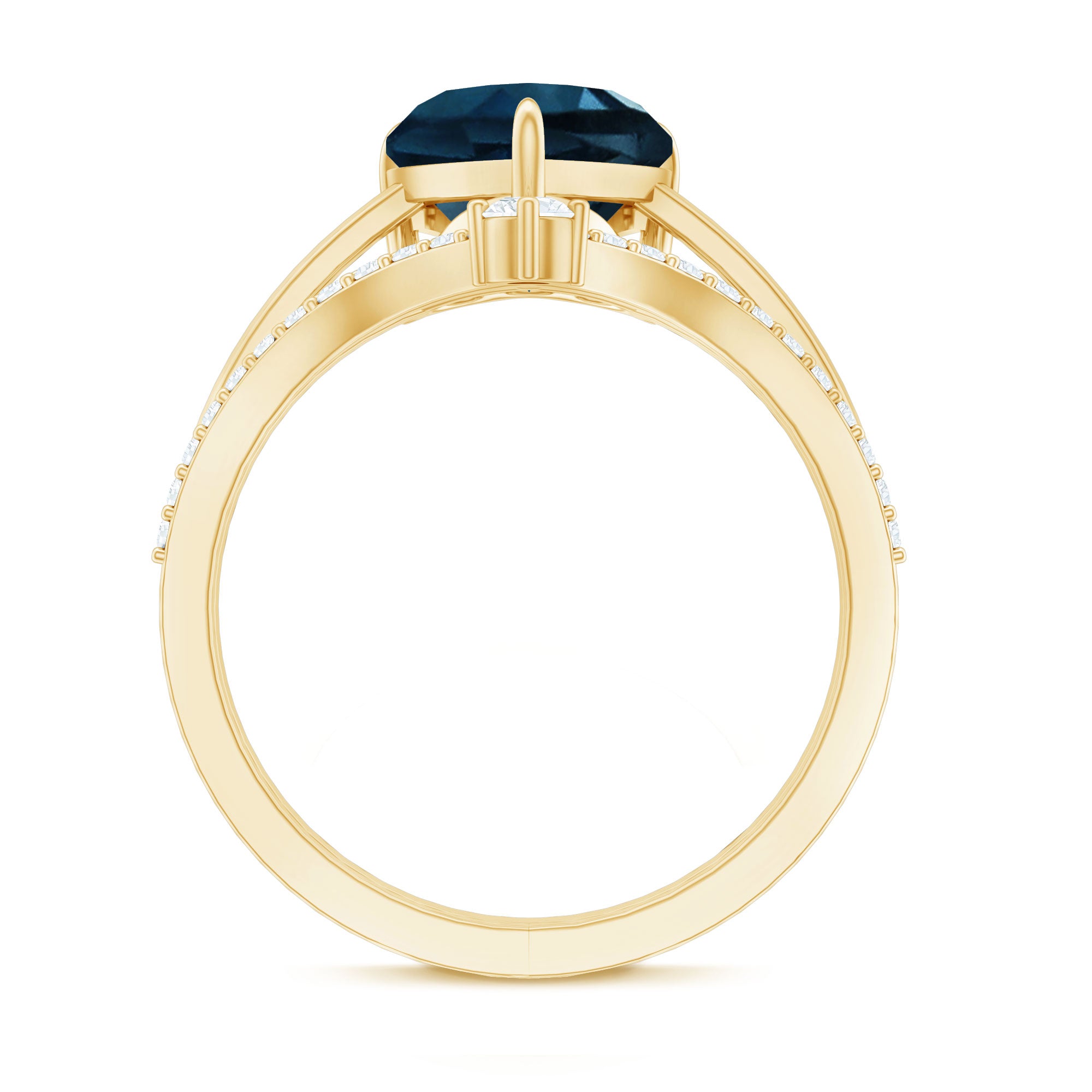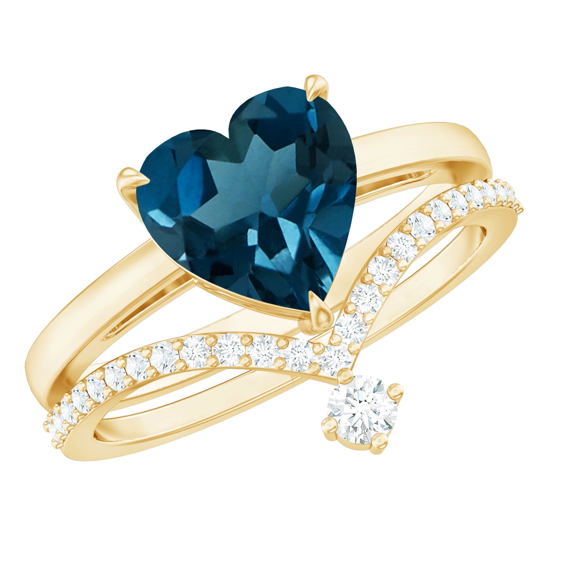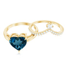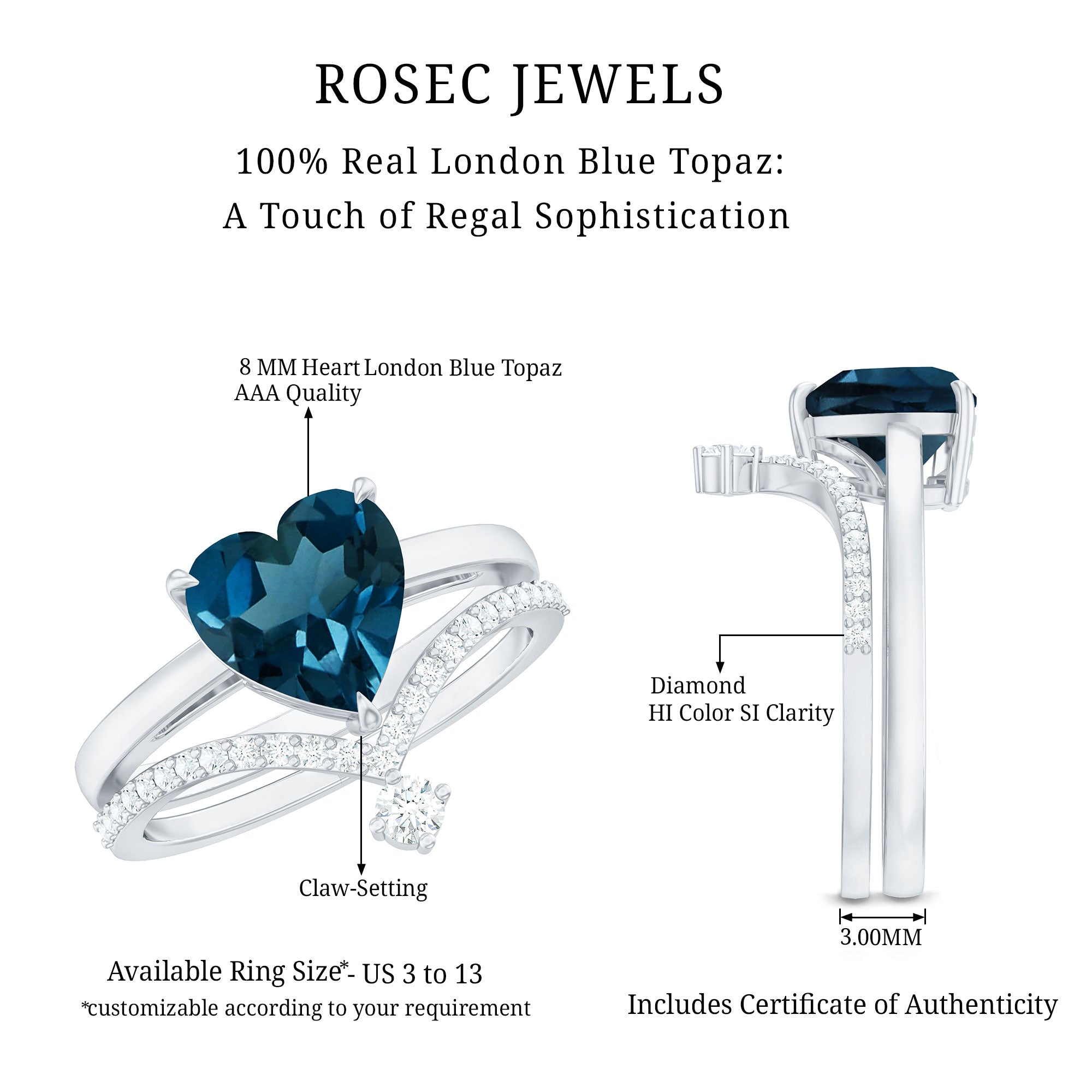 8mm Heart Shaped London Blue Topaz Solitaire Ring Set with Diamond Curved Band