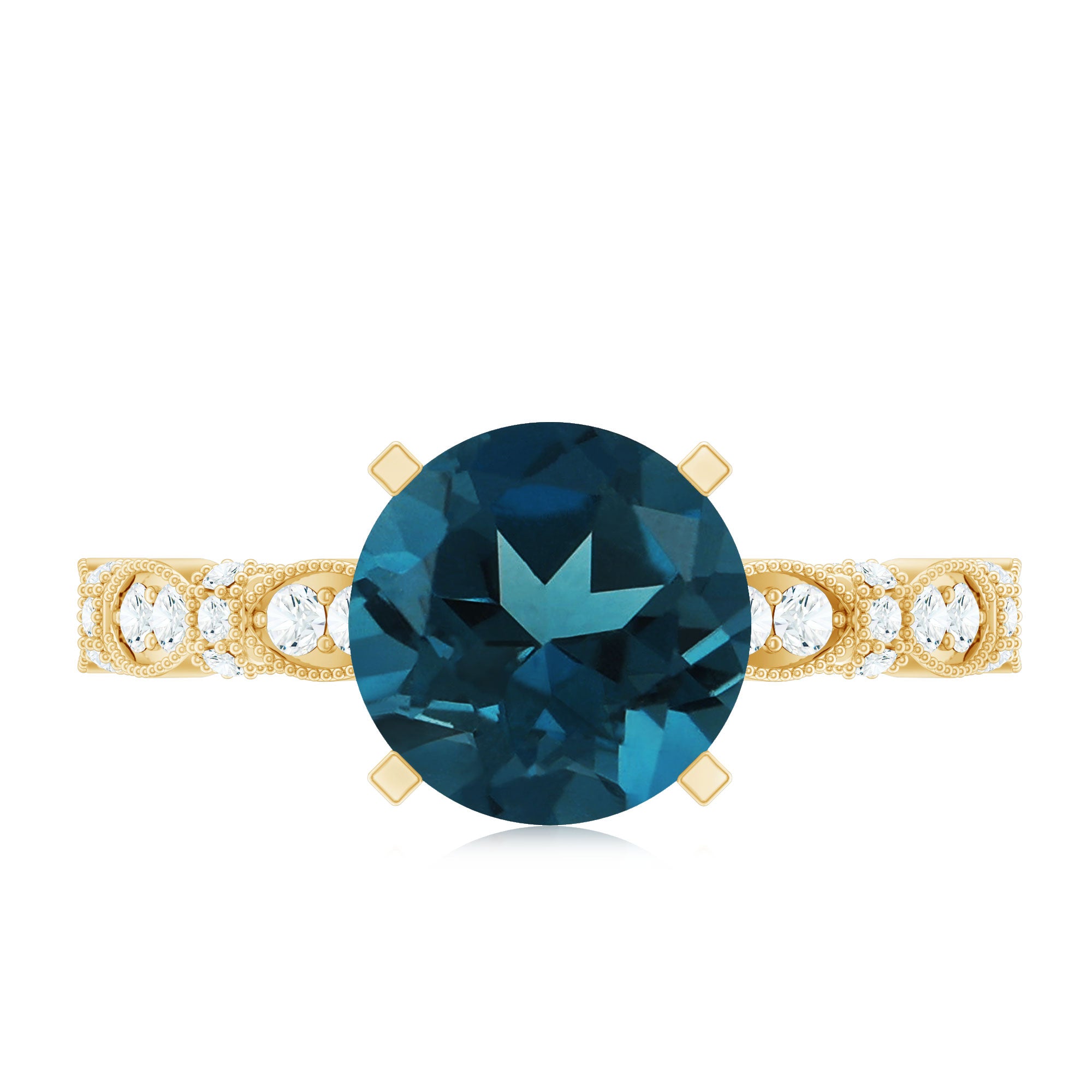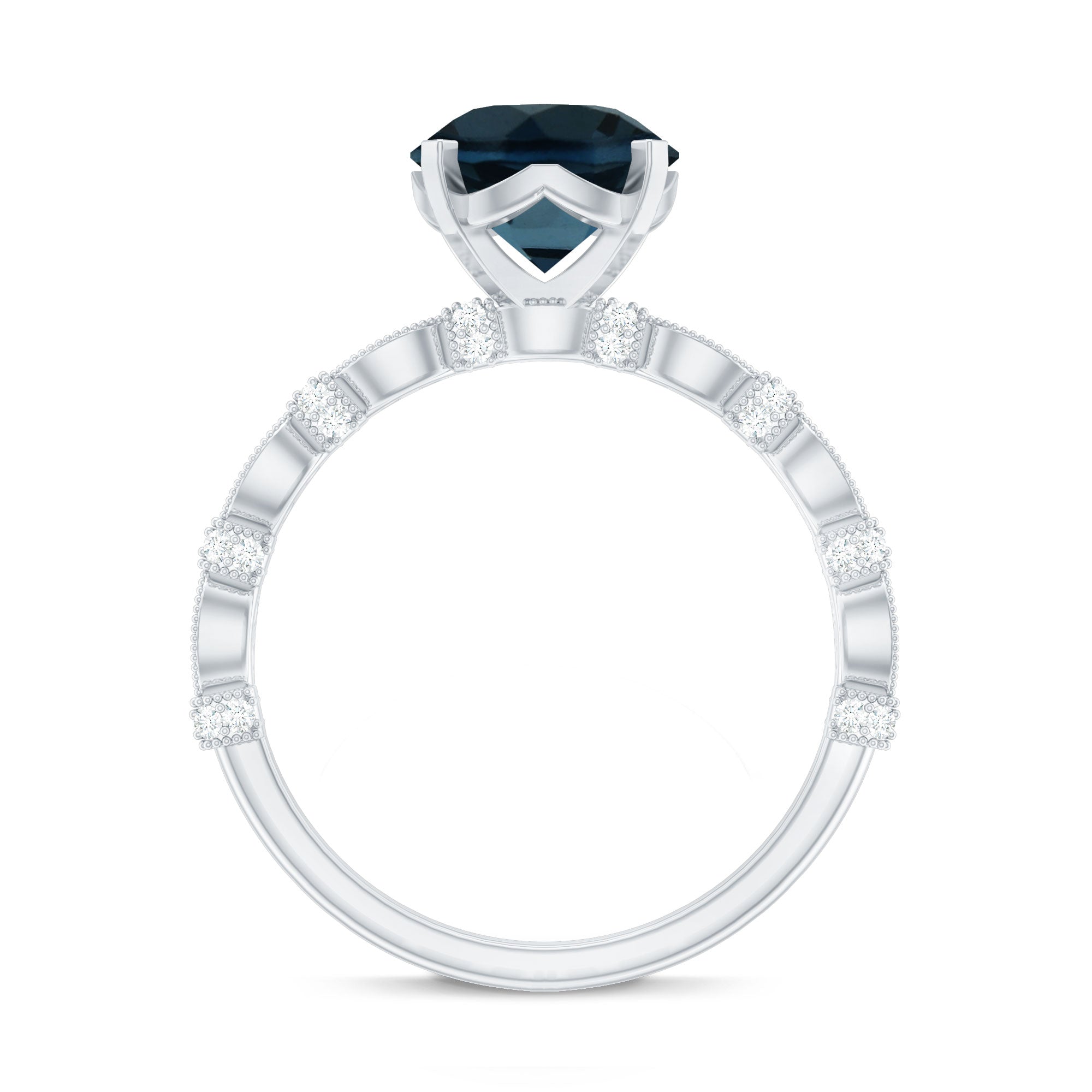 8MM London Blue Topaz Solitaire Engagement Ring with Diamonds