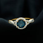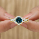 8mm Round London Blue Topaz Crossover Engagement Ring with Diamond Halo