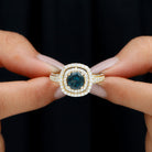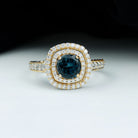 8mm Round London Blue Topaz Double Halo Engagement Ring with Moissanite