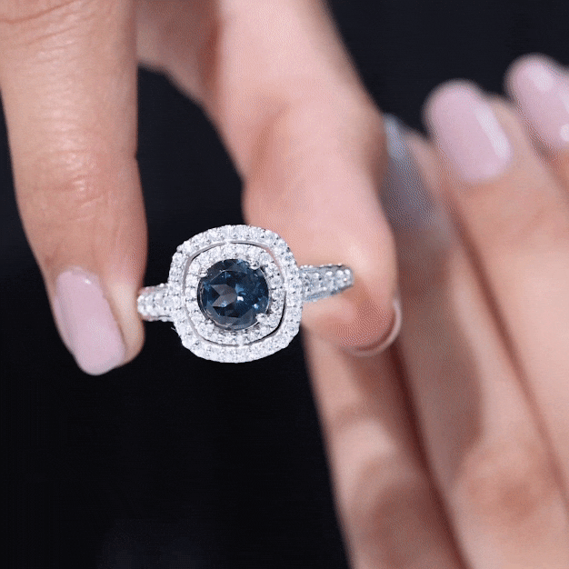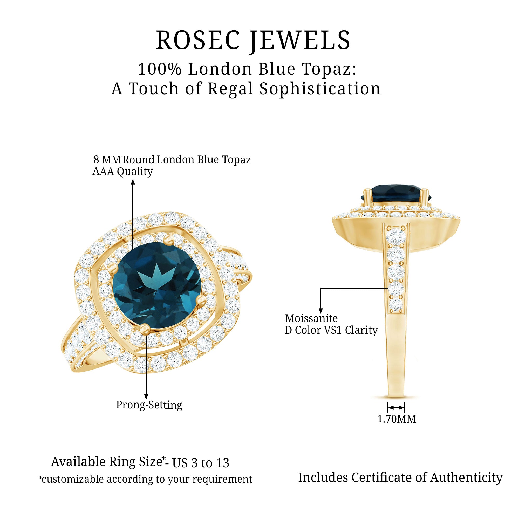 8mm Round London Blue Topaz Double Halo Engagement Ring with Moissanite