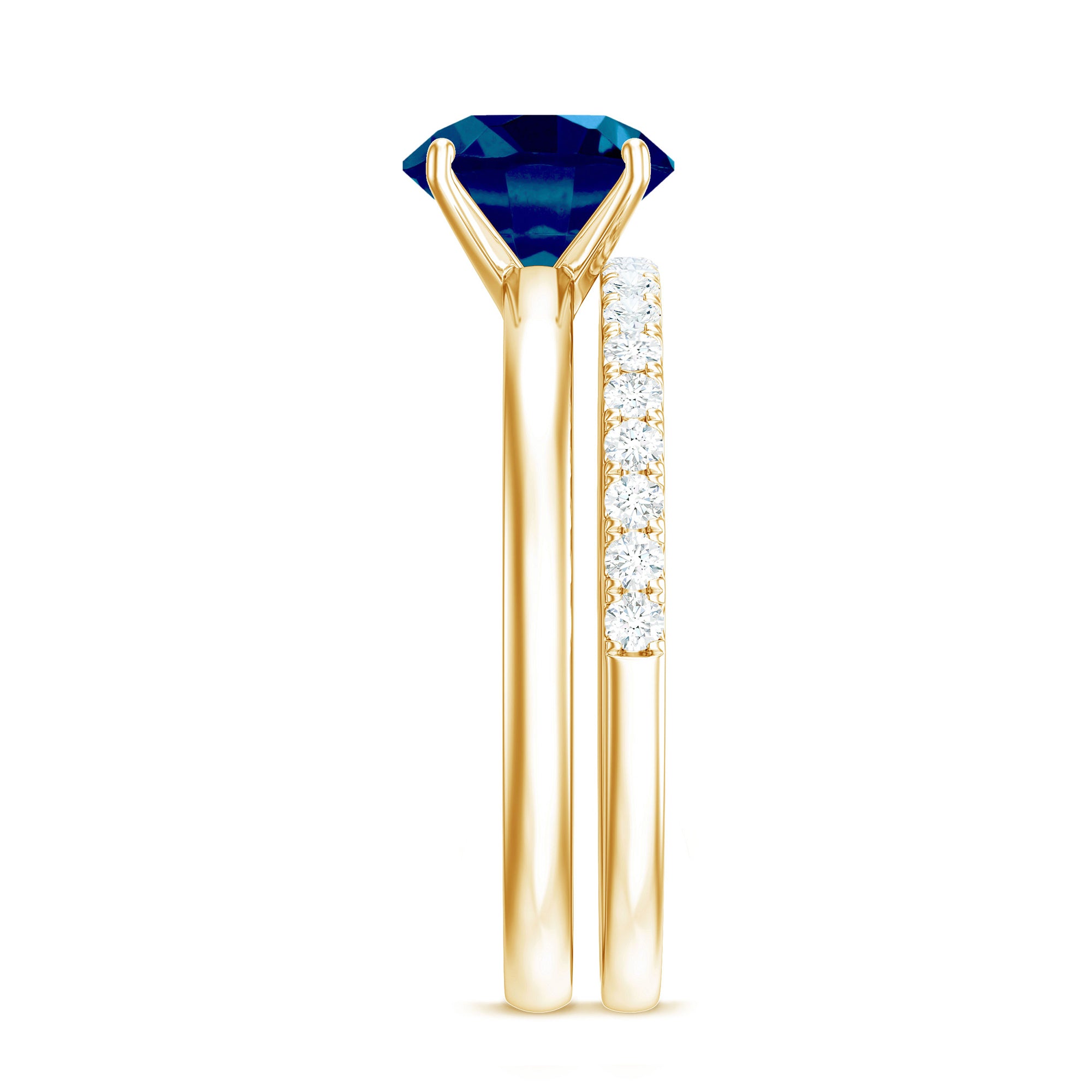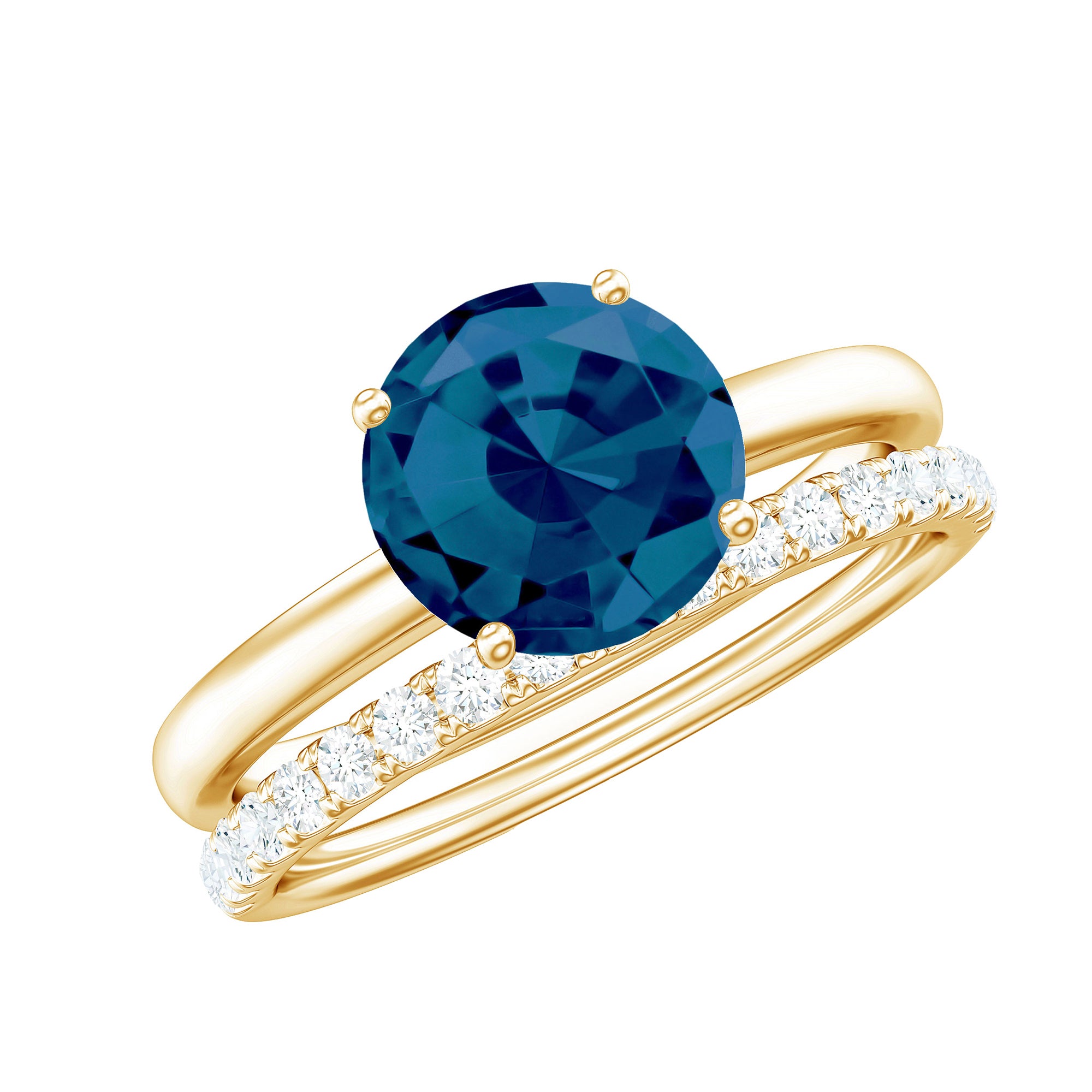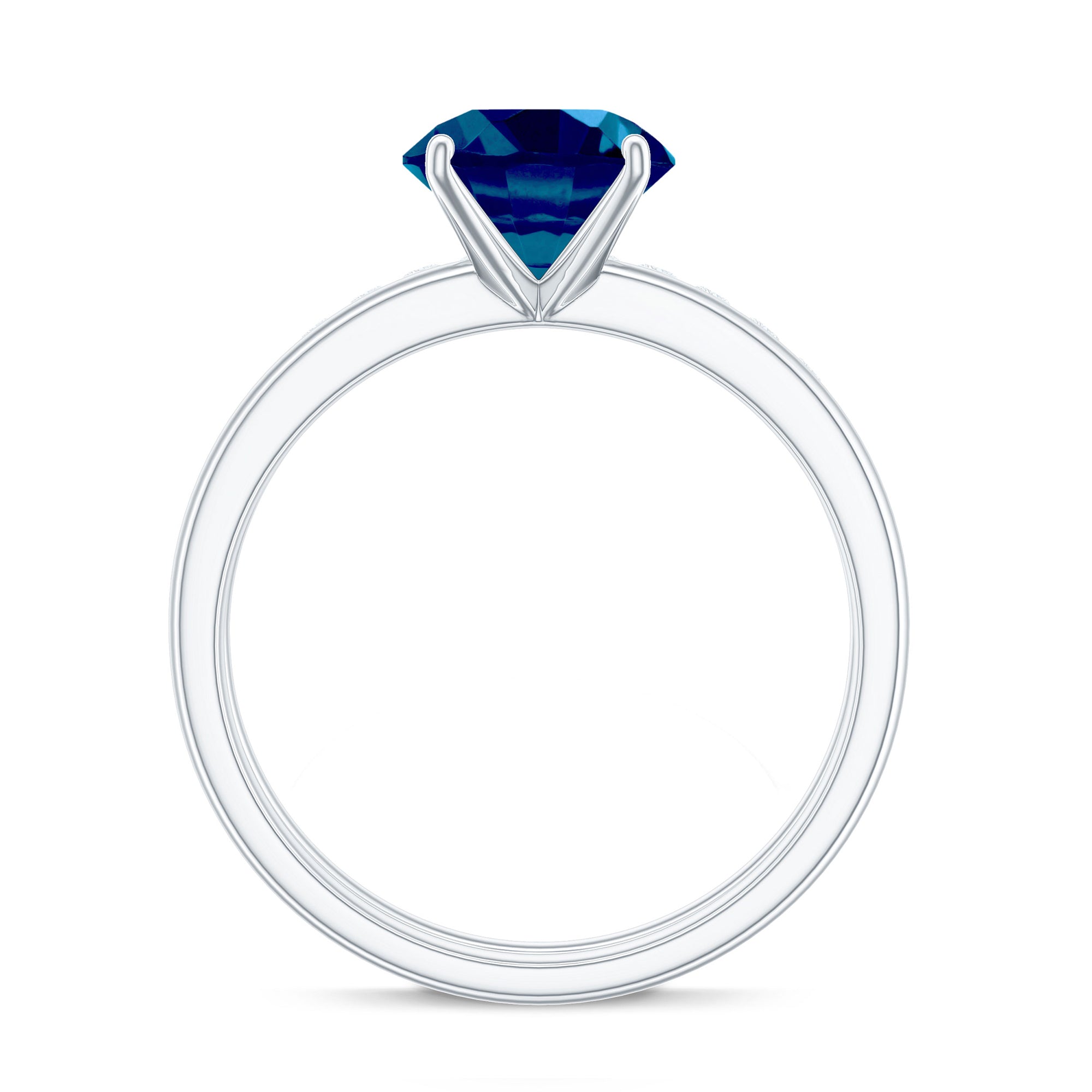 8mm Round London Blue Topaz Solitaire Engagement Ring with Diamond Band