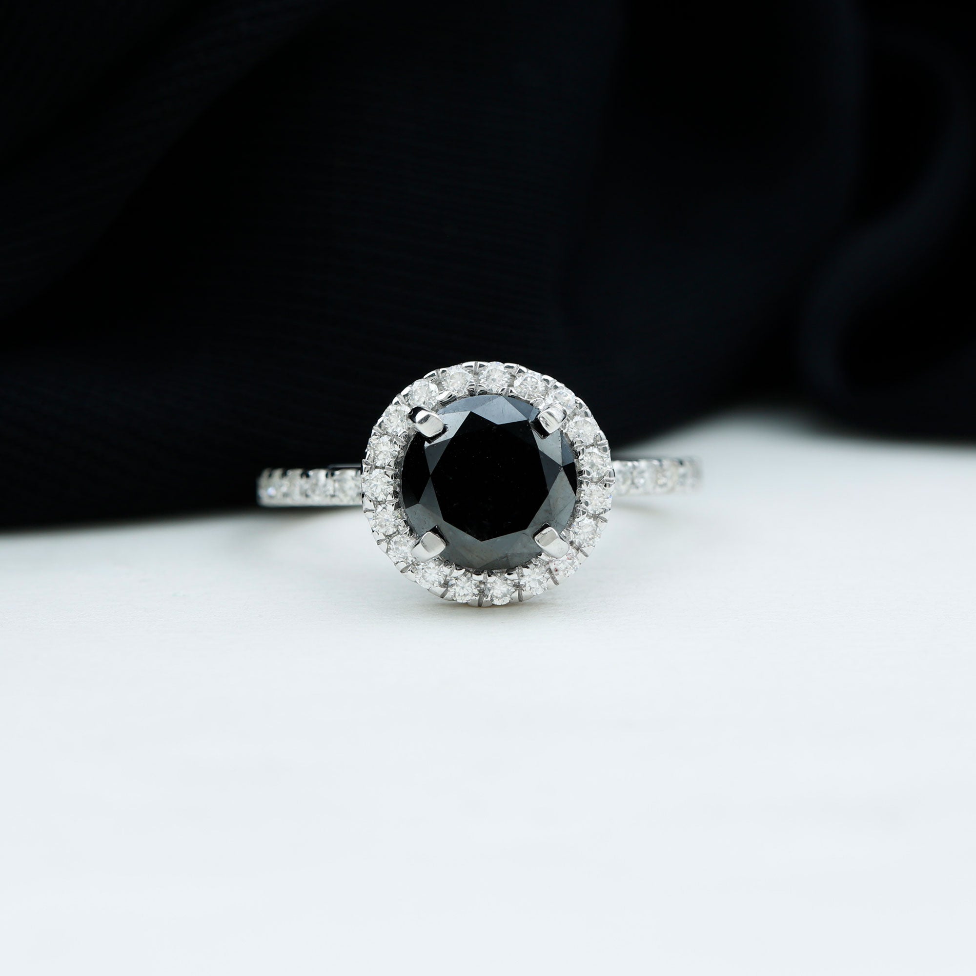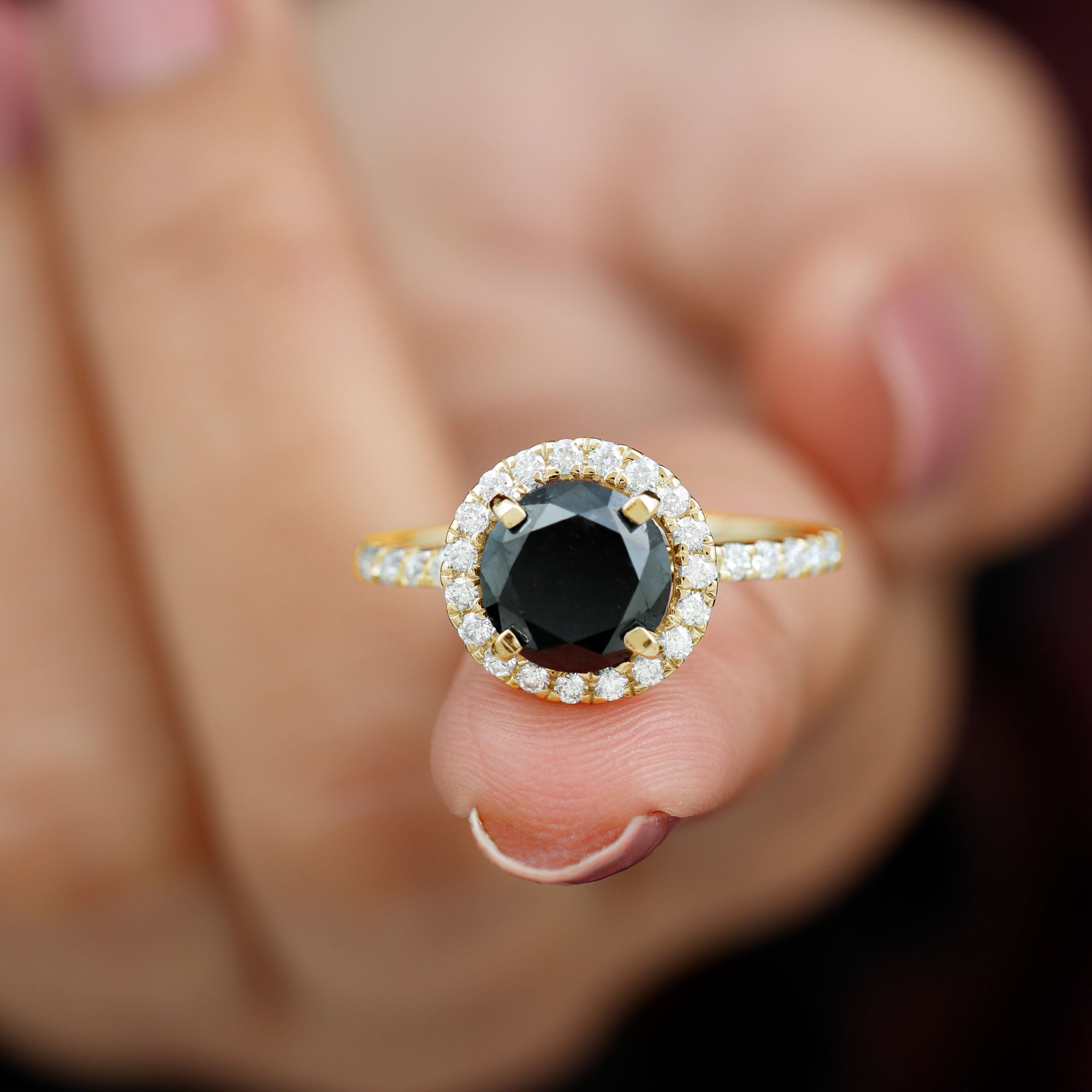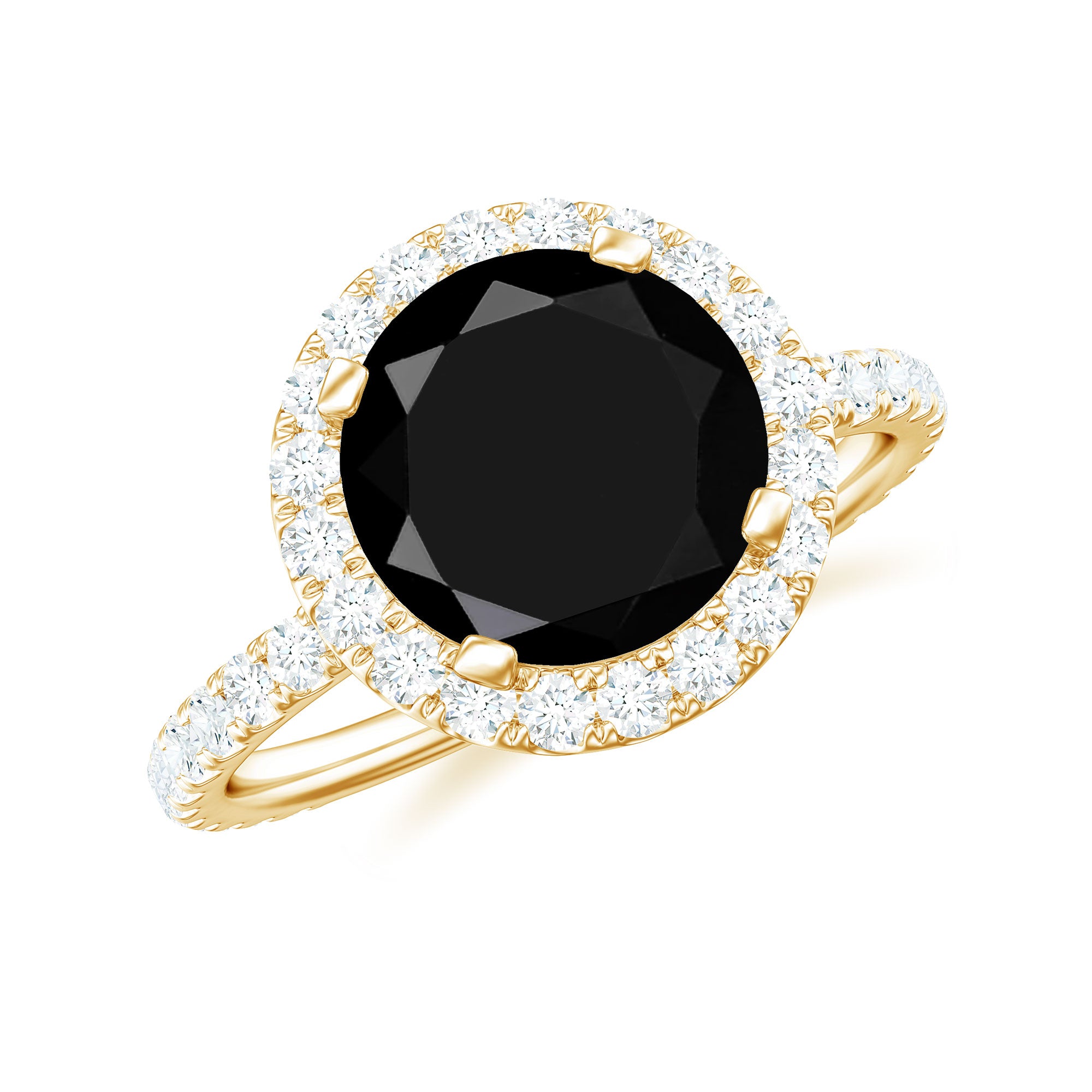 Elevate your jewelry collection with this stunning Black Onyx Engagement Ring, featuring 8mm Round shape Black Onyx set at the center in a prong setting surrounded with round shape diamond set as halo style and more diamond set in side shank, giving this ring a unique look with more shine. This Halo Engagement Ring is meticulously designed to make you feel special and comfortable whole day long. The sleek, polished surface guarantees a comfortable fit, making it ideal for daily use or significant events, seamlessly shifting from informal to formal environments. This Onyx Halo Ring is ideal for expressing your feelings for that unique individual or as a thoughtful - Thinking of you present. It can complement any attire and is a stunning enhancement to any jewelry assortment. Present this exquisite item to yourself or to a cherished person. Present this Black Onyx Ring to your beloved and capture her heart. The Engagement Ring with Side Stones boasts a total weight of 3 Carats with AAA quality. All our gemstones are certified and subjected to rigorous quality inspections.