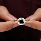 8mm Round Shape Black Onyx Engagement Ring with Diamond Halo