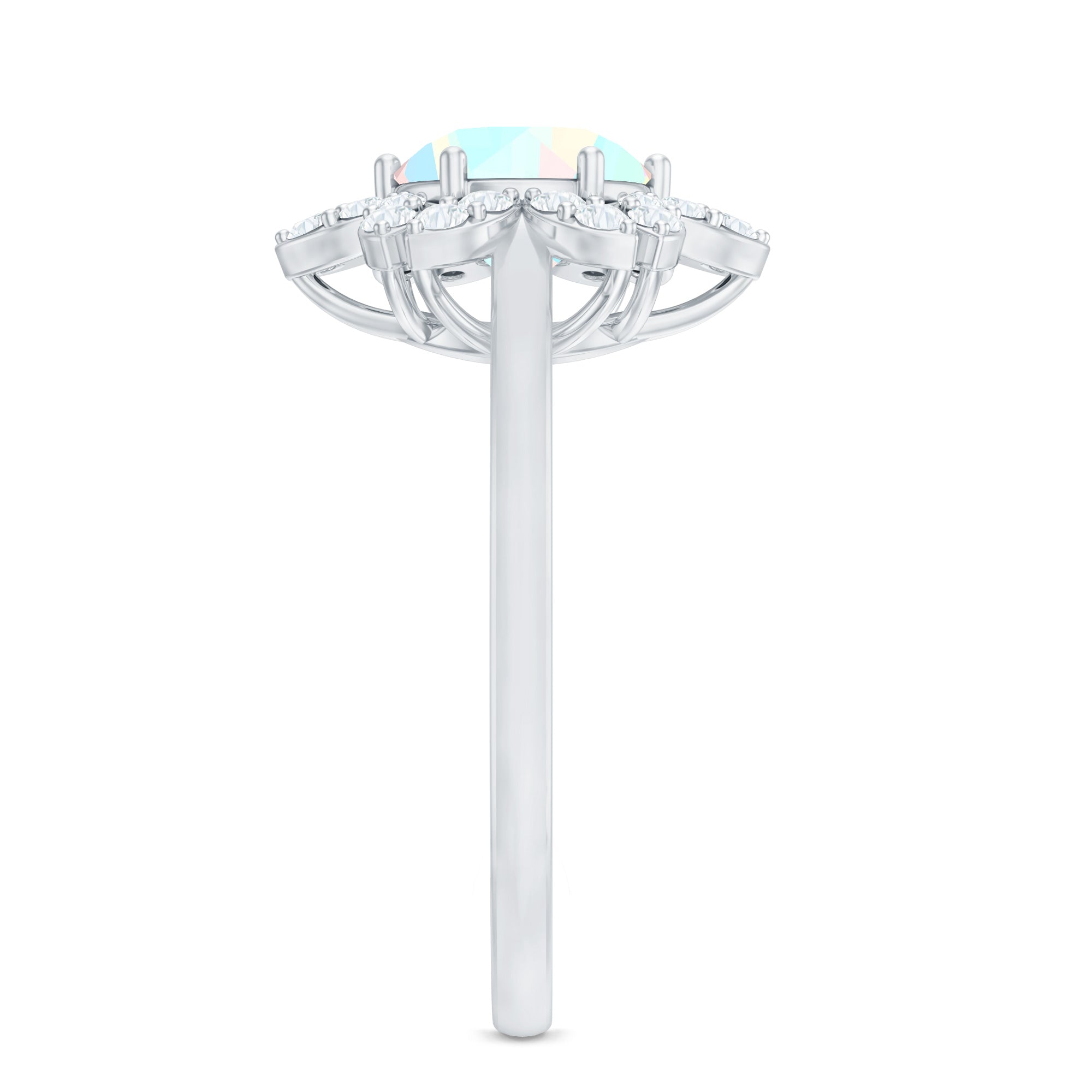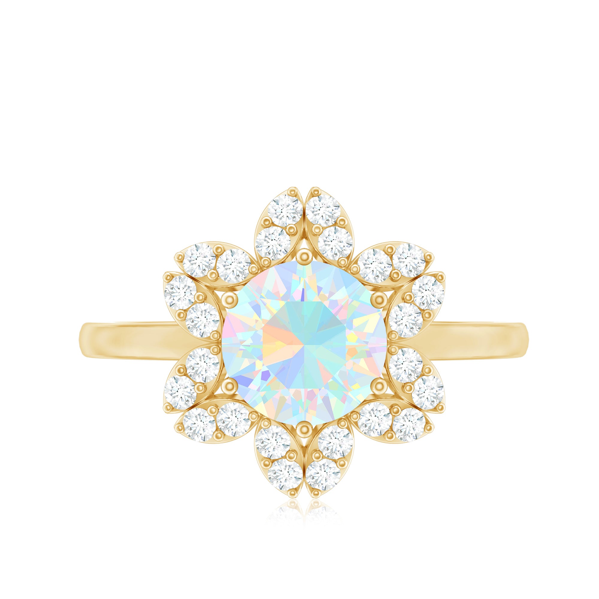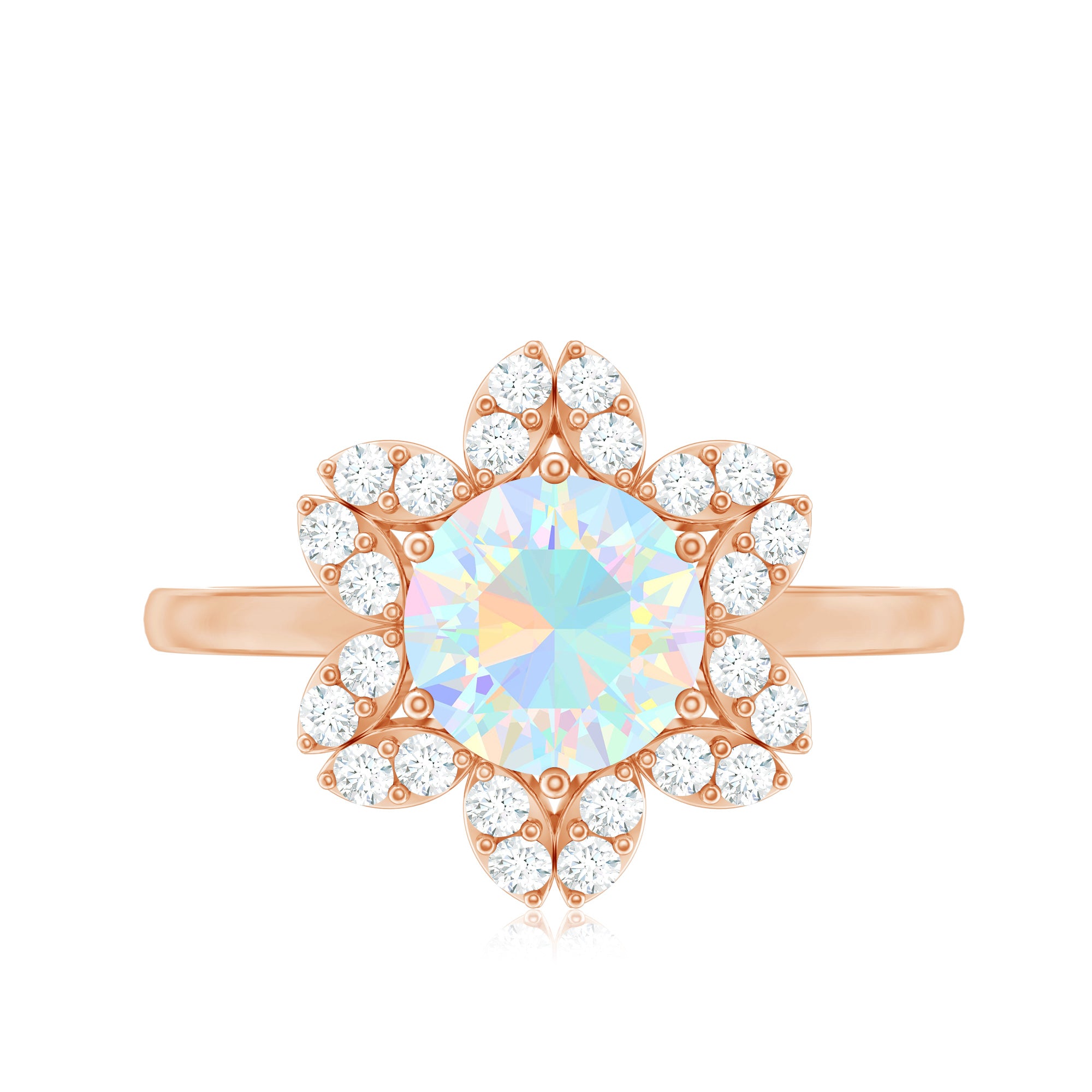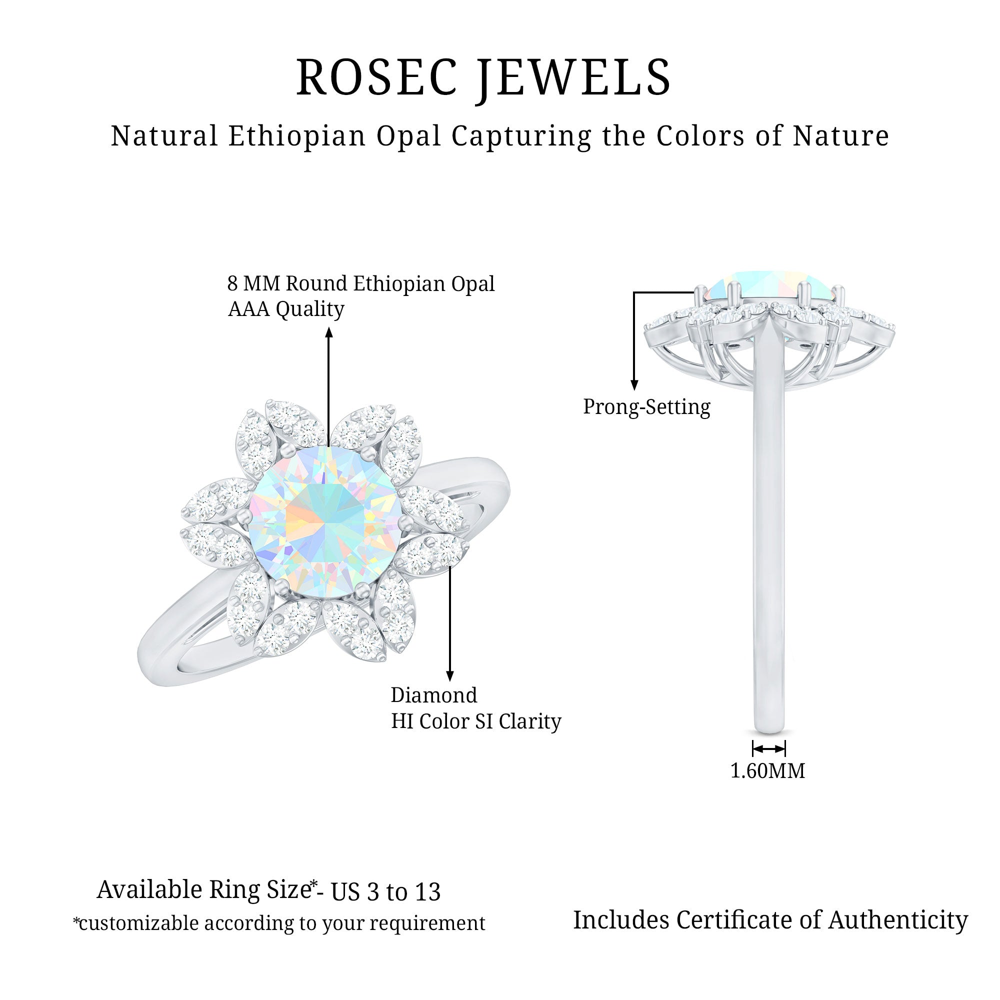 8mm Round Shape Ethiopian Opal Floral Engagement Ring with Diamond