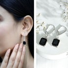 Discover timeless beauty with these stunning Lab Grown Black Diamond Earrings that truly catch the eye and make you the center of attention. Crafted from white gold plated silver, these Hoop Drop Earrings showcase an 8X10 MM emerald cut lab created black diamond alongside round cut Moissanites in prong setting, elegantly dangling from a secure leverback closure, sparkling with every movement. Drawing inspiration from the black and white era, they radiate luxury and sophistication. Simple yet stylish, these Black Diamond Solitaire Earrings feature a meticulous design that attracts attention while maintaining an elegant feel. A perfect representation of classic style, these Black Diamond Hoop Earrings gleam with beauty and are a must-have in your jewelry collection. Renowned for their elegance and allure, they provide a modern classic look ideal for daily wear. So, elevate any outfit with these gorgeous Monochrome Earrings that add a touch of luxury and contrast to your look.