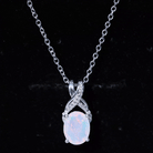 8X10 MM Oval Rainbow Opal Solitaire Necklace with Moissanite