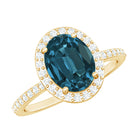 8X10mm Oval Cut London Blue Topaz Oblong Engagement Ring with Diamond Halo