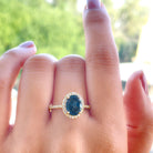 This London Blue topaz ring is both stylish and distinctive, embodying a design that allows you to captivate attention with its enchanting appearance. It showcases an 8X10 mm oval-shaped London Blue Topaz set in a prong setting, surrounded by a halo of round shape diamonds. The shank is adorned with round diamonds as side stones, symbolizing love and everlasting romance. With its remarkable and striking design, this Oblong Engagement Ring is guaranteed to highlight its exquisite beauty. Make her feel cherished with this captivating cool hue of Blue Topaz and Diamond Ring. Exude elegance with AAA quality London Blue Topaz and Hi-Si quality diamonds, making it an exceptionally unique piece of jewelry for your special events. London Blue Topaz is a unique gemstone, recognized as the birthstone for the month of December. It is esteemed not only for its striking beauty but also for its purported calming and communicative attributes. Numerous individuals wear London Blue Topaz to enhance clarity in communication and to promote emotional balance and inner peace. This London Blue Topaz Engagement Ring is ideal for various occasions, including engagements, weddings, birthdays. Whether you wish to commemorate a significant occasion or express your love and dedication, this Halo Engagement Ring is certain to leave a lasting impression. It merges timeless sophistication with meaningful symbolism, making it a cherished item for anyone who adorns it.