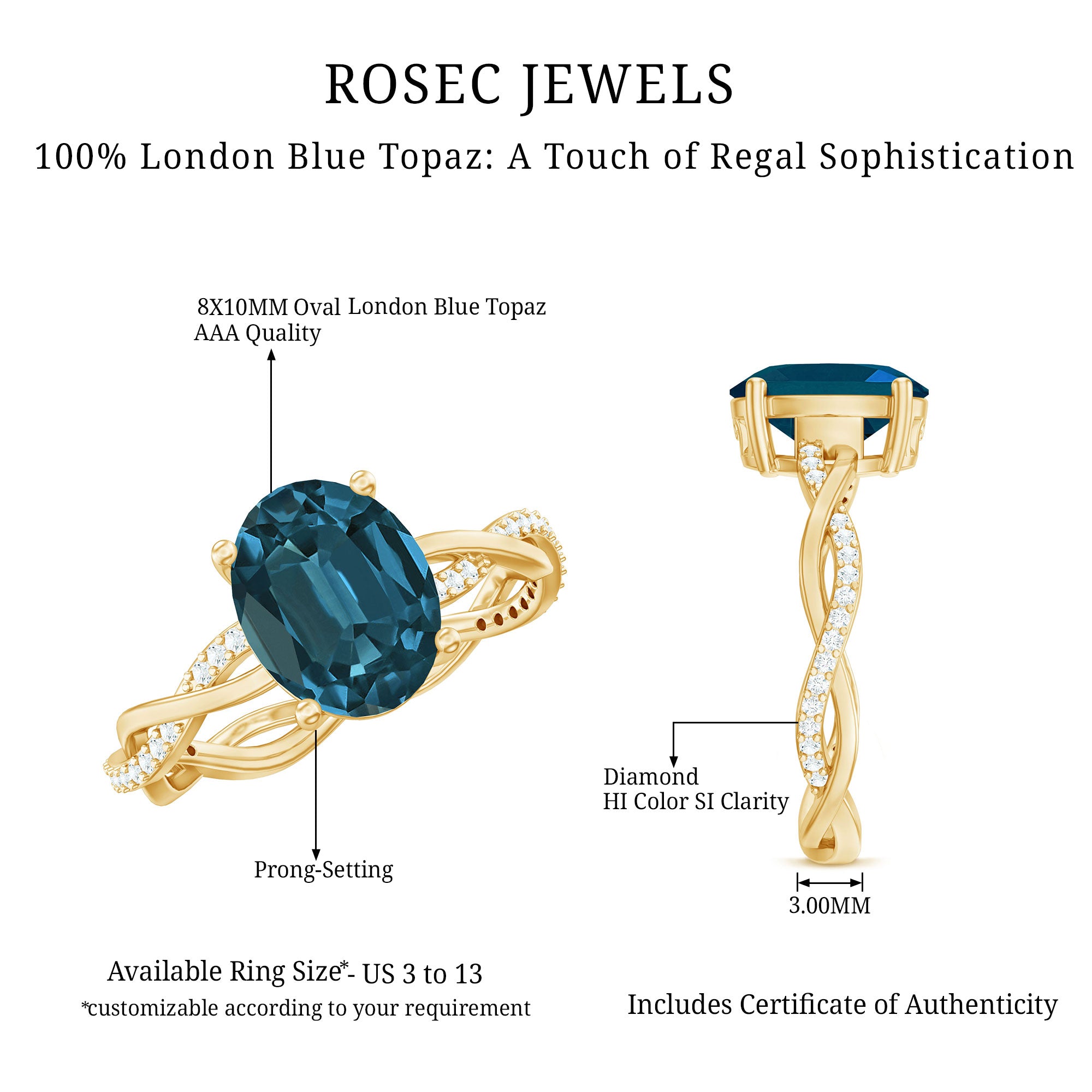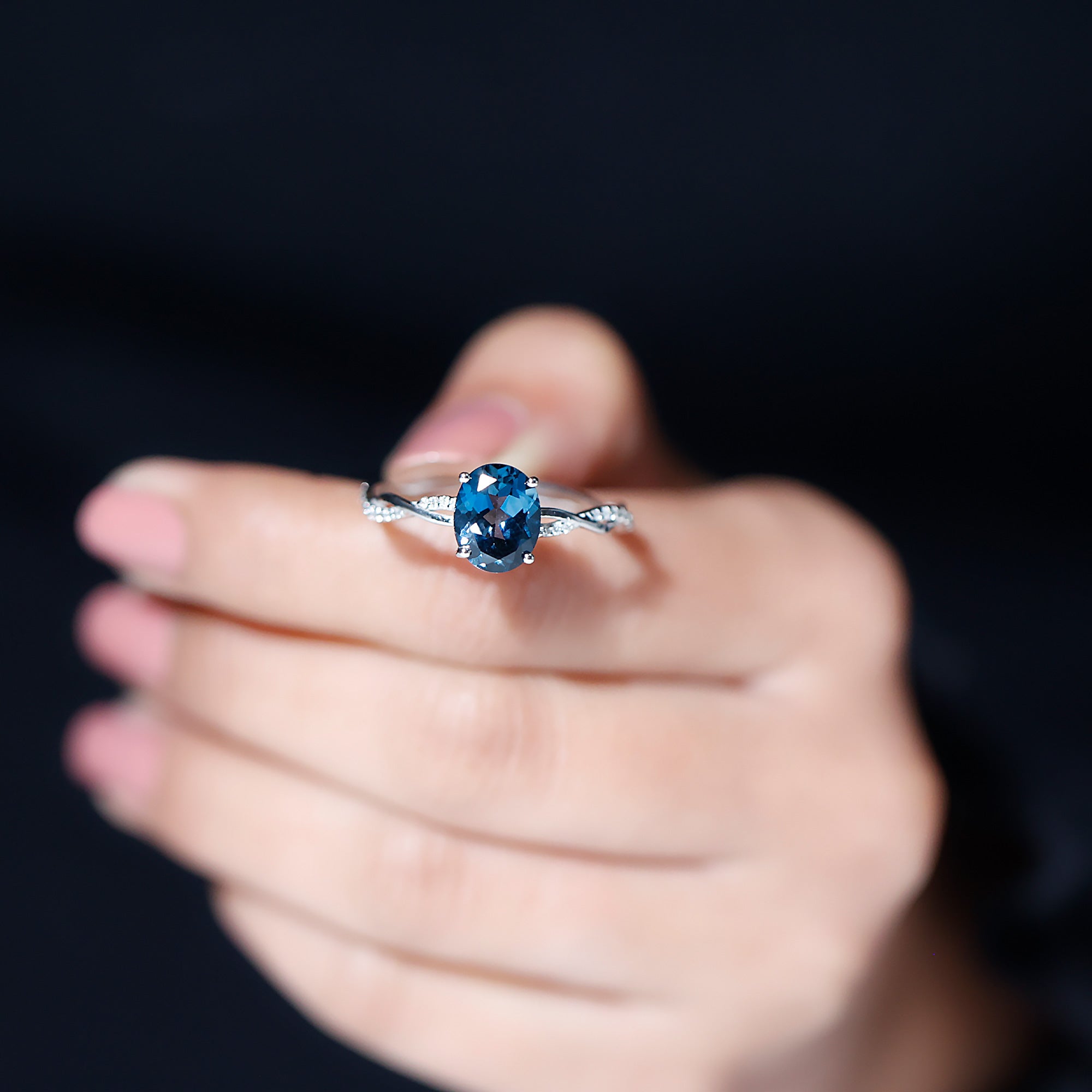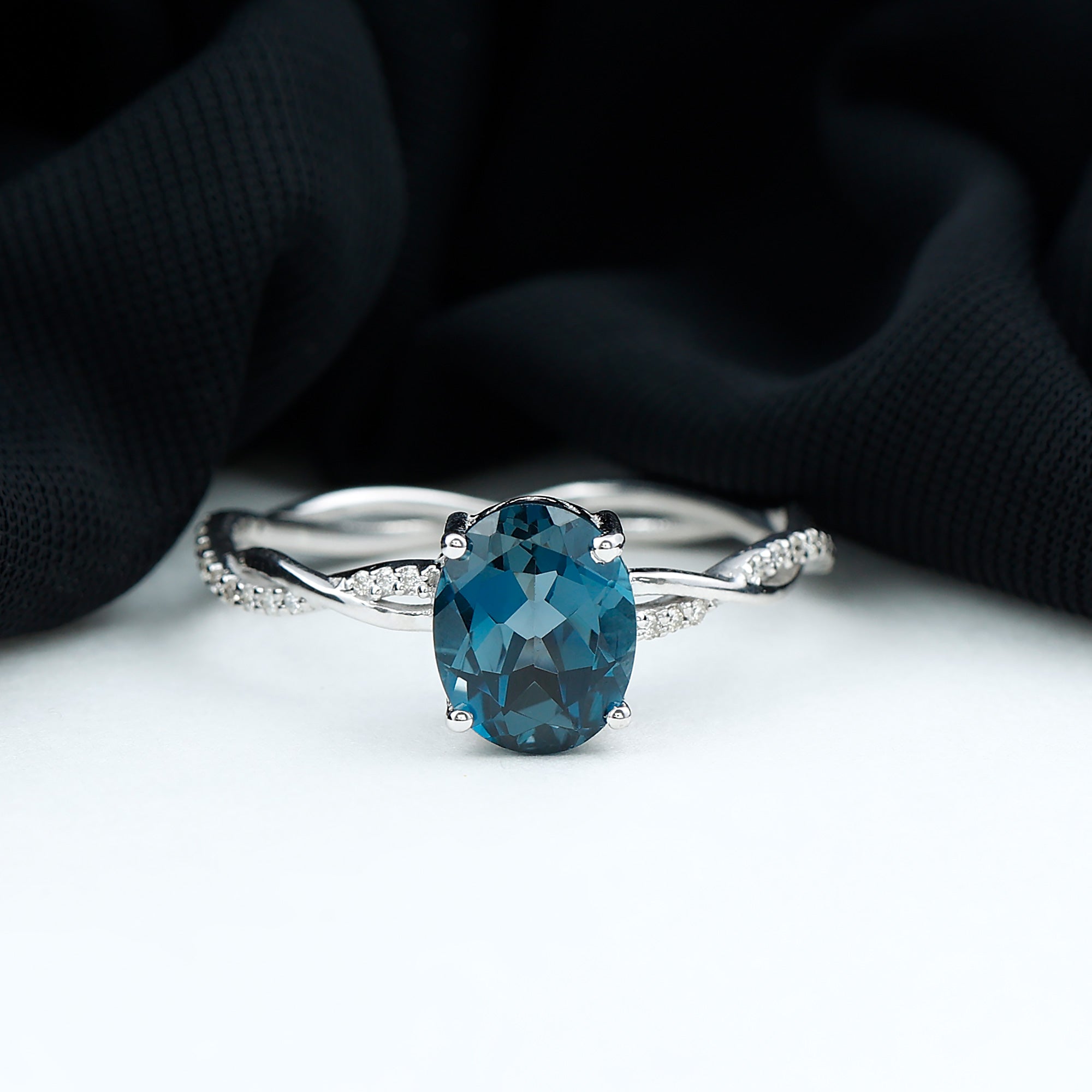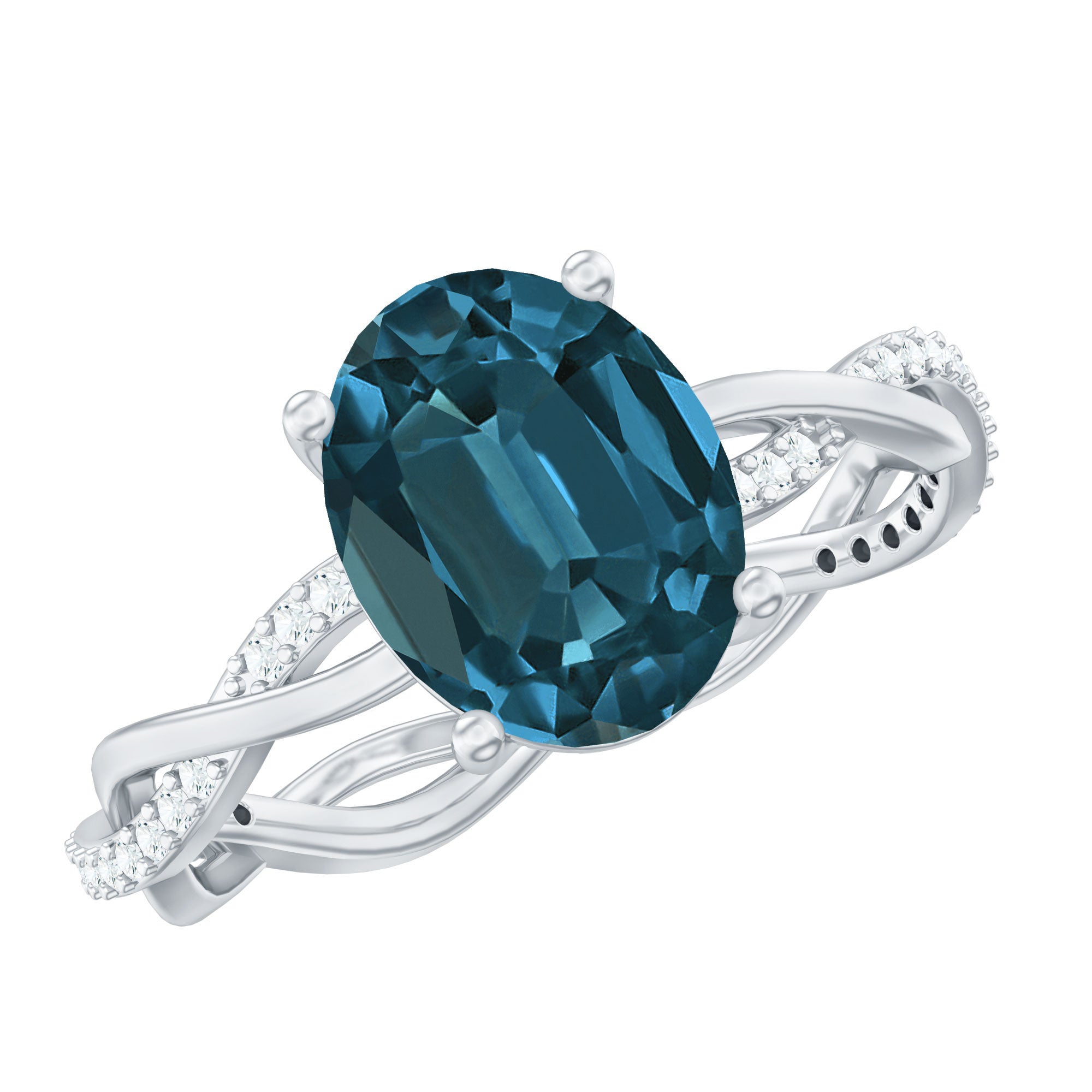 8x10mm Oval Cut London Blue Topaz Oblong Engagement Ring with Diamond
