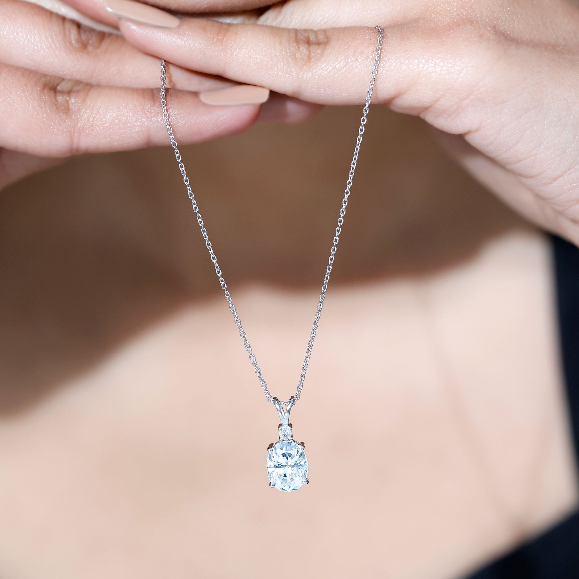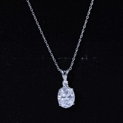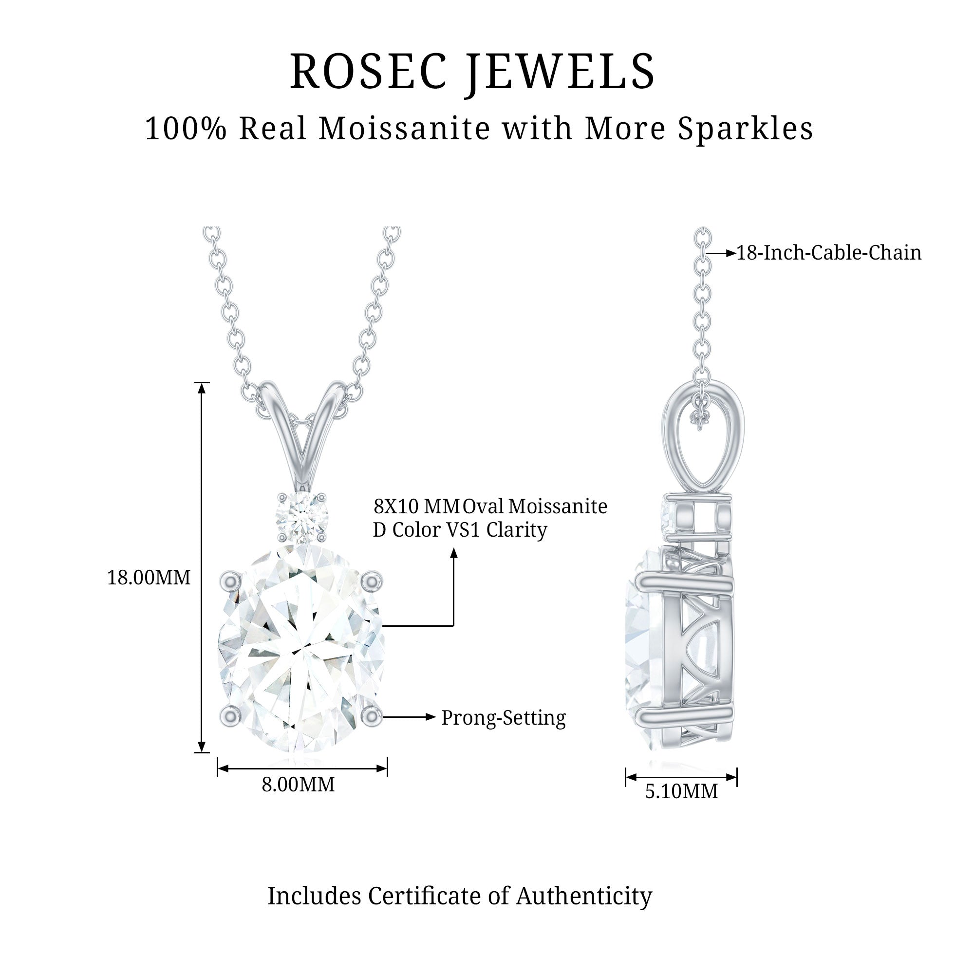 8X10mm Oval Moissanite Solitaire Necklace With Silver Chain