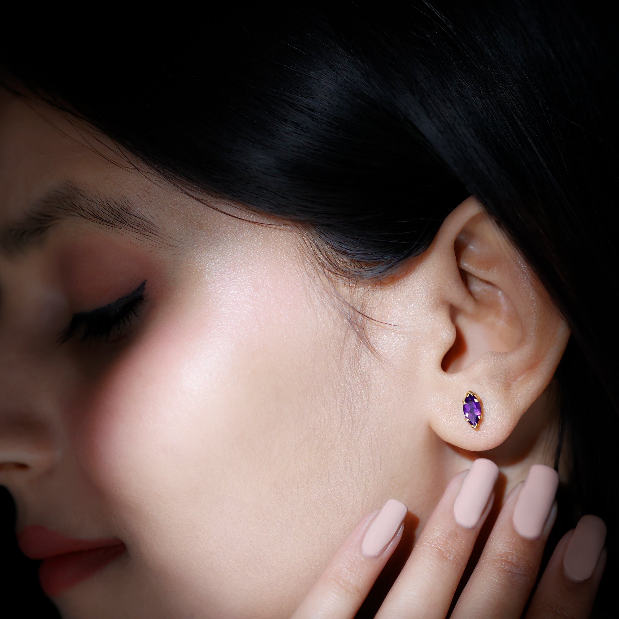 Enhance your beauty with these beautiful Stud Earring Embellished with Marquise Cut Amethyst set as Solitaire in Prong Setting. This Gold Stud Earring is Composed of Solid Gold