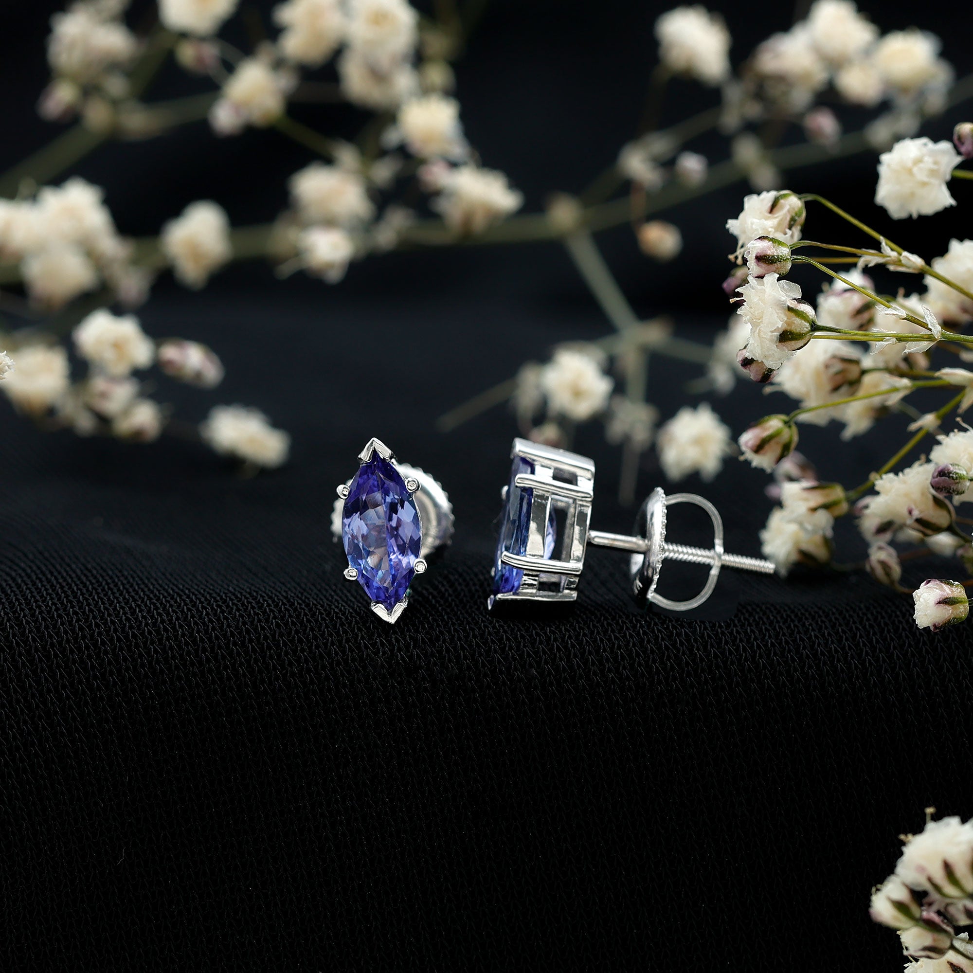 8X4 MM Marquise Cut Tanzanite Solitaire Stud Earring