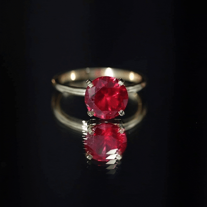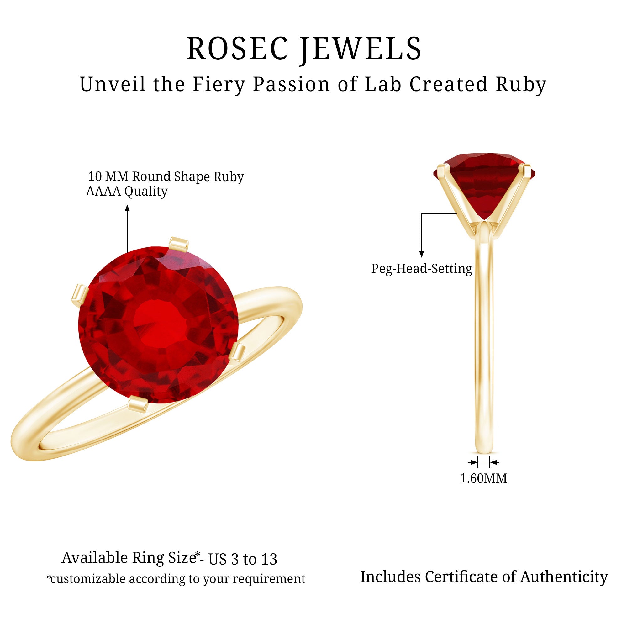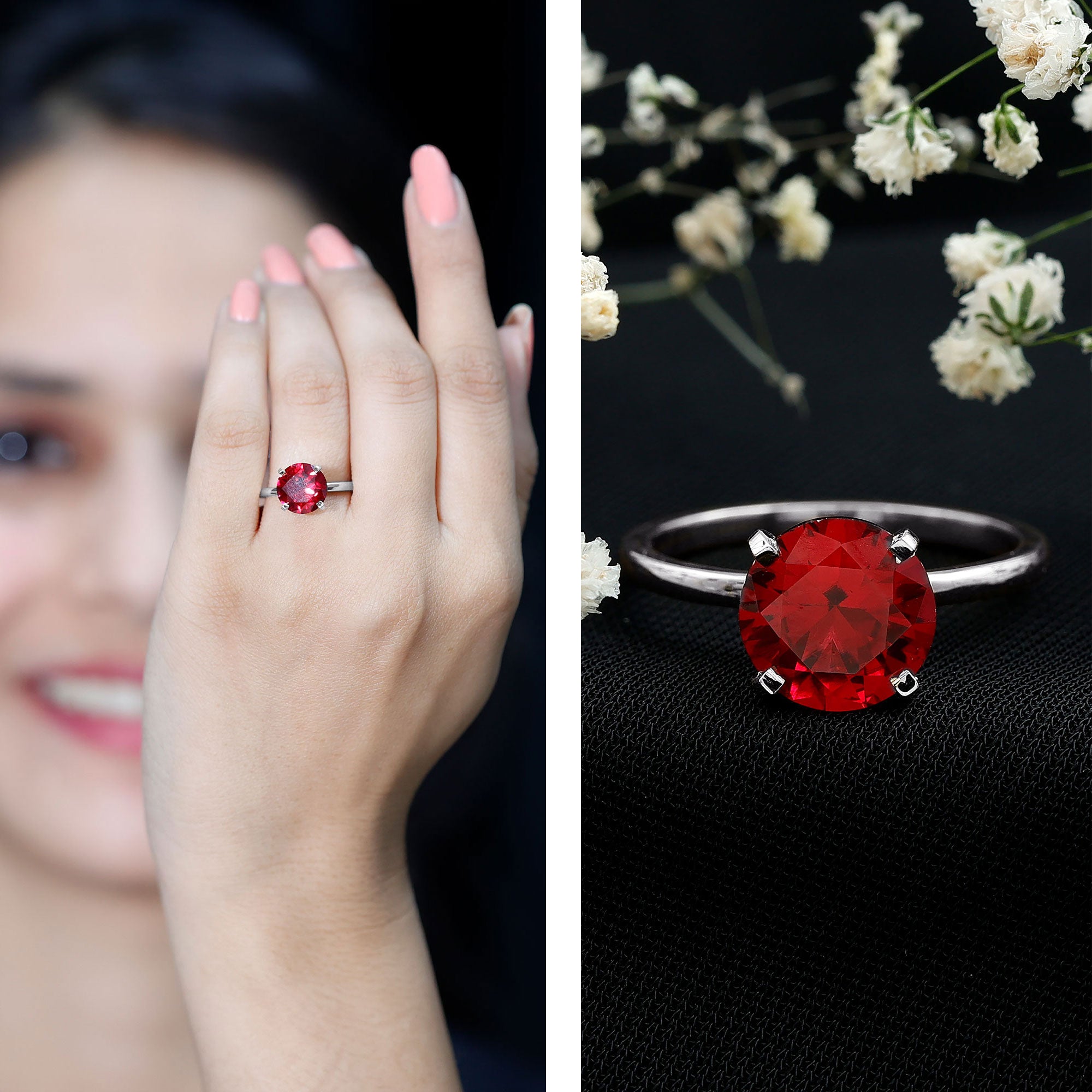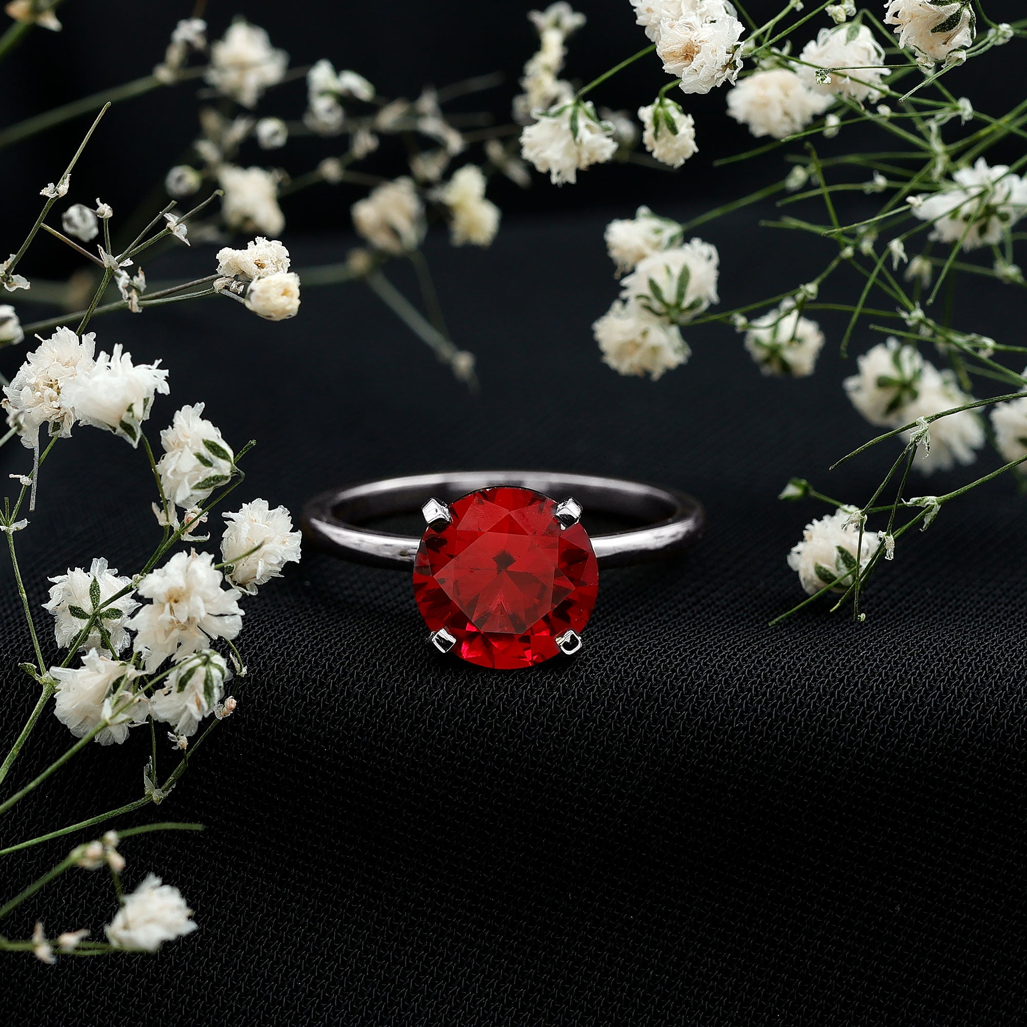 9 MM Round Cut Created Ruby Solitaire Ring for Women