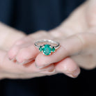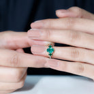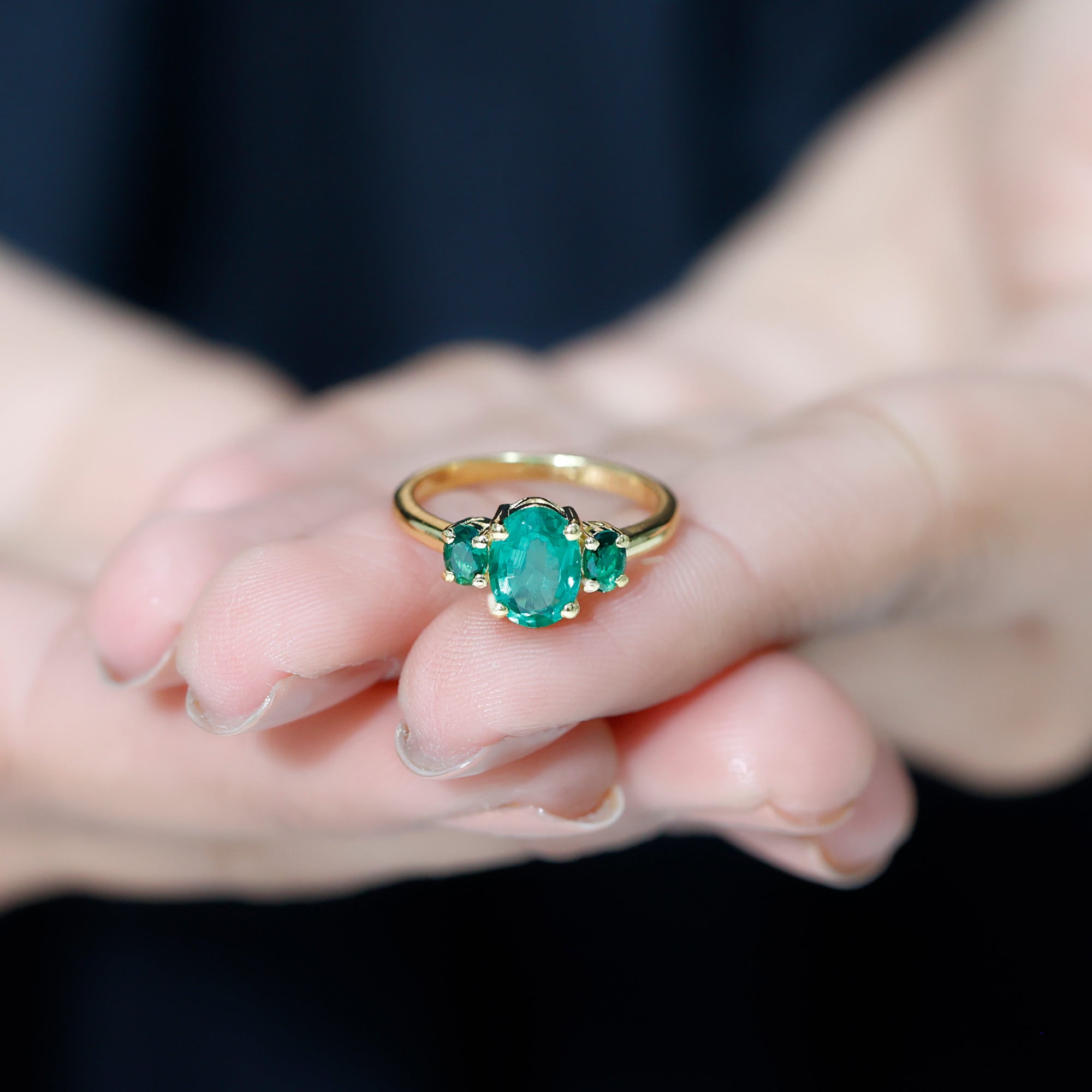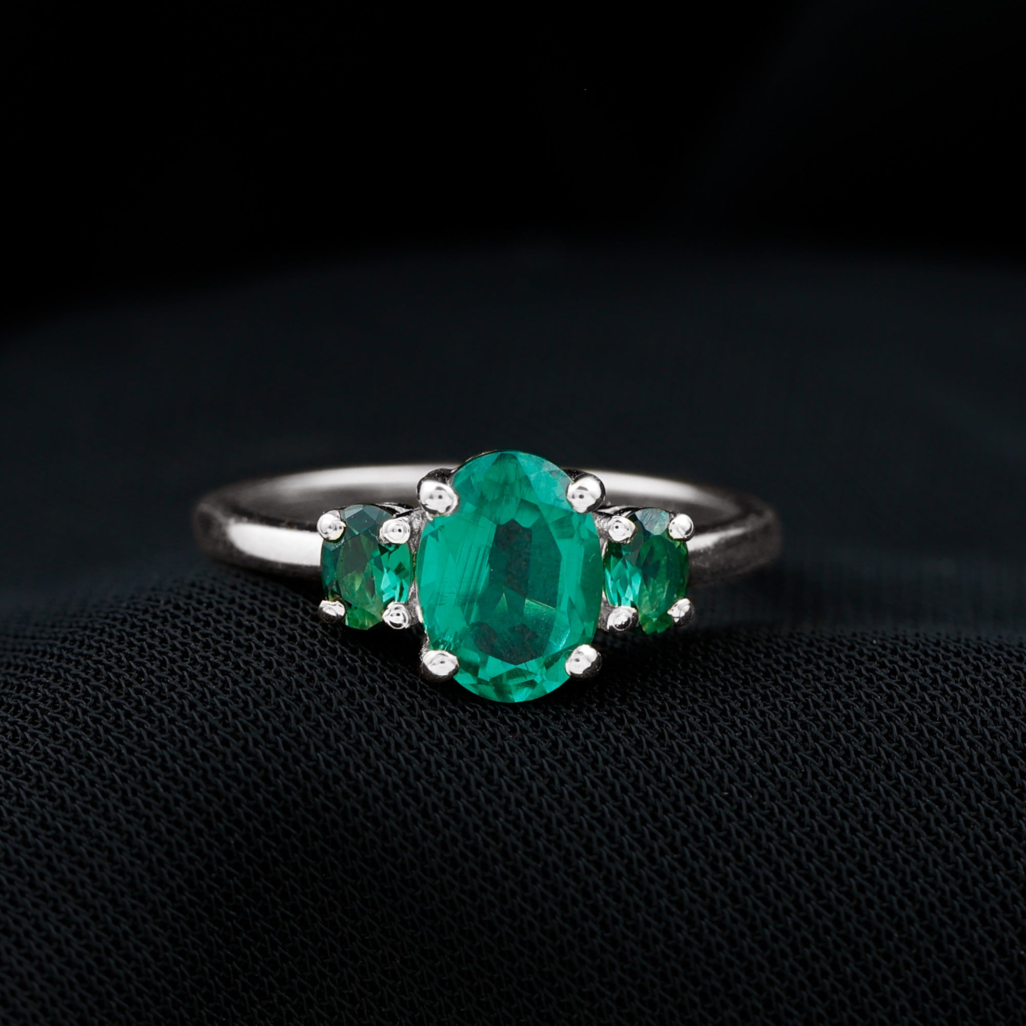 AAAA Quality Oval Cut Lab Created Emerald Three Stone Ring for Women
