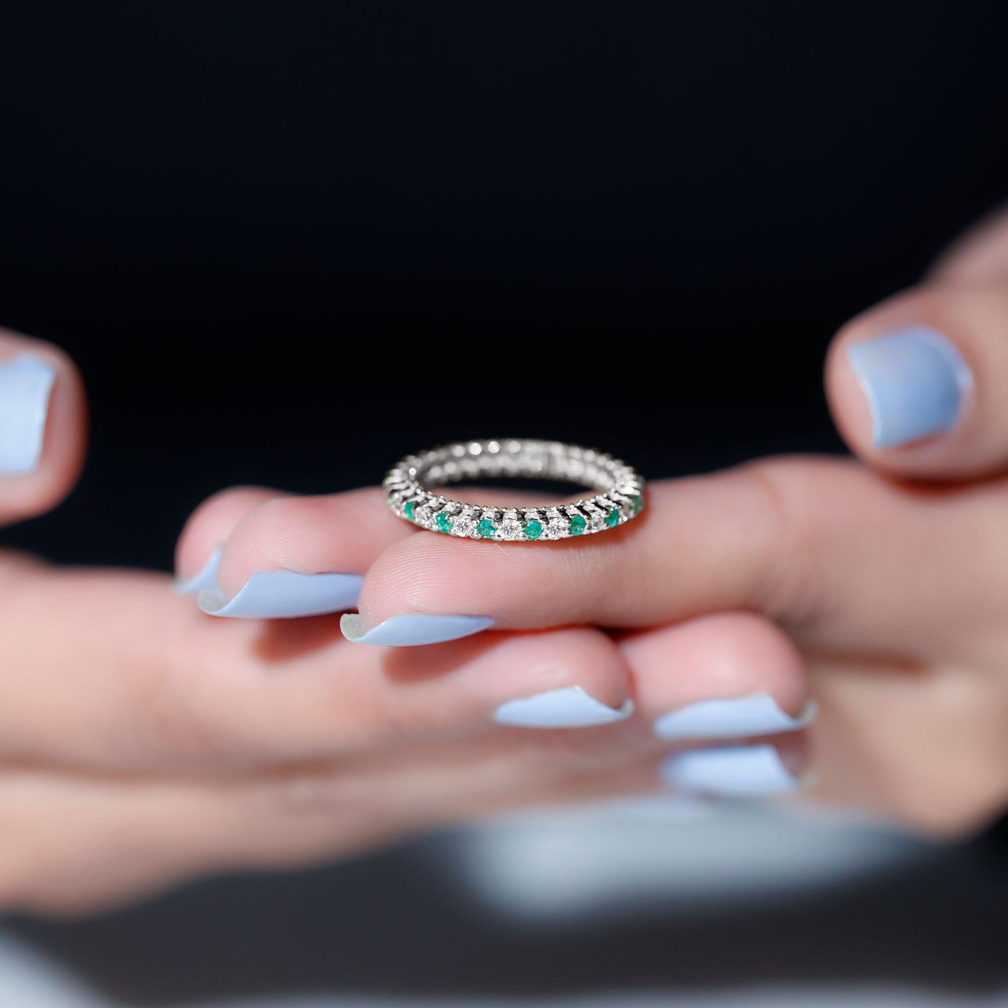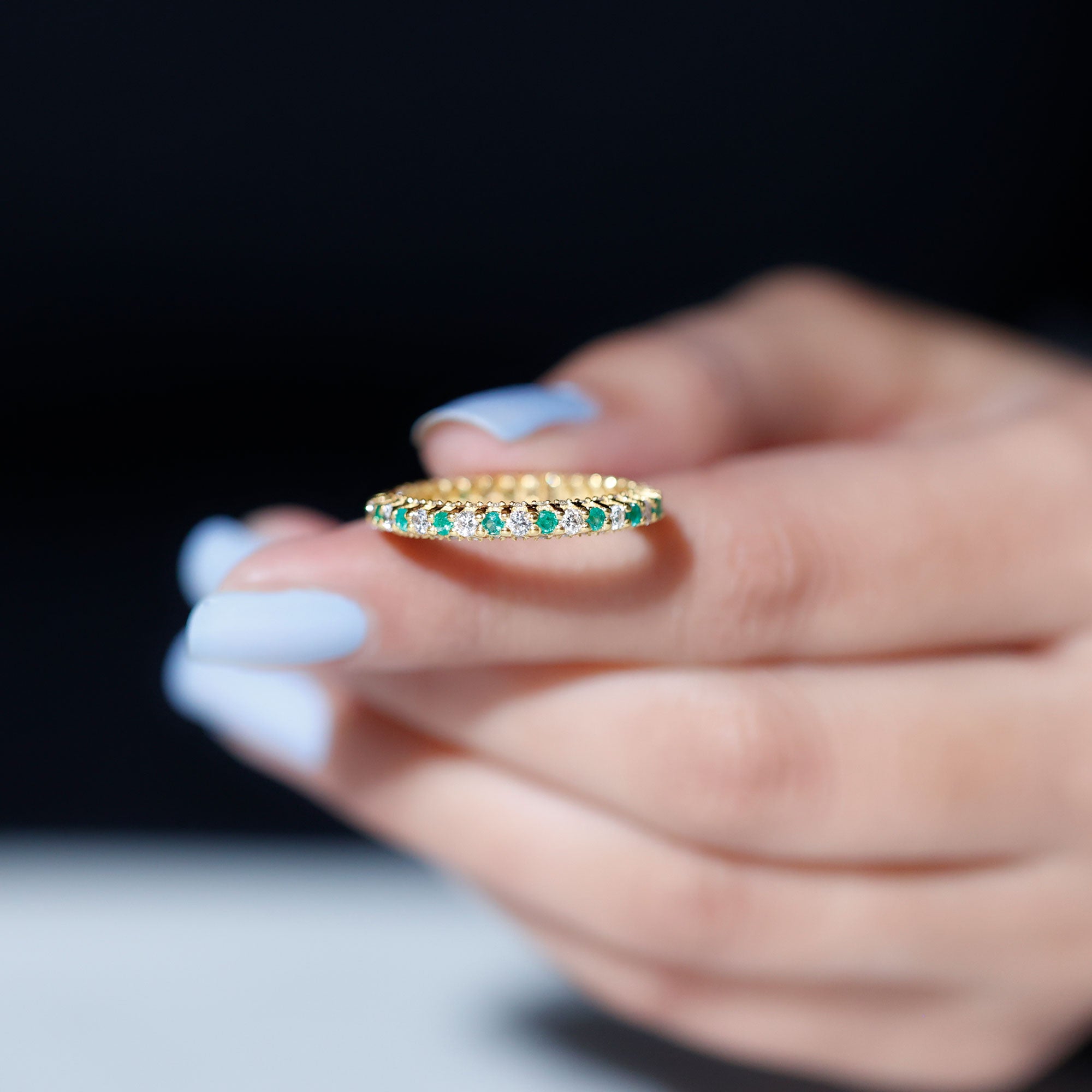 Alternate Round Emerald and Diamond Eternity Stackable Ring