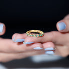Alternate Round Emerald and Diamond Eternity Stackable Ring