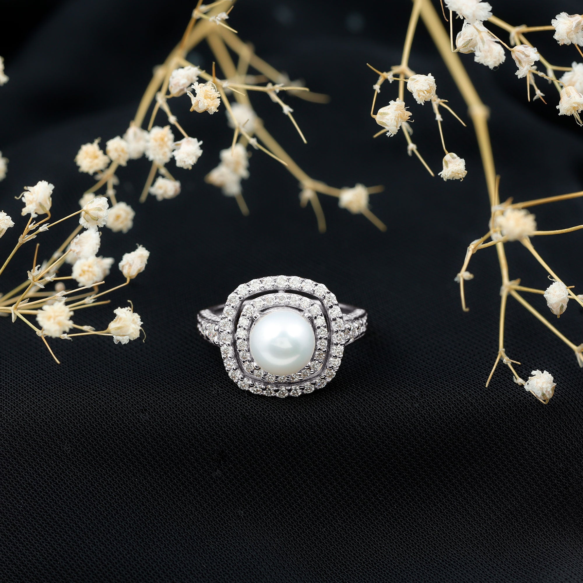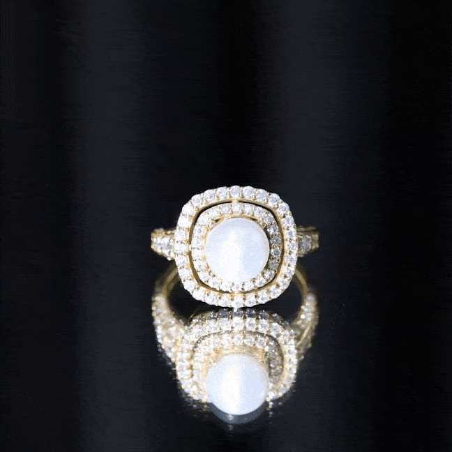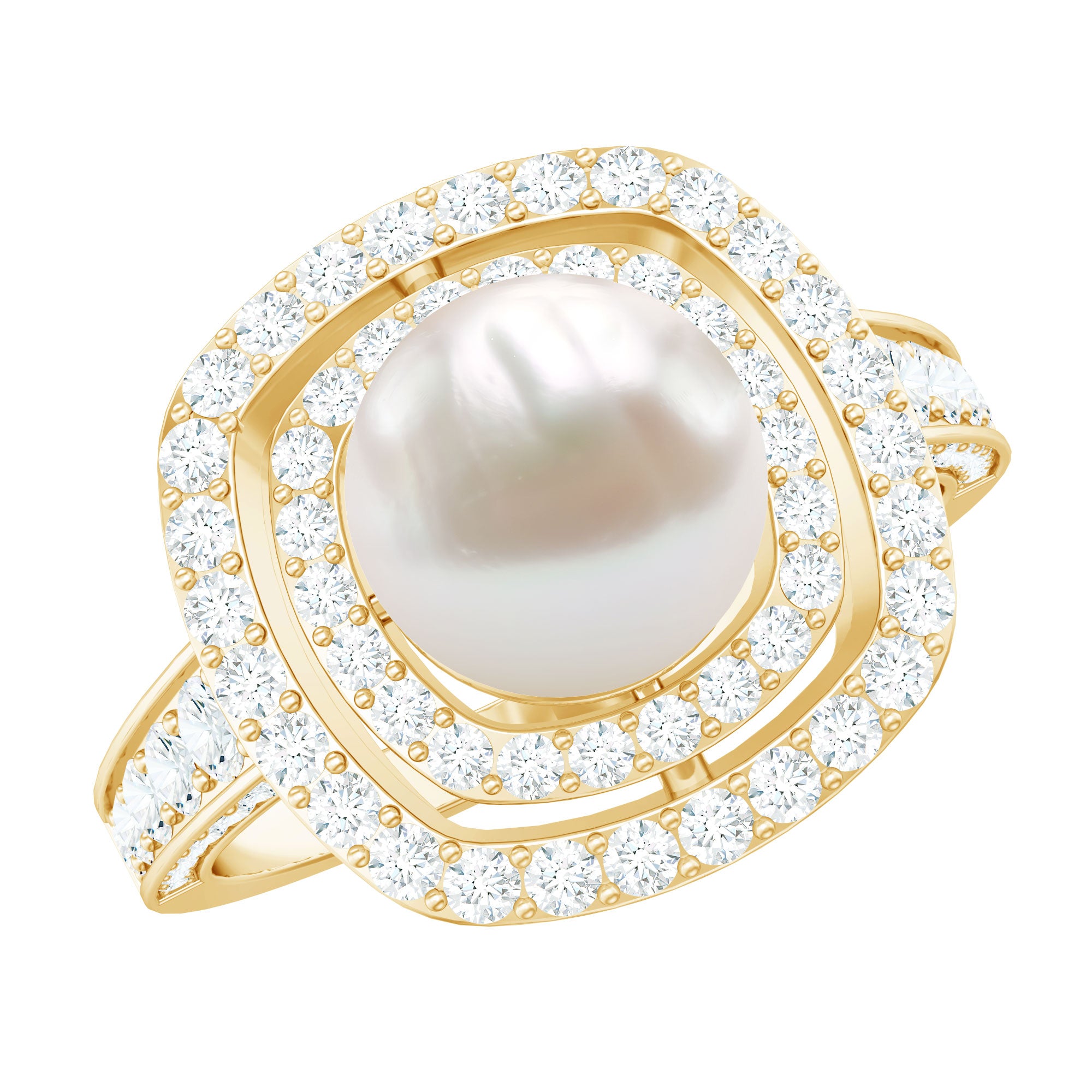 Amazing Freshwater Pearl Solitaire Engagement Ring and Moissanite Double Halo