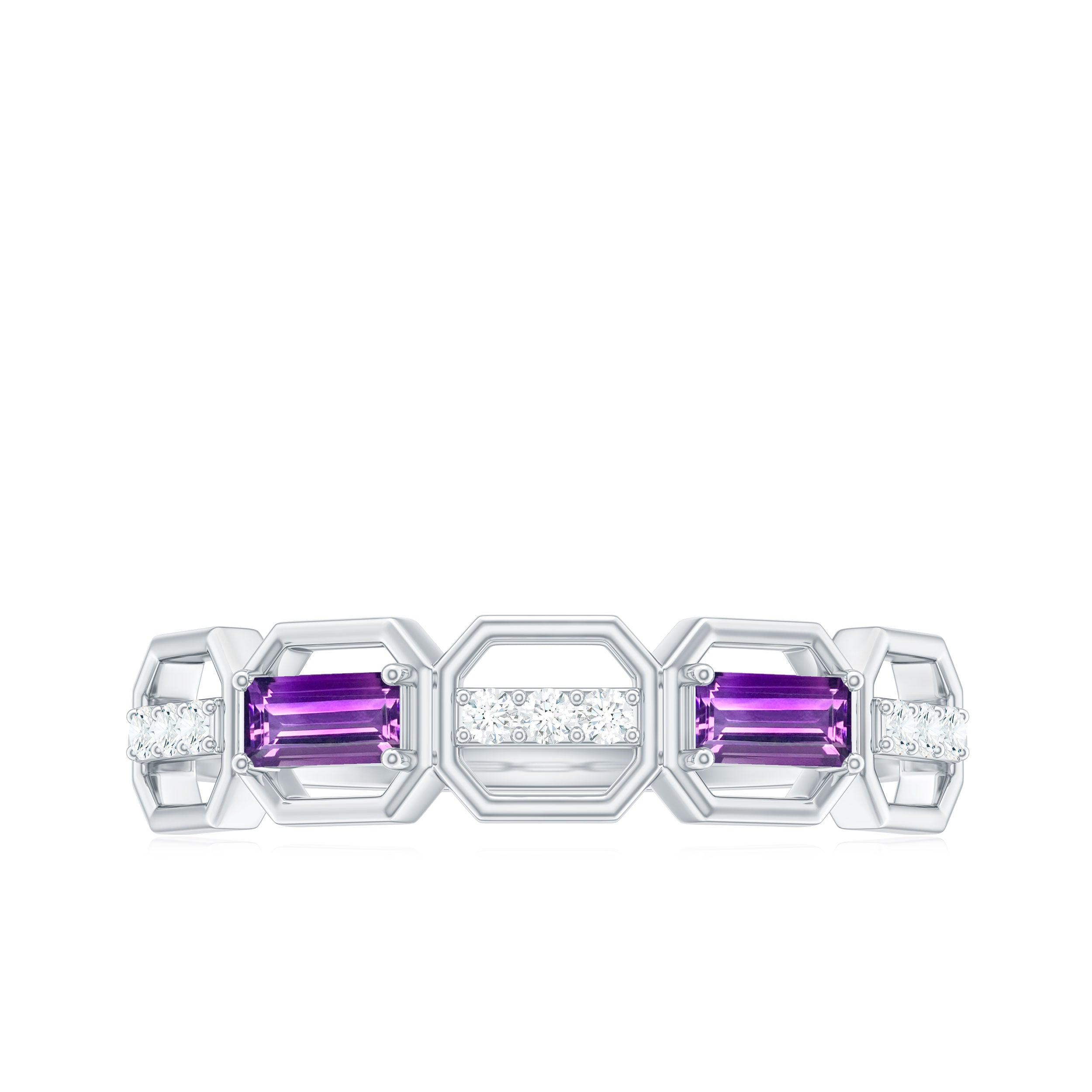 Amethyst and Diamond Geometric Half Eternity Ring