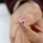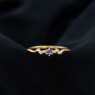 Embrace a promise of eternal love with this enchanting Promise Ring. The captivating centerpiece of this sparkling ring is a Round Shape Amethyst gemstone, delicately set in a prong setting. The Leaf Branch inspired band is adorned with shimmering Diamond gems, adding a touch of elegance and sophistication. This ring exudes a sense of class and grace, making it a perfect symbol of your commitment.