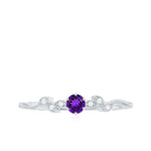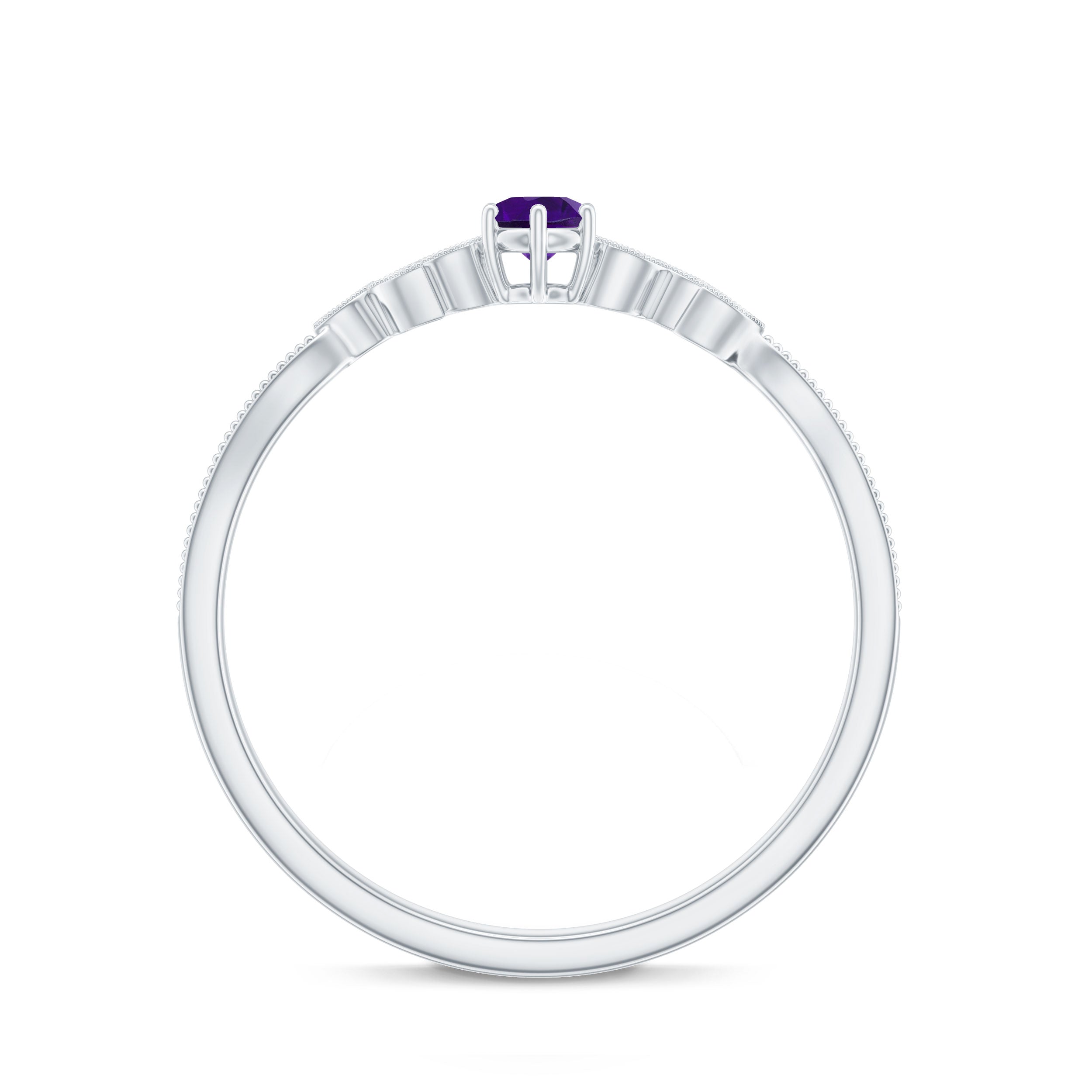Amethyst and Diamond Leaf Promise Ring with Beaded Detailing