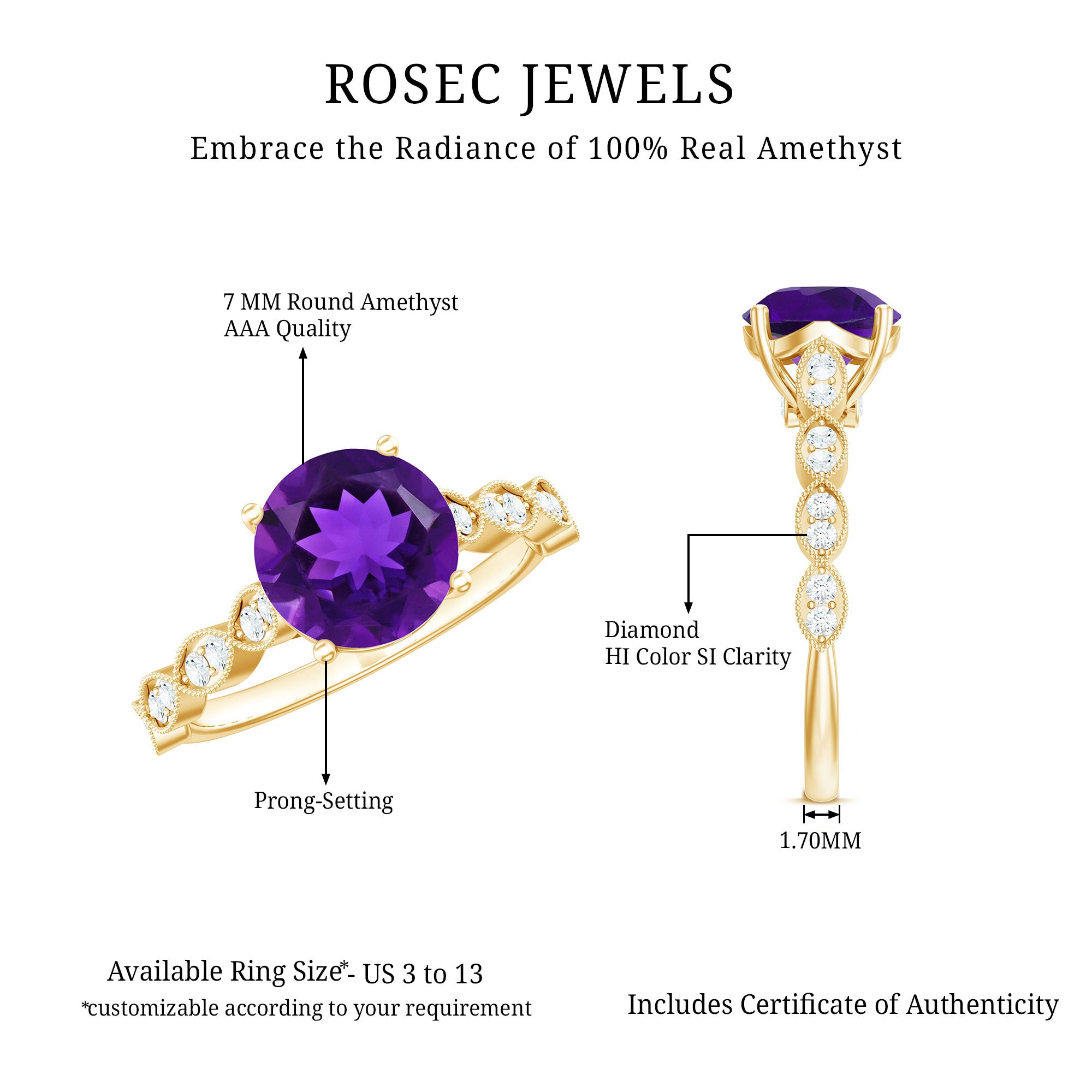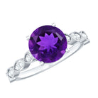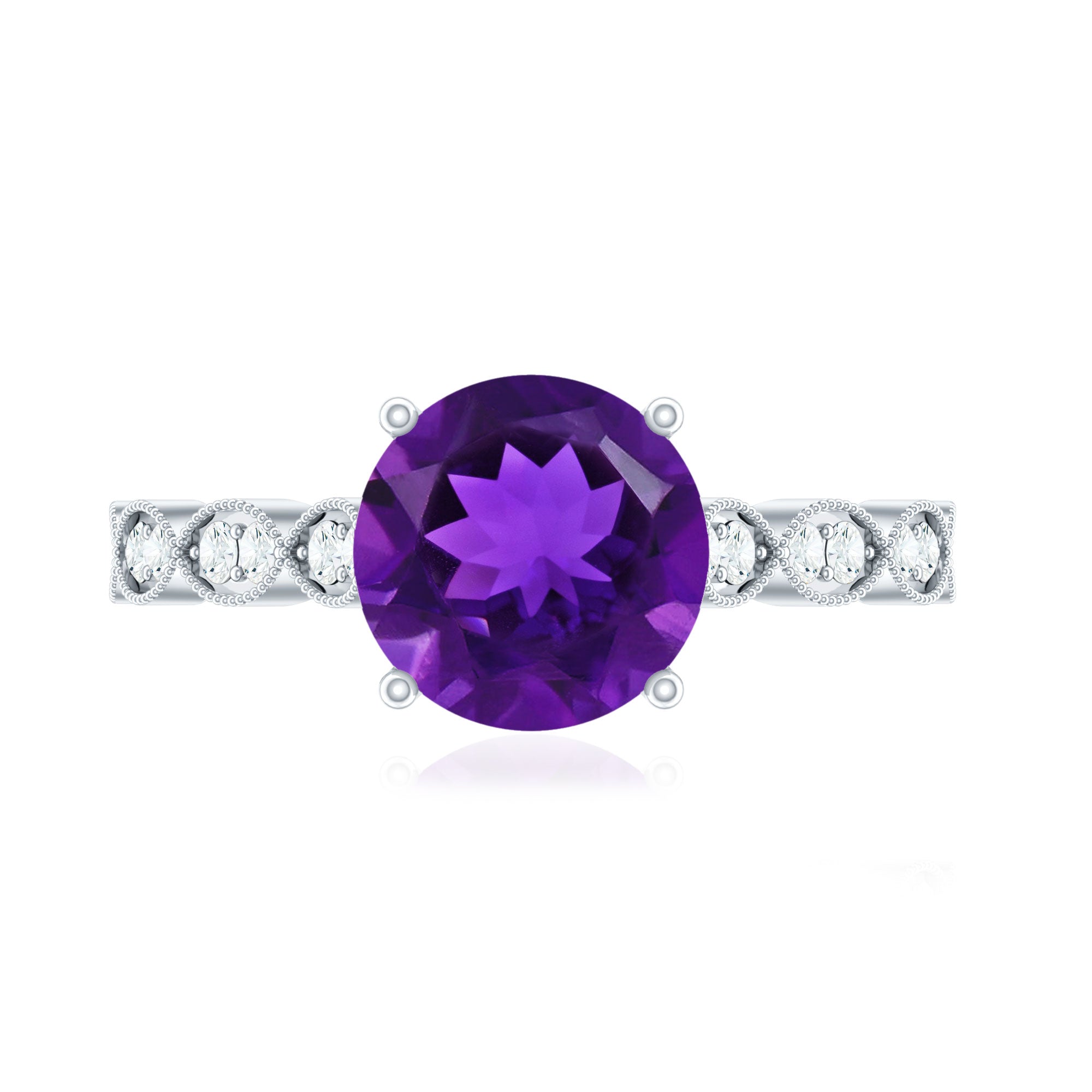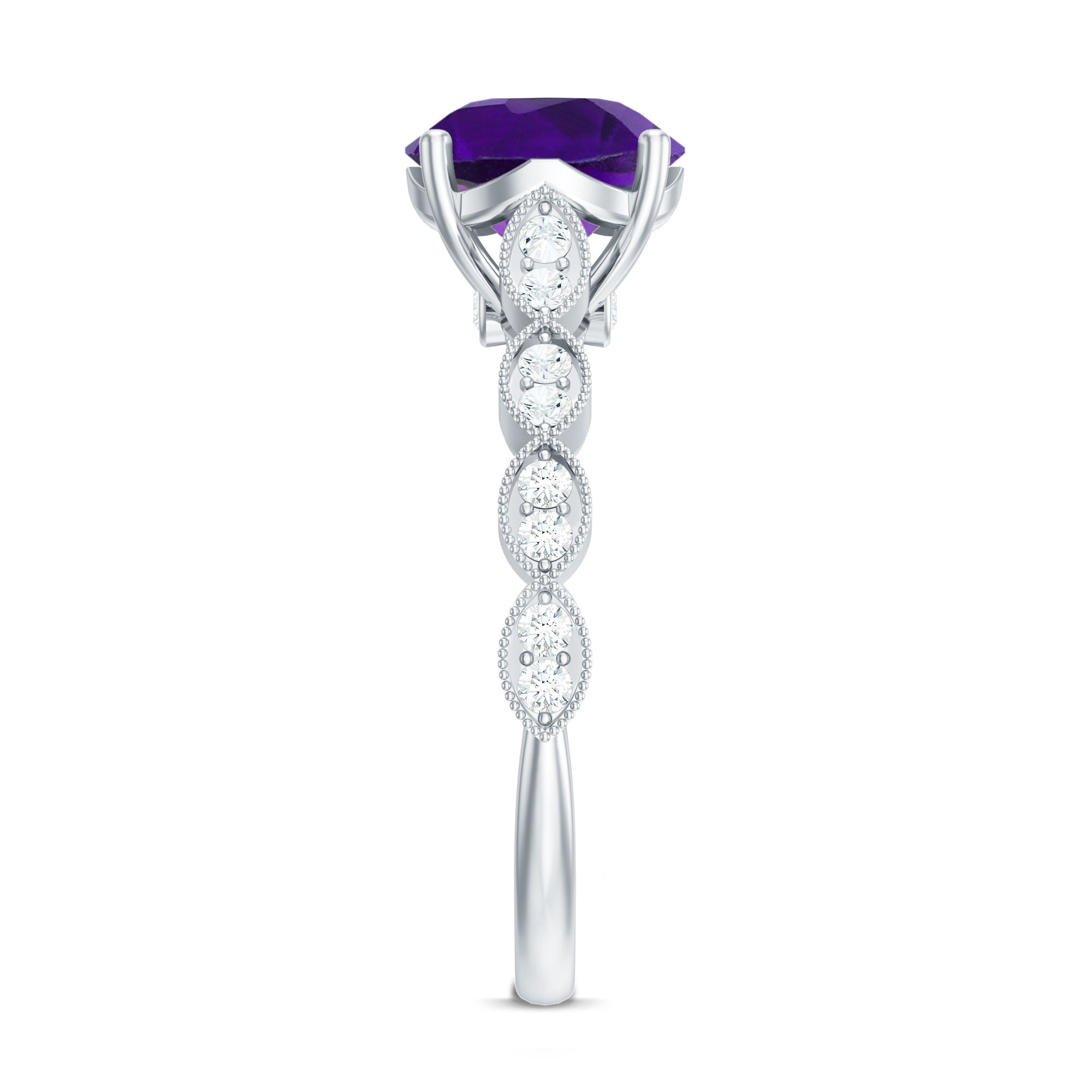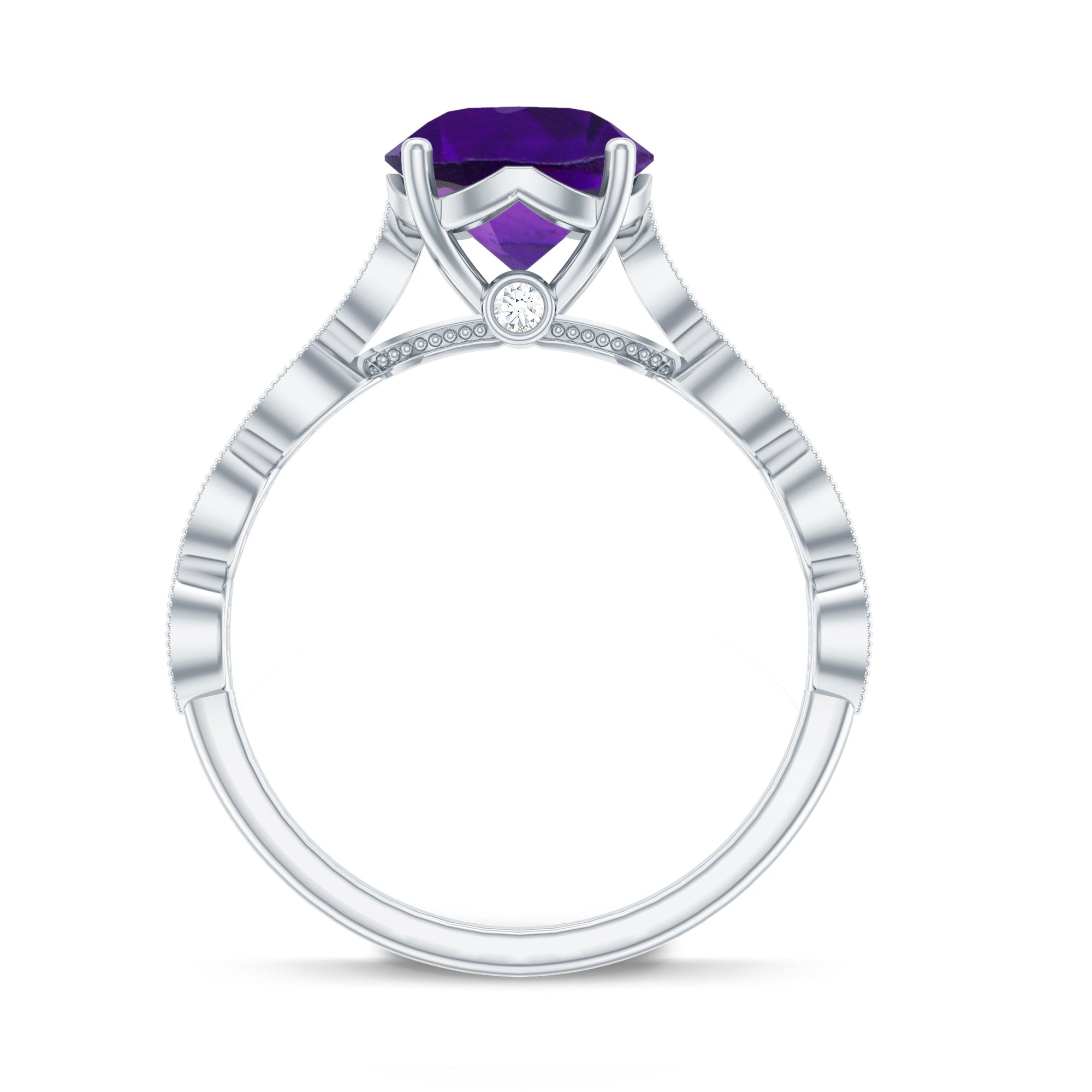 Amethyst and Diamond Solitaire Engagement Ring with Milgrain Details