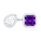 Amethyst and Moissanite Two Stone Cuff Ring