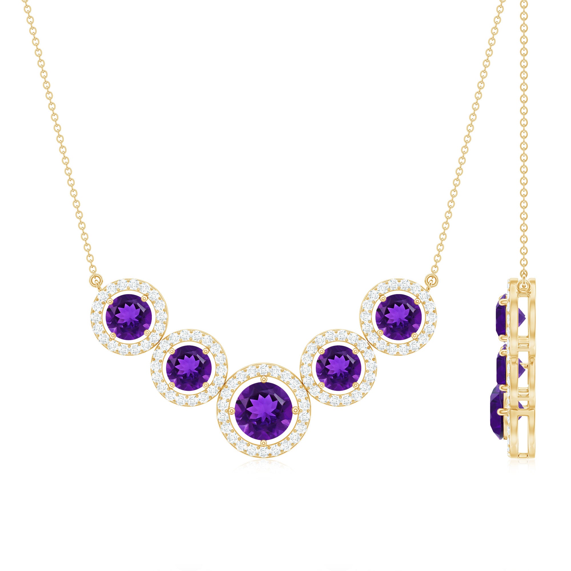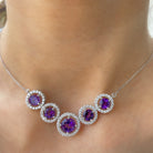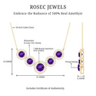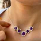Amethyst Five Stone and Moissanite Halo Necklace in Gold
