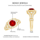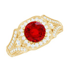 Antique Looking Lab Grown Ruby Engagement Ring with Diamond Halo