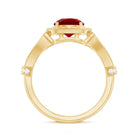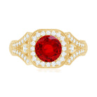 Step into a world of timeless charm with this Antique Ruby Engagement Ring. Designed for those who love graceful detail, this Vintage Ruby Ring brings together tradition and romance in a truly elegant way. At the center of the design is a certified 7 MM round lab created ruby, gently secured in prong setting. It is surrounded by a beautifully crafted halo of lab grown diamonds, accented with fine milgrain detailing that adds a antique-style finish. The band is where the design truly shines, two delicate rows of diamonds, each lined with milgrain borders, flow down from the halo and merge into one. This unique band design gives the Ruby and Diamond Engagement Ring an old-world feel while keeping it refined and wearable. Whether you prefer a modern or vintage look, this Halo Engagement Ring offers a perfect balance of both. You can choose from a variety of metal colors and purity levels to suit your personal style. This Vintage Engagement Ring is crafted using lab created stones and fine materials, offering a thoughtful and ethical choice without compromising on quality or beauty. For those looking for something truly special, this Lab Made Ruby Ring offers timeless elegance and delicate detail, perfect for marking the beginning of a lifelong journey together.