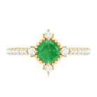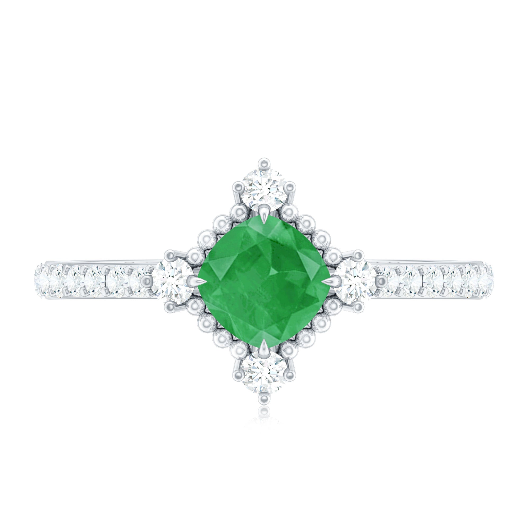 Antique Looking Real Emerald Cushion Cut Engagement Ring with Diamond