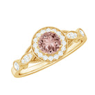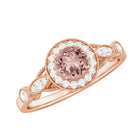 Begin your new journey in style with this exquisite Antique Engagement Ring featuring a dazzling 5 MM Round Shape Morganite at the center, complemented by a Diamond halo and side stones adorning the designer shank with Beaded Detailing. This Morganite Engagement Ring exudes elegance and sophistication, making it a magnificent choice for your special day. Crafted with careful attention to detail, this Morganite and Diamond Ring symbolizes love, promise, and the moments that matter most. To make the experience complete, the Halo Engagement Ring arrives in a premium jewelry box and includes a certificate of authenticity for added confidence and value. With multiple ring sizes and metal options available, it can be tailored to match her personal style. Let the beauty and charm of this Vintage Morganite Ring symbolize your love and commitment, creating cherished memories to last a lifetime.
