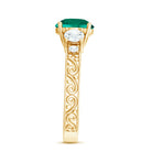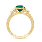 Antique Style Lab Grown Emerald Three Stone Engagement Ring with Moissanite