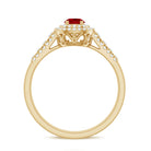 Antique Style Lab Ruby and Moissanite Double Halo Engagement Ring