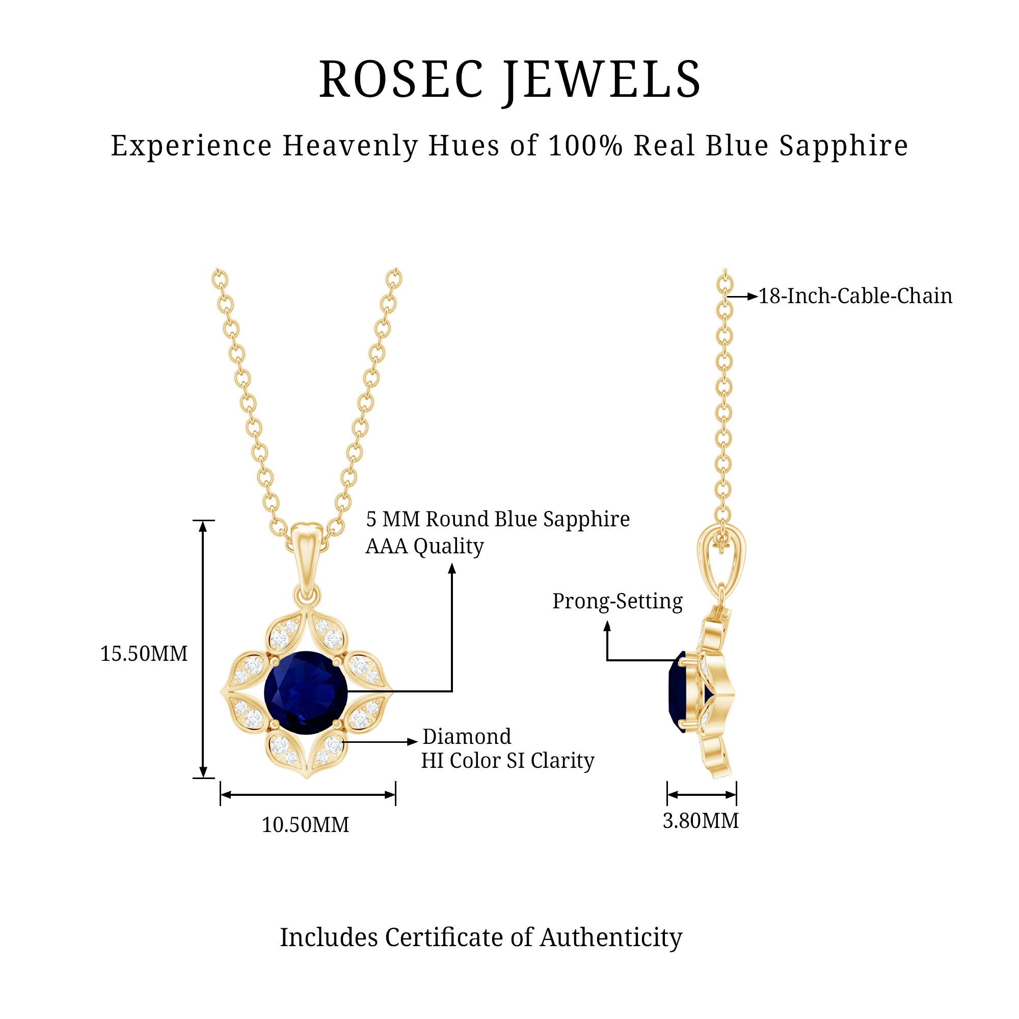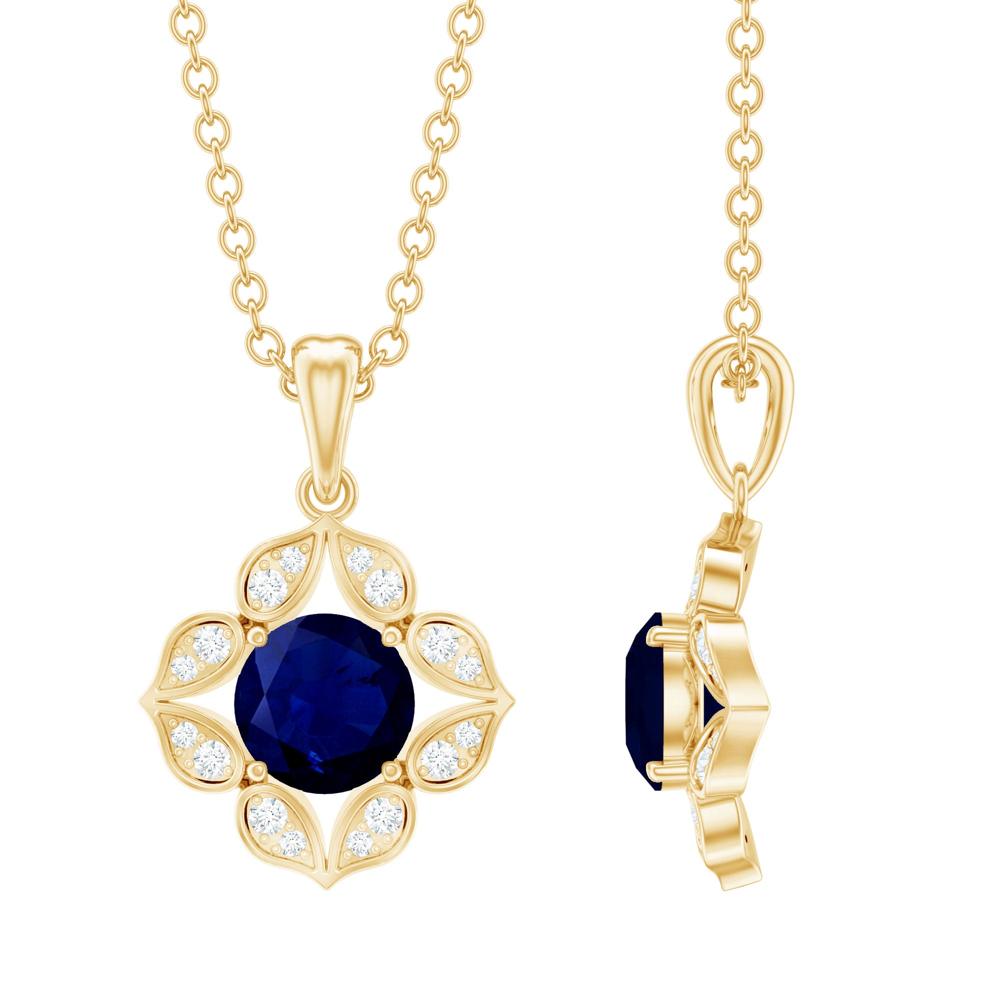 Enhance your bridal ensemble with the breathtaking beauty of this exquisite Natural Blue Sapphire Pendant. The antique design showcases a round blue sapphire center stone, radiating its deep blue allure, elegantly encircled by a halo of sparkling Diamond gemstones. This pendant is the perfect choice for brides-to-be seeking a timeless and elegant piece of jewelry to adorn themselves on their special day.