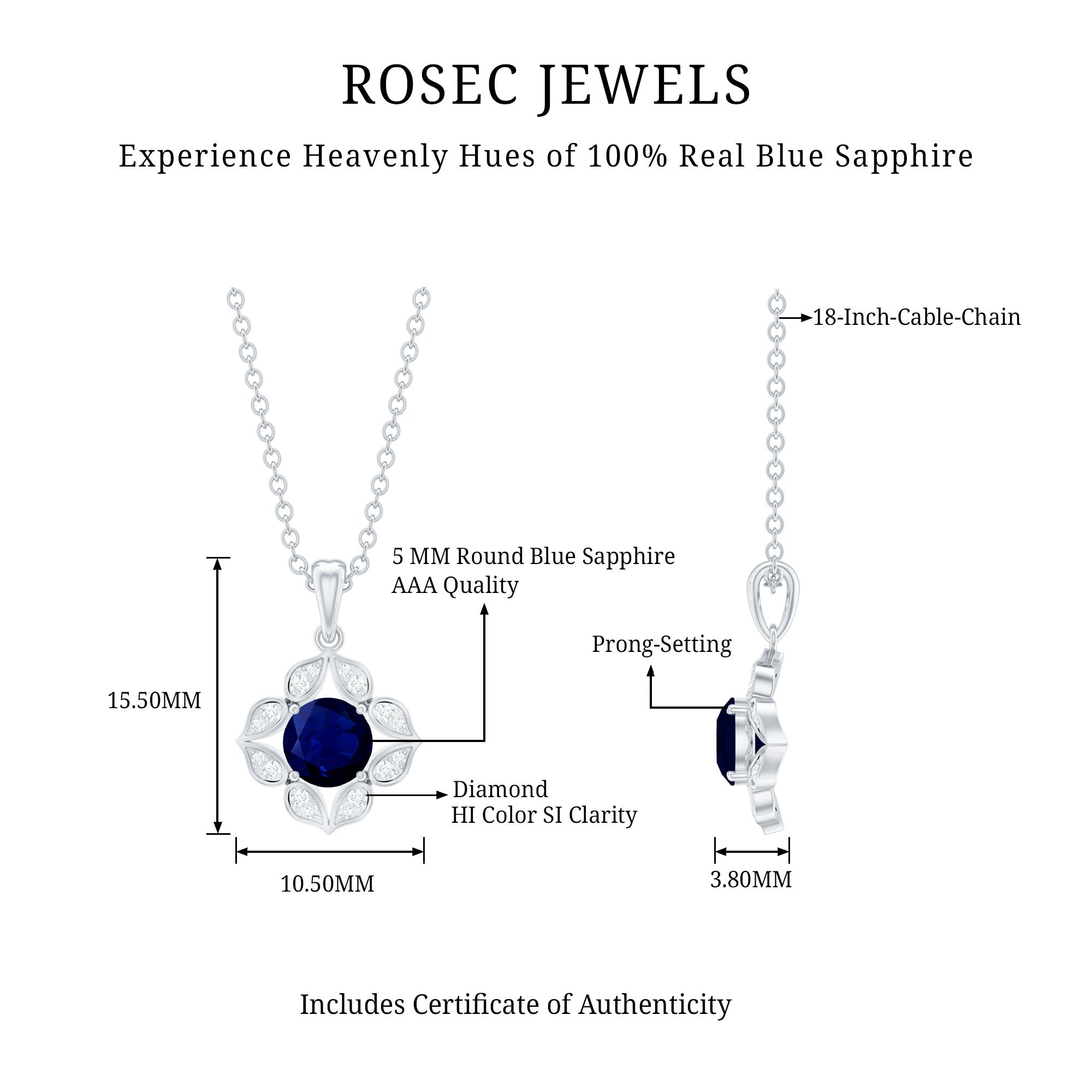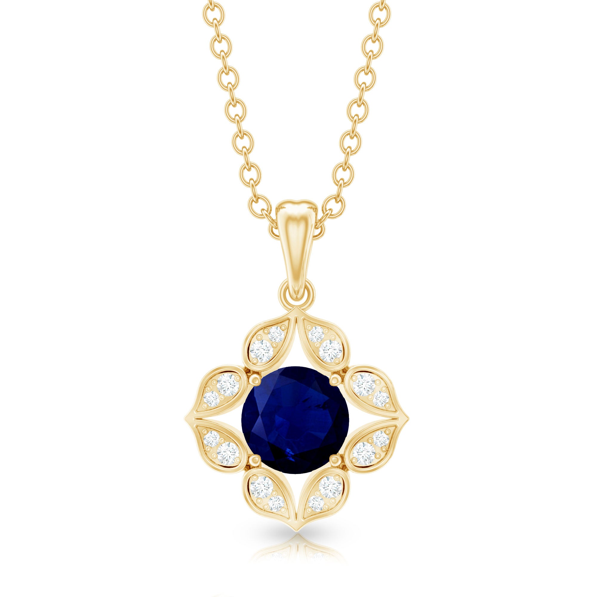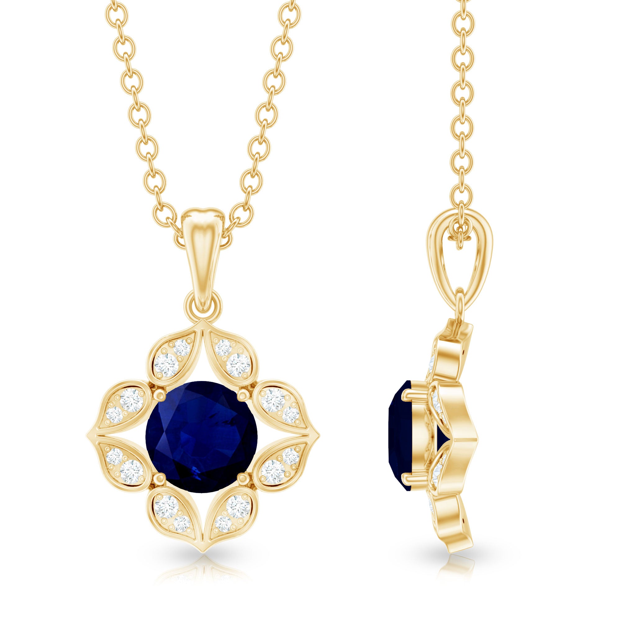 Antique Style Natural Blue Sapphire Bridal Pendant with Diamond