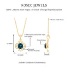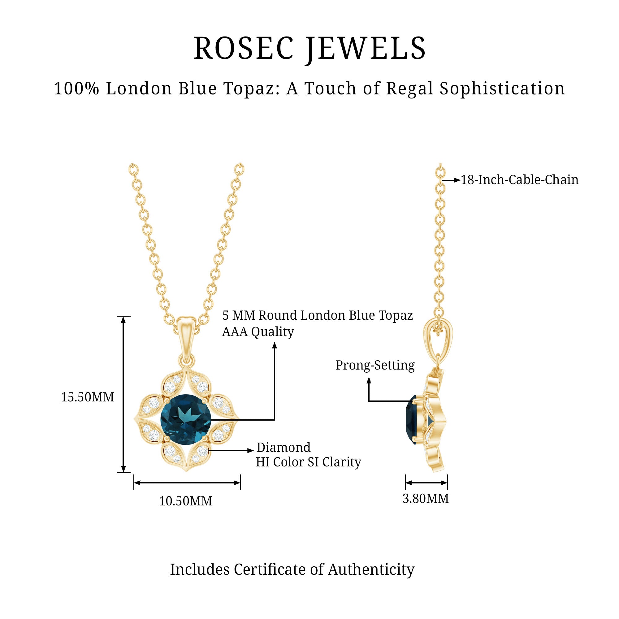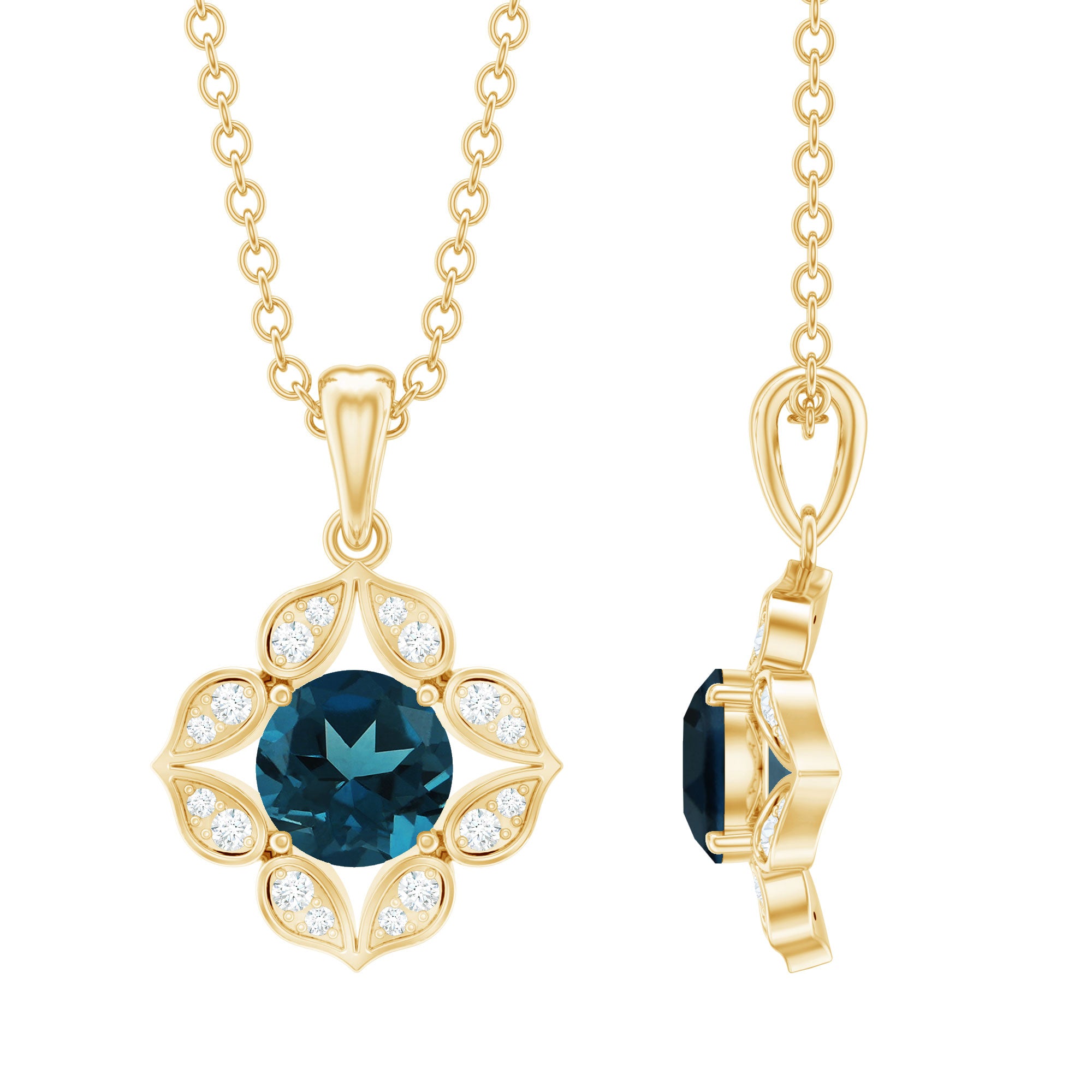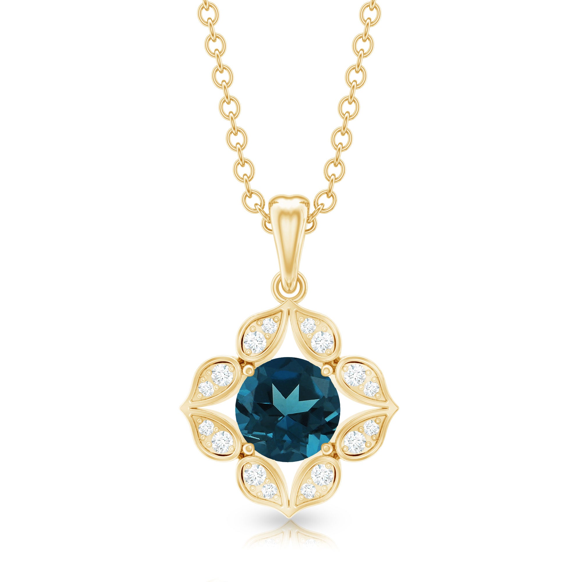 Enhance your bridal ensemble with the breathtaking beauty of this exquisite Natural London Blue Topaz Pendant. The antique design showcases a round London Blue Topaz center stone, radiating its deep blue allure, elegantly encircled by a halo of sparkling Diamond gemstones. This pendant is the perfect choice for brides-to-be seeking a timeless and elegant piece of jewelry to adorn themselves on their special day.