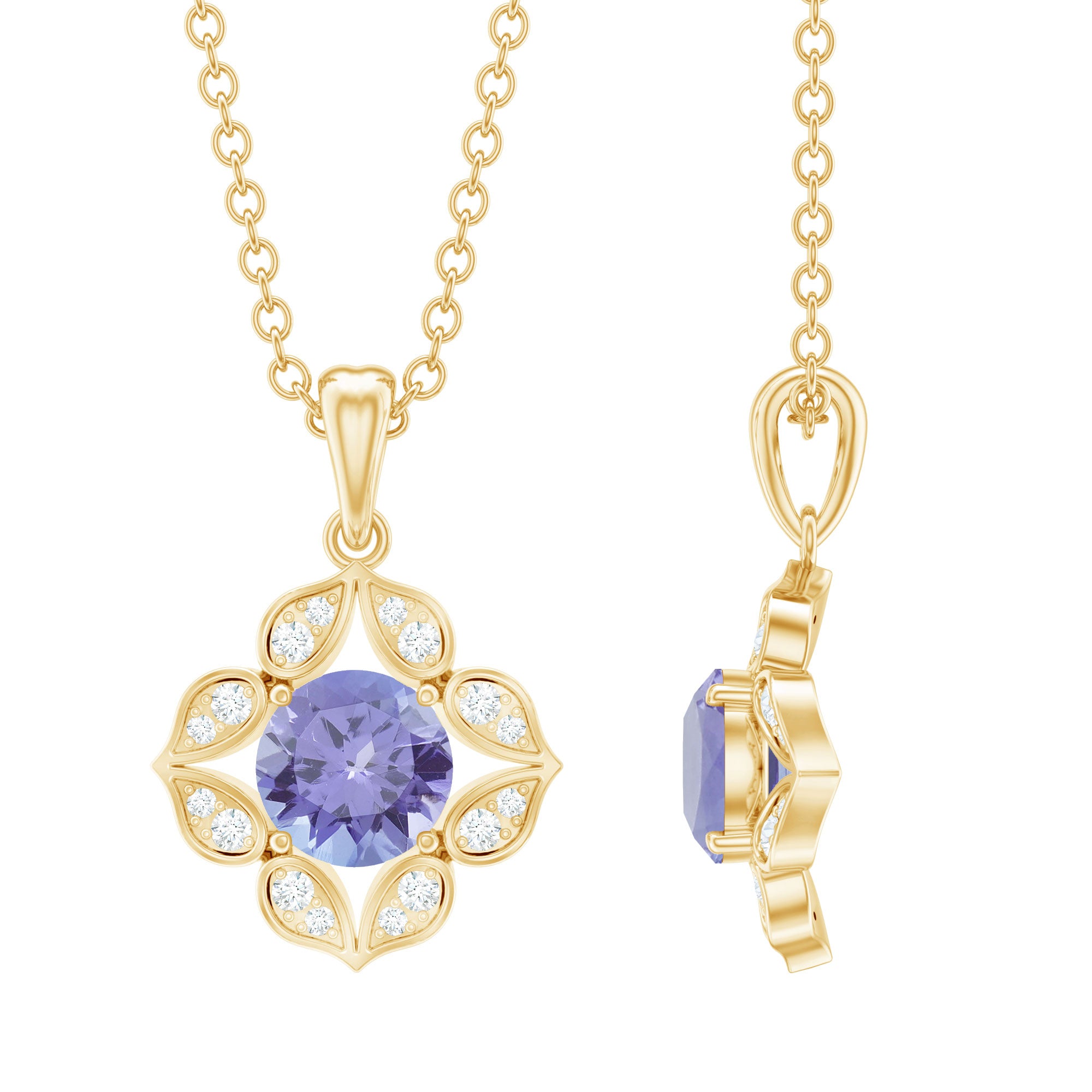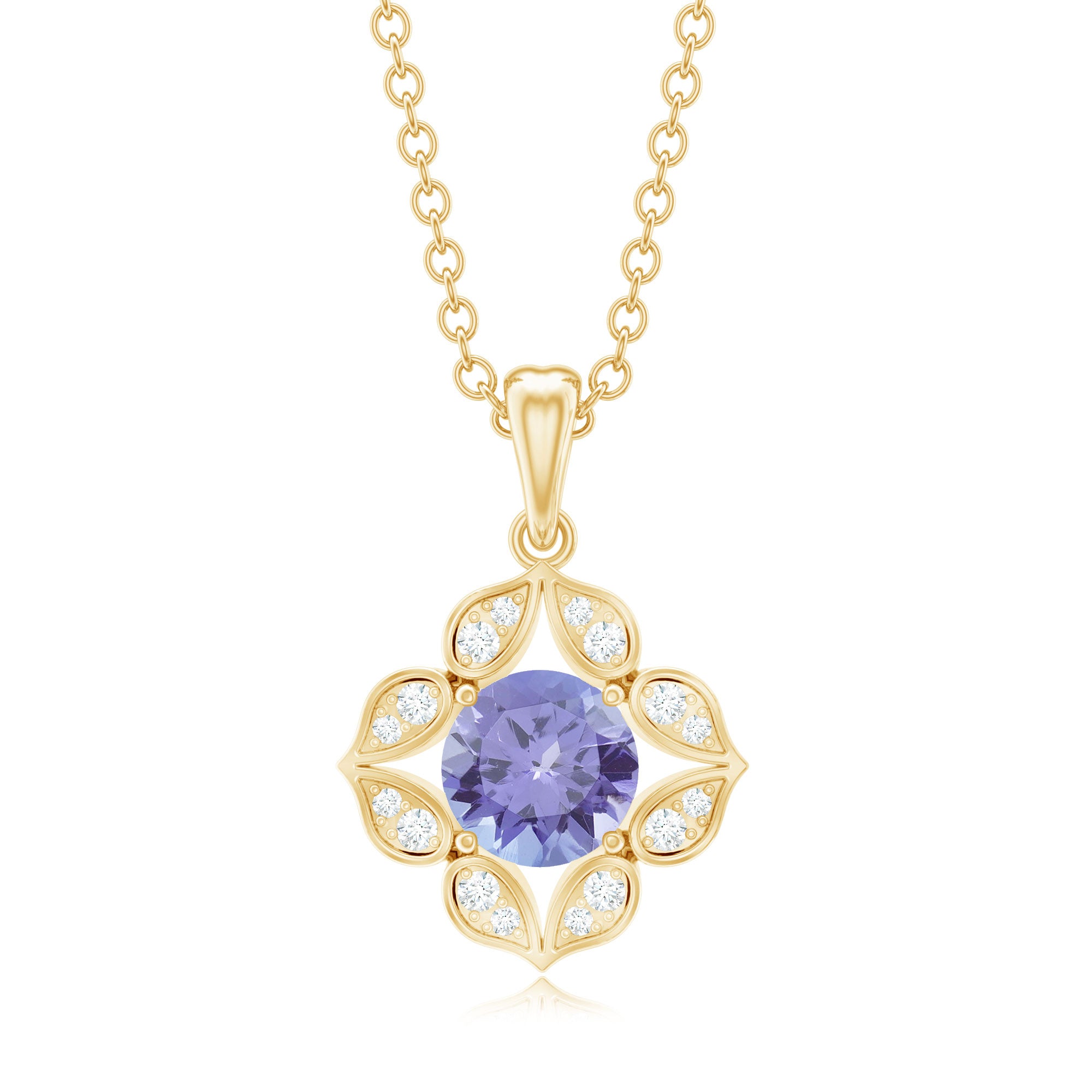 Enhance your bridal ensemble with the breathtaking beauty of this exquisite Natural Tanzanite Pendant. The antique design showcases a round Tanzanite center stone, radiating its deep blue allure, elegantly encircled by a halo of sparkling Diamond gemstones. This pendant is the perfect choice for brides-to-be seeking a timeless and elegant piece of jewelry to adorn themselves on their special day.