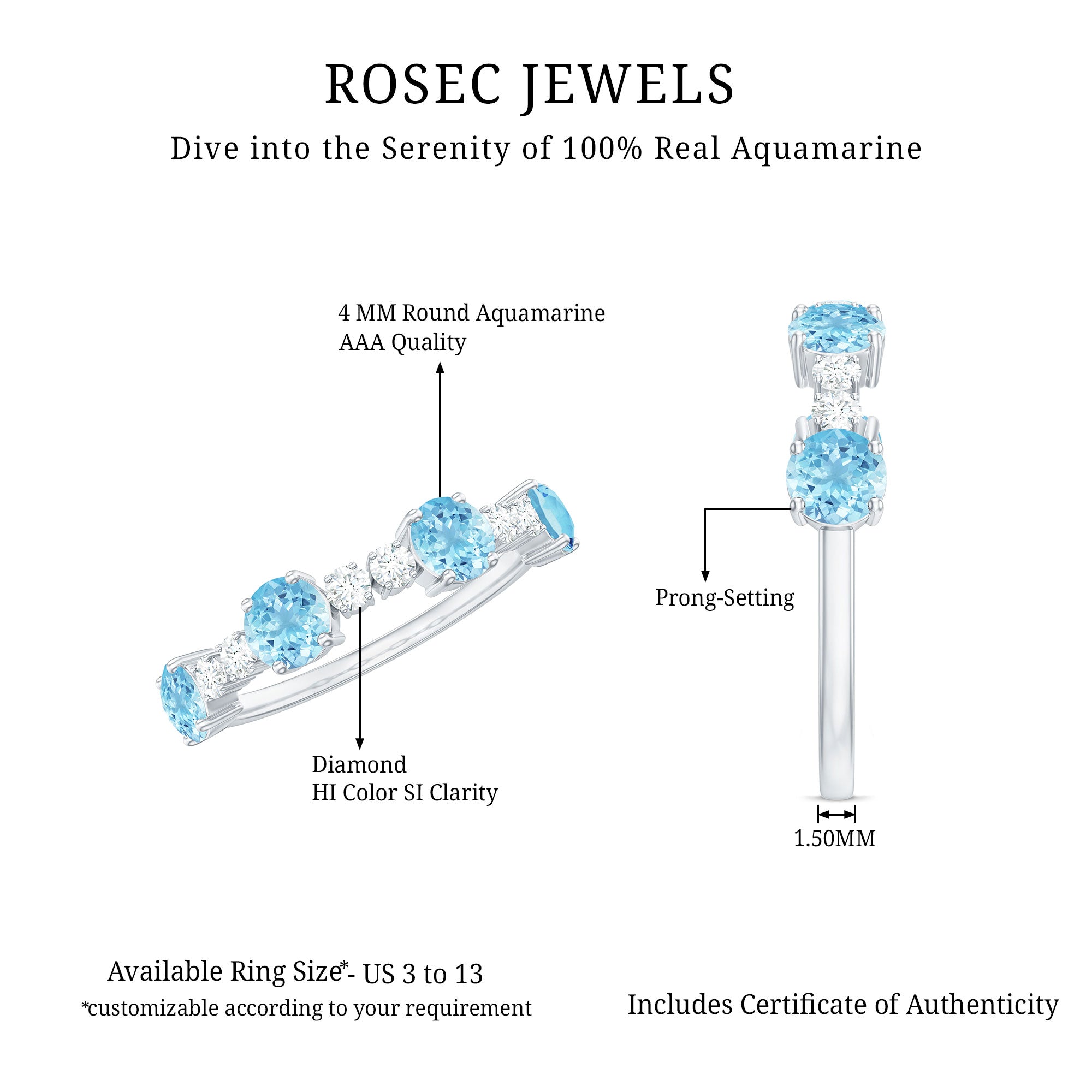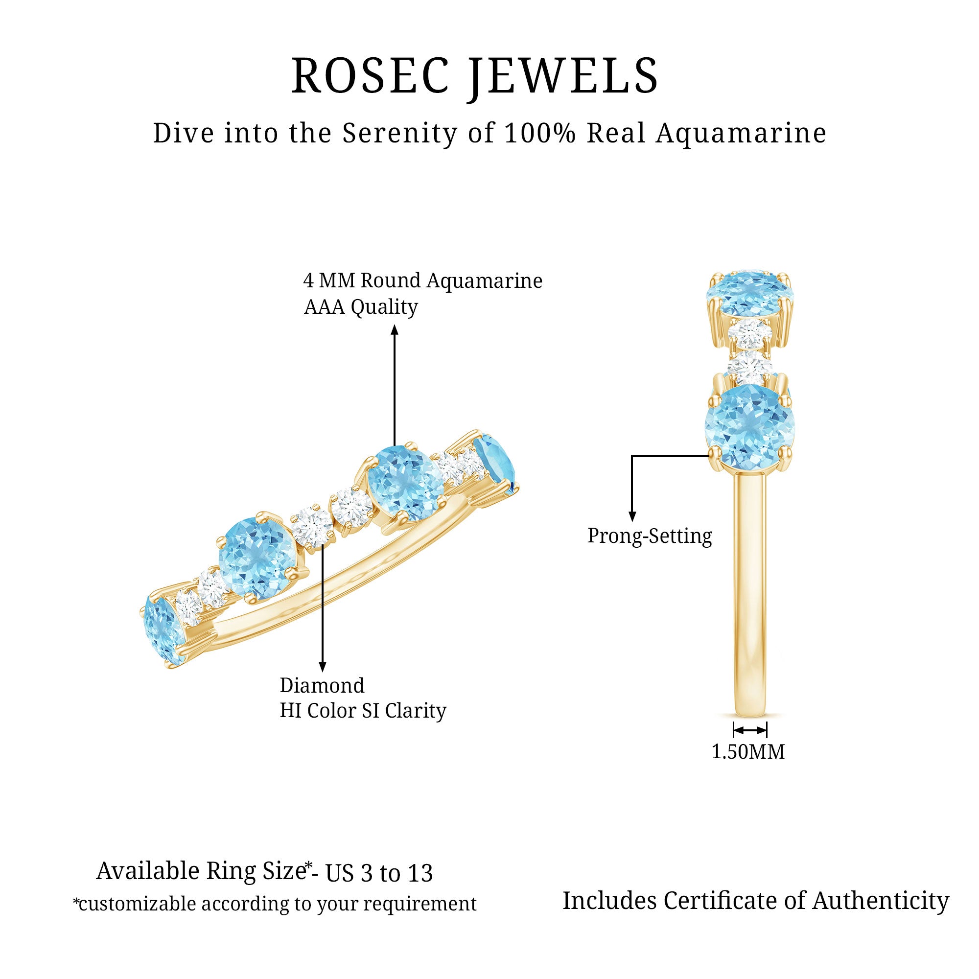 Aquamarine and Diamond Half Eternity Ring in Prong Setting