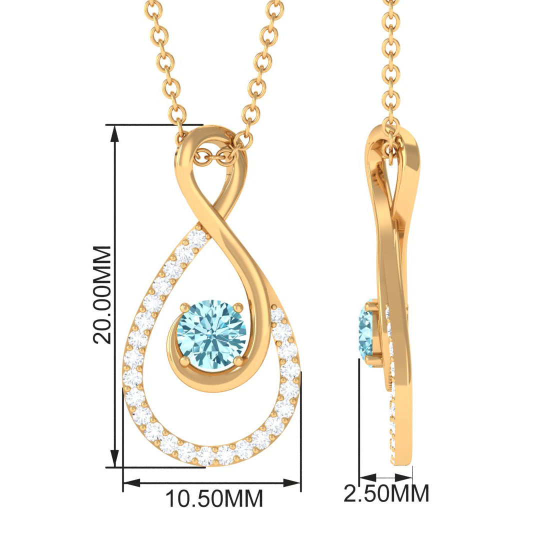 Experience the captivating beauty of the Infinity Pendant Necklace, where a sparkling Solitaire Aquamarine gracefully dances at its center. Surrounding this stunning Aquamarine, brilliant Round Diamond is elegantly encased, enhancing the shimmer and elegance of the Teardrop Pendant Necklace. It serves as a perfect gift for your special person on Valentines Day or your anniversary, showcasing your love and appreciation. Embrace the allure of this gorgeous piece, and let it be a symbol of your enduring affection and timeless style.