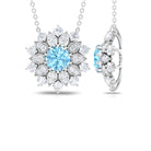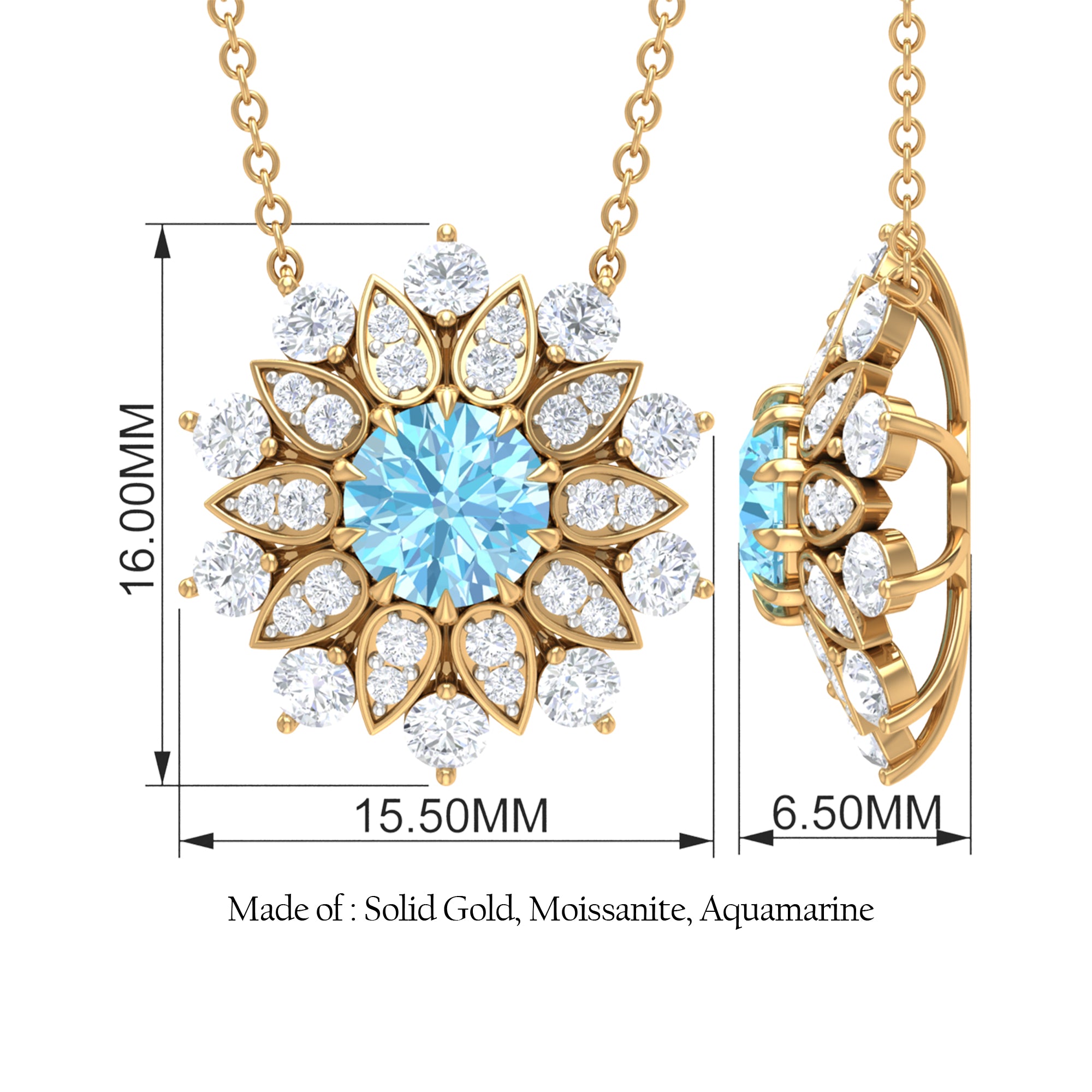 Illuminate your style with our Aquamarine and Moissanite Flower Statement Necklace. A captivating Aquamarine graces the center of this floral-inspired masterpiece, symbolizing tranquility and grace. Surrounding it, shimmering Moissanite gemstones form delicate petals, creating an intricate and enchanting design. This necklace is not just jewelry; its a statement of elegance and natural beauty. Whether youre wearing it to complement your outfit or to celebrate March birthdays, this necklace will always command attention. With its timeless allure and floral motif, its a piece that captures the essence of sophistication and grace, making it a cherished addition to your jewelry collection.