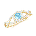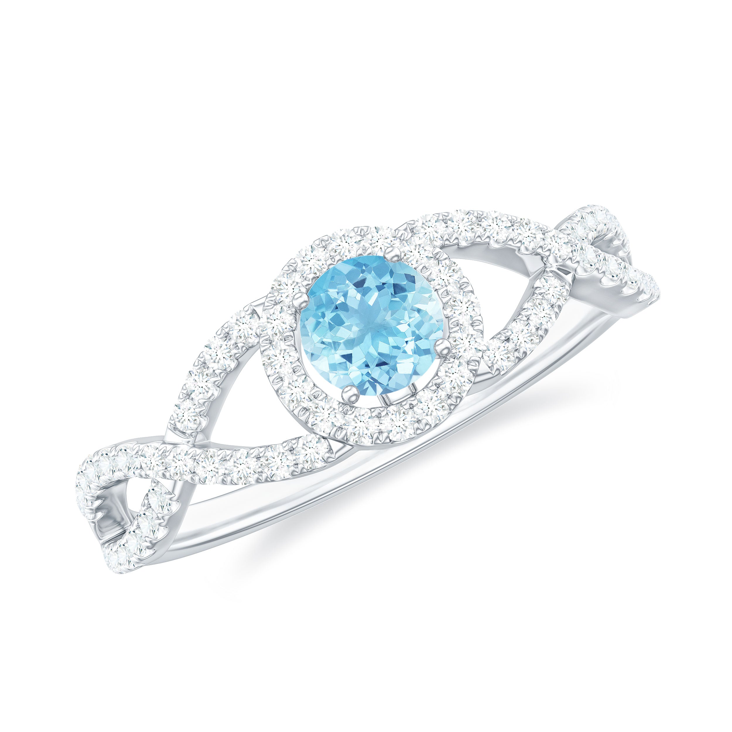 Aquamarine Criss Cross Engagement Ring with Diamond Halo