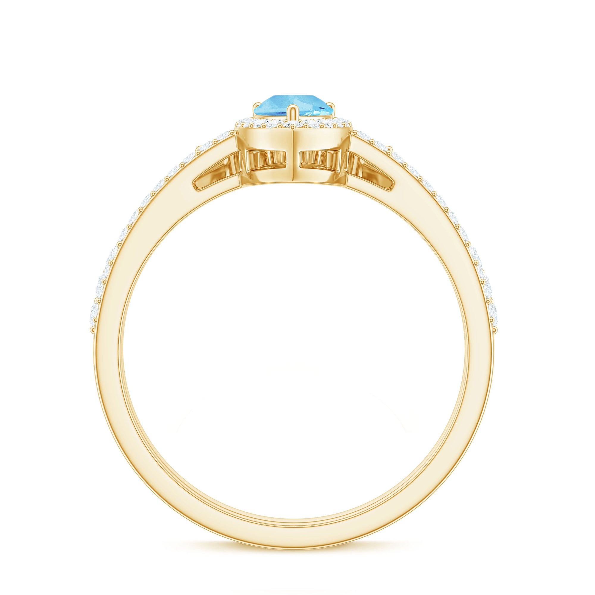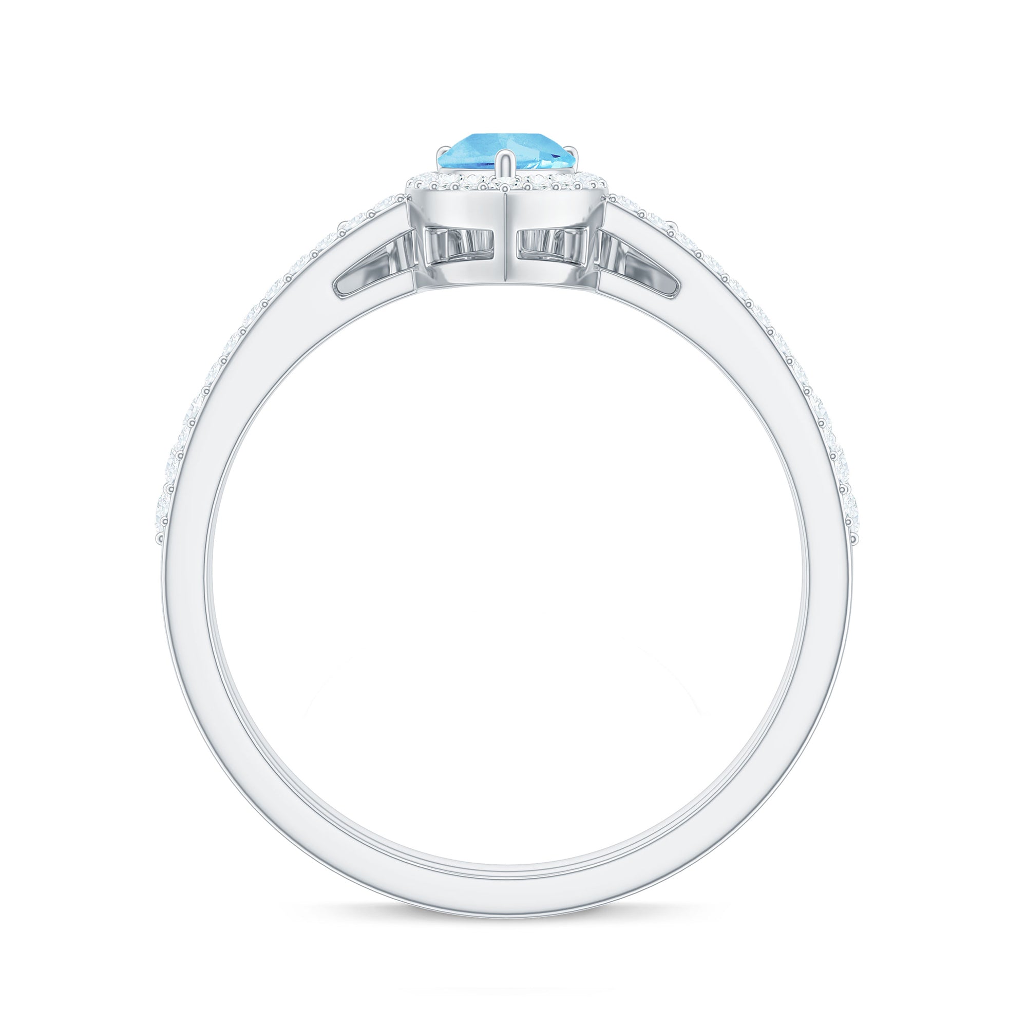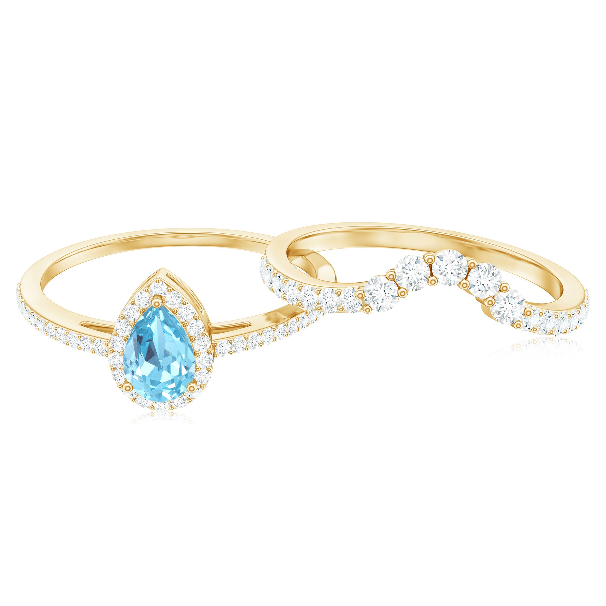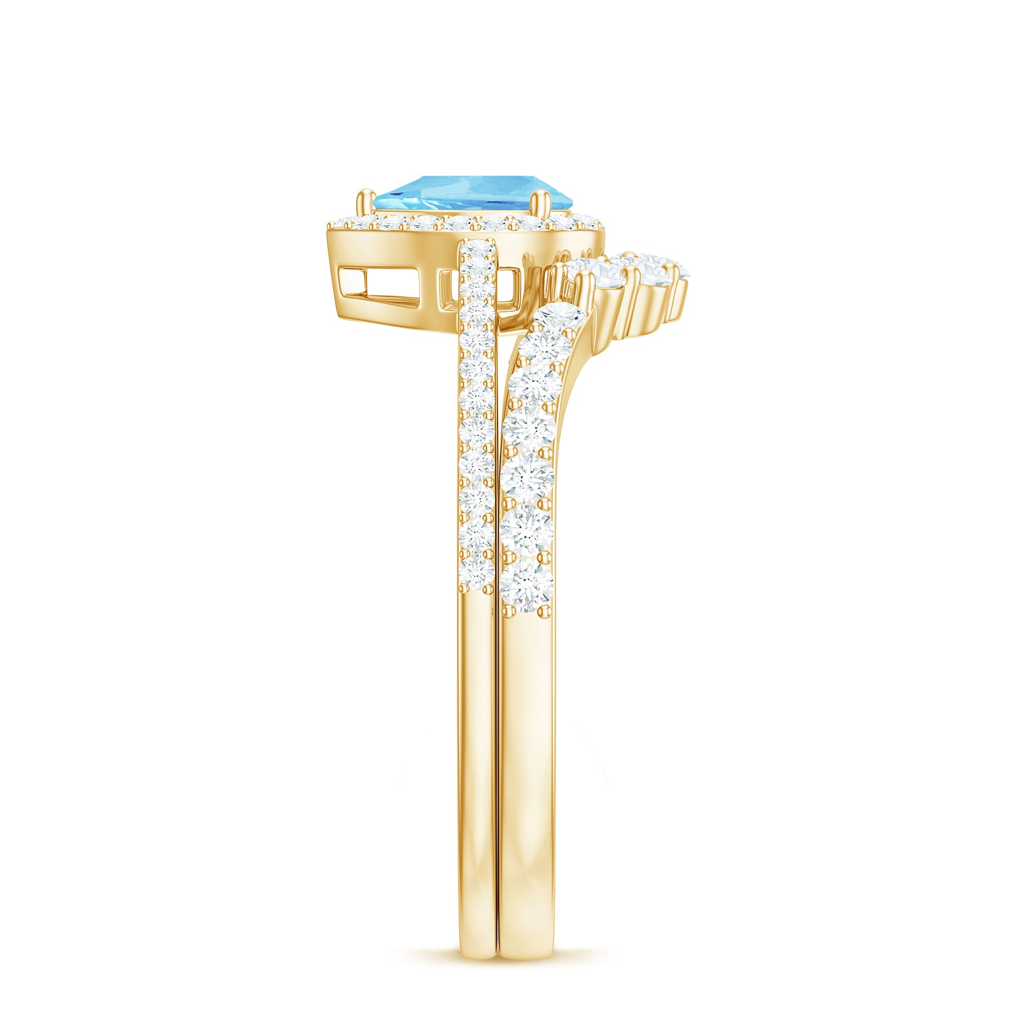 Aquamarine Designer Teardrop Ring Set with Diamond Halo