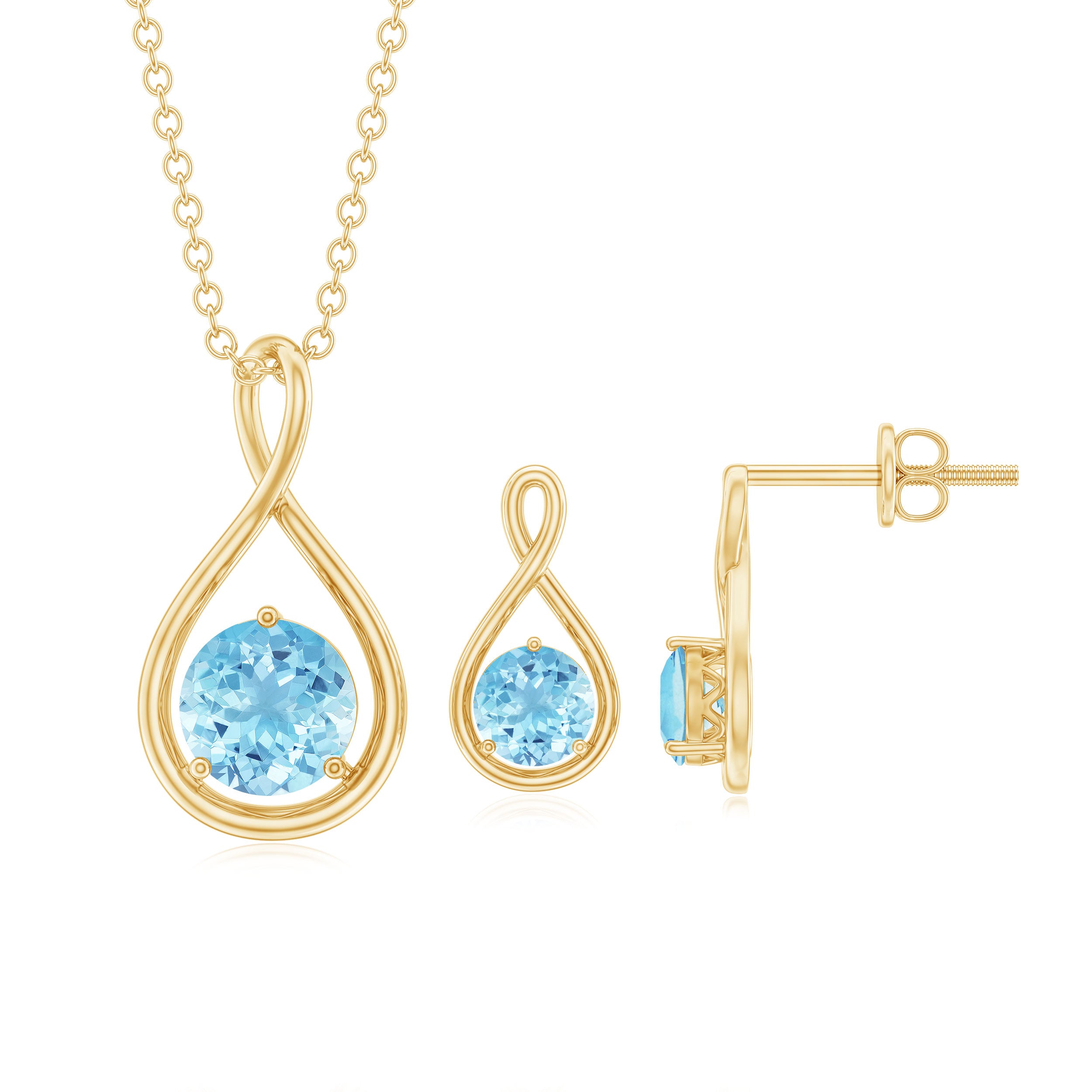 Aquamarine Solitaire and Gold Infinity Jewelry Set
