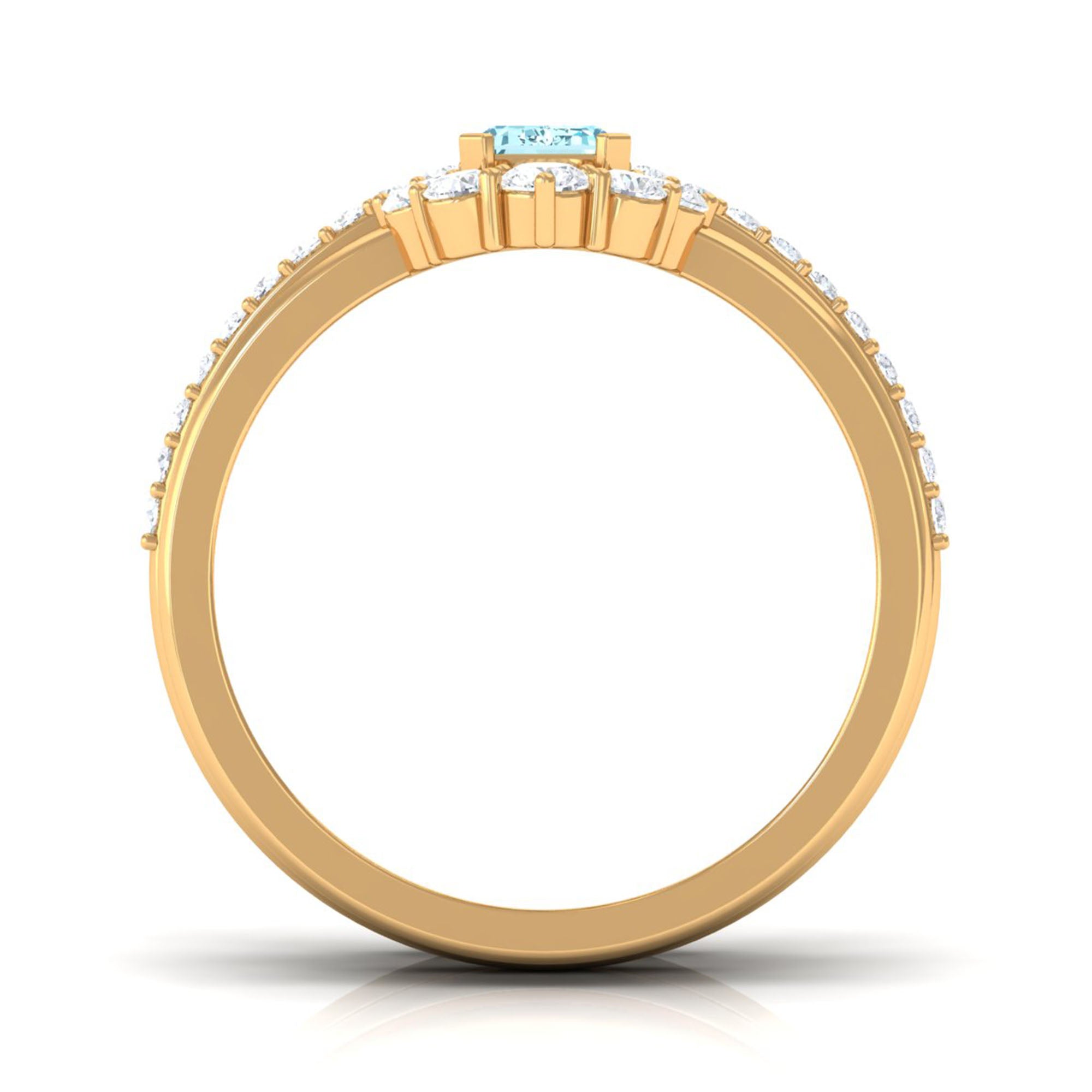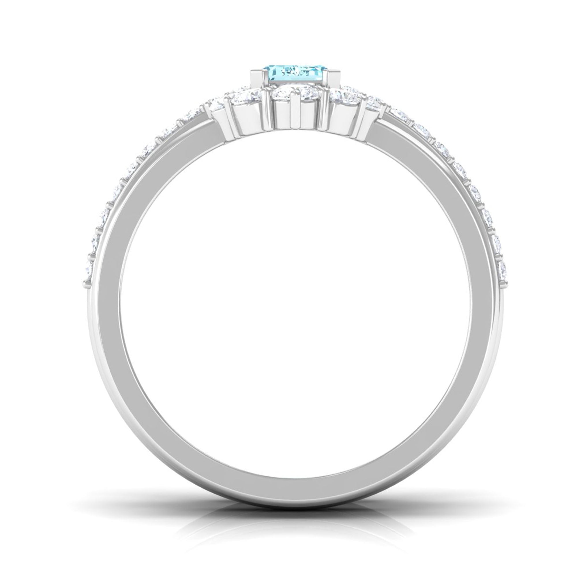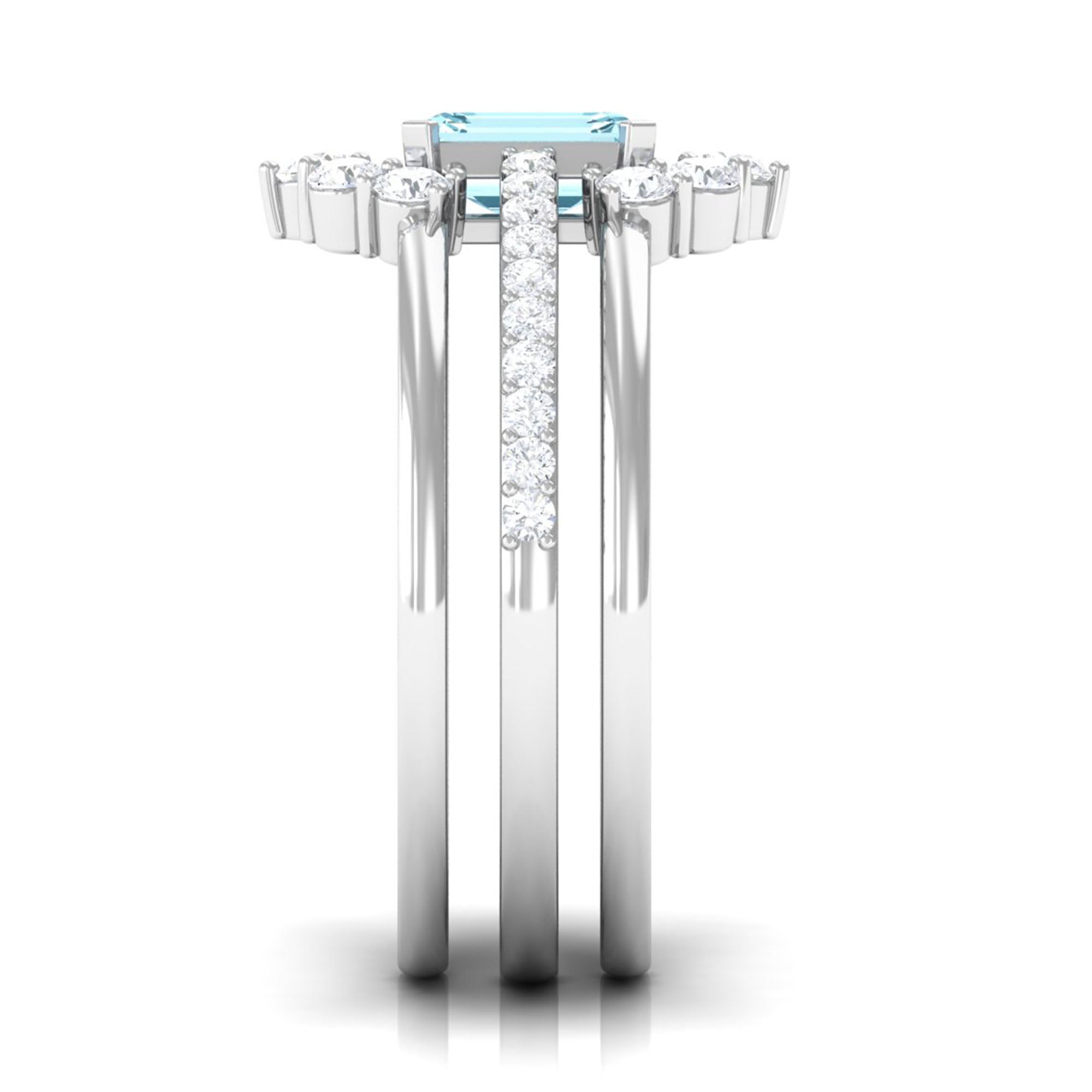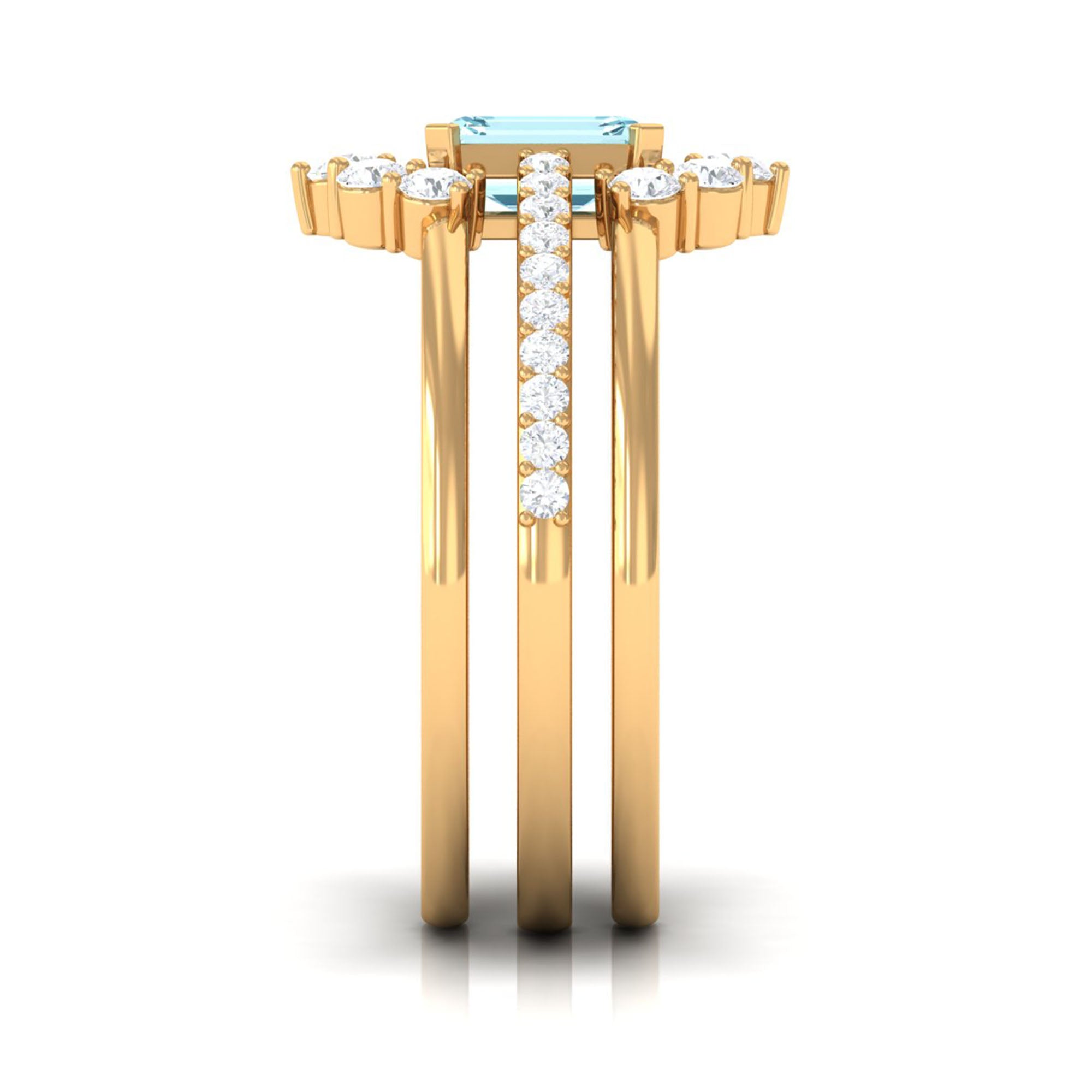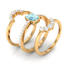 Aquamarine Solitaire Trio Ring Set with Diamond